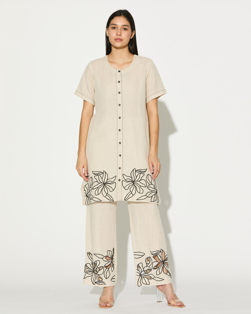 OFF WHITE EMBROIDERED SHIRT DRESS