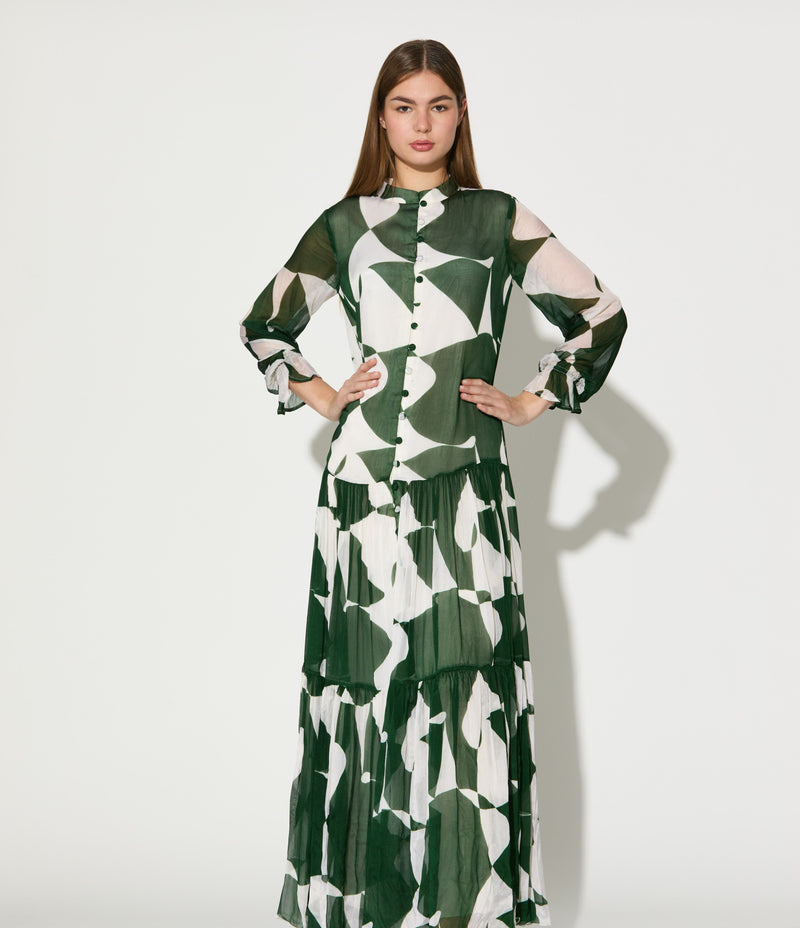 GREEN AND WHITE ABSTRACT LONG DRESS