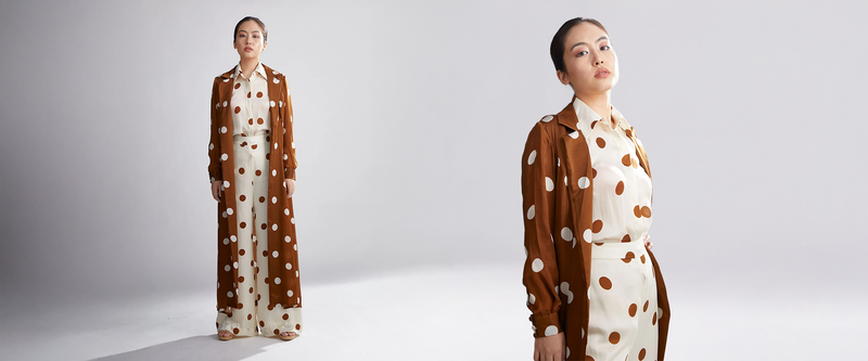 Brown and Cream Polka Dot Trench Cape: Where Flow Meets Structure