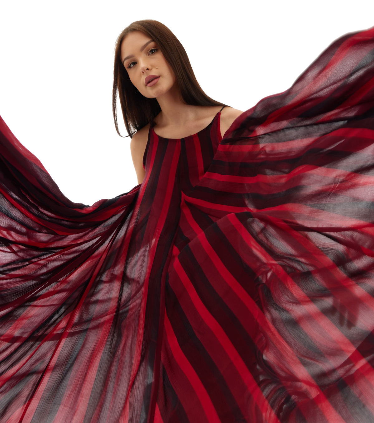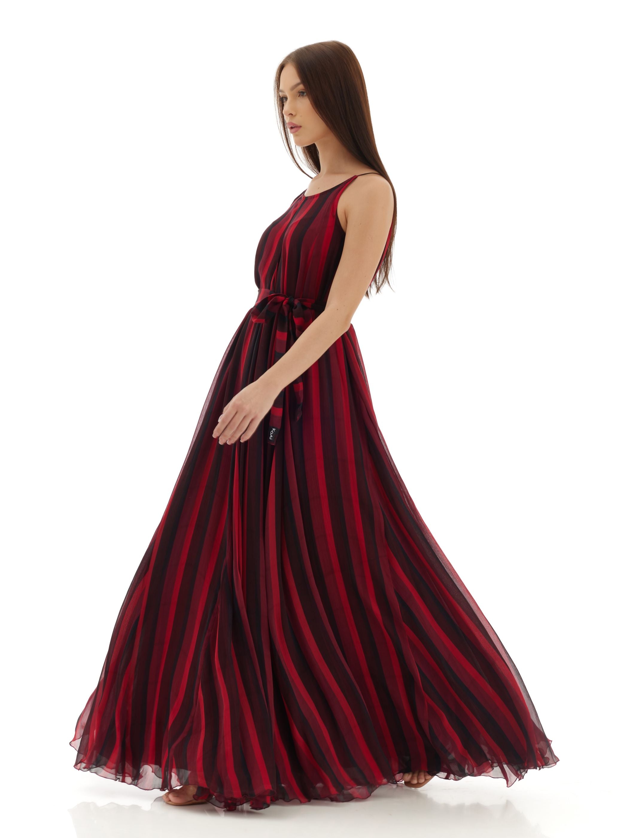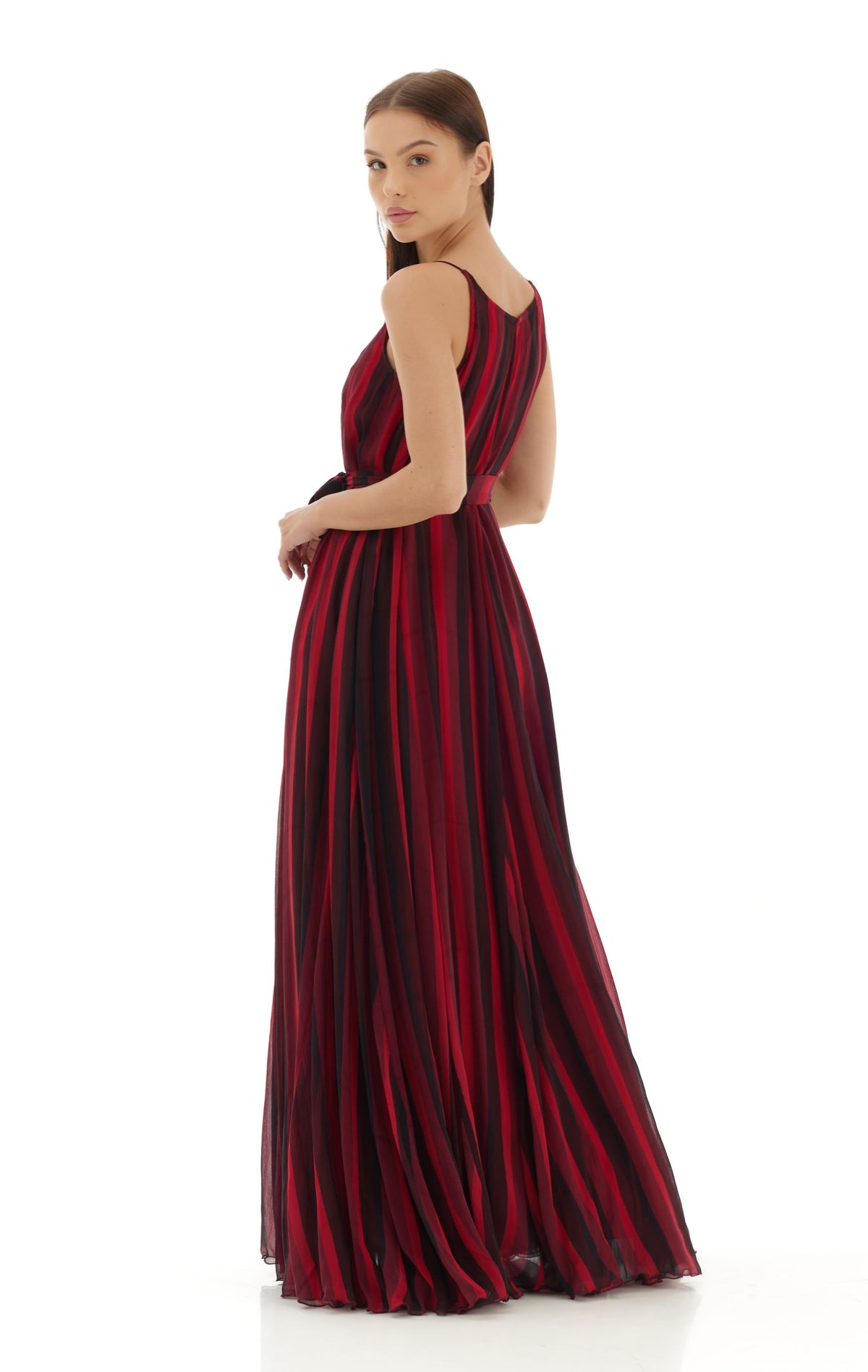 RED & BLACK STRIPE LONG DRESS