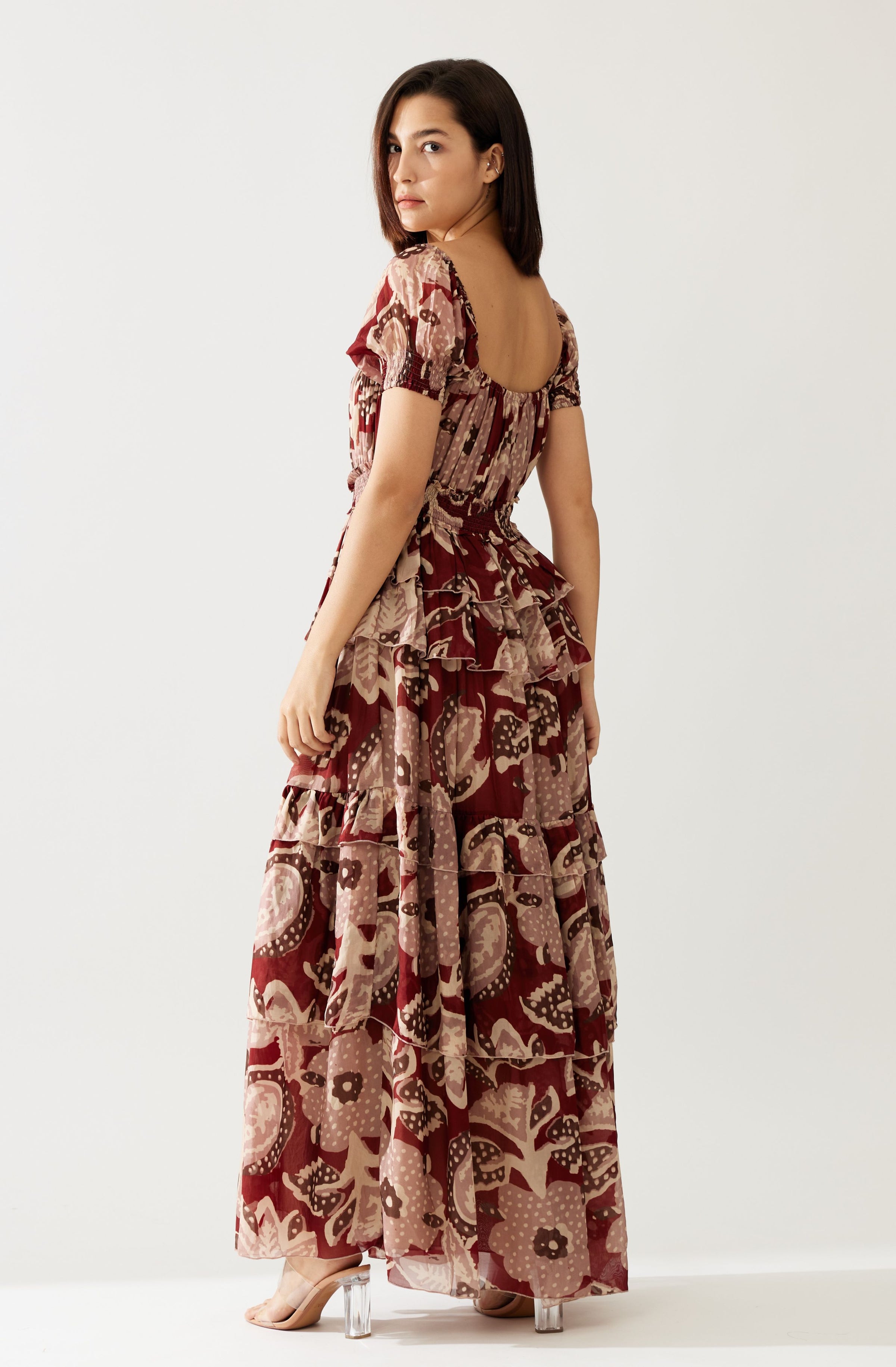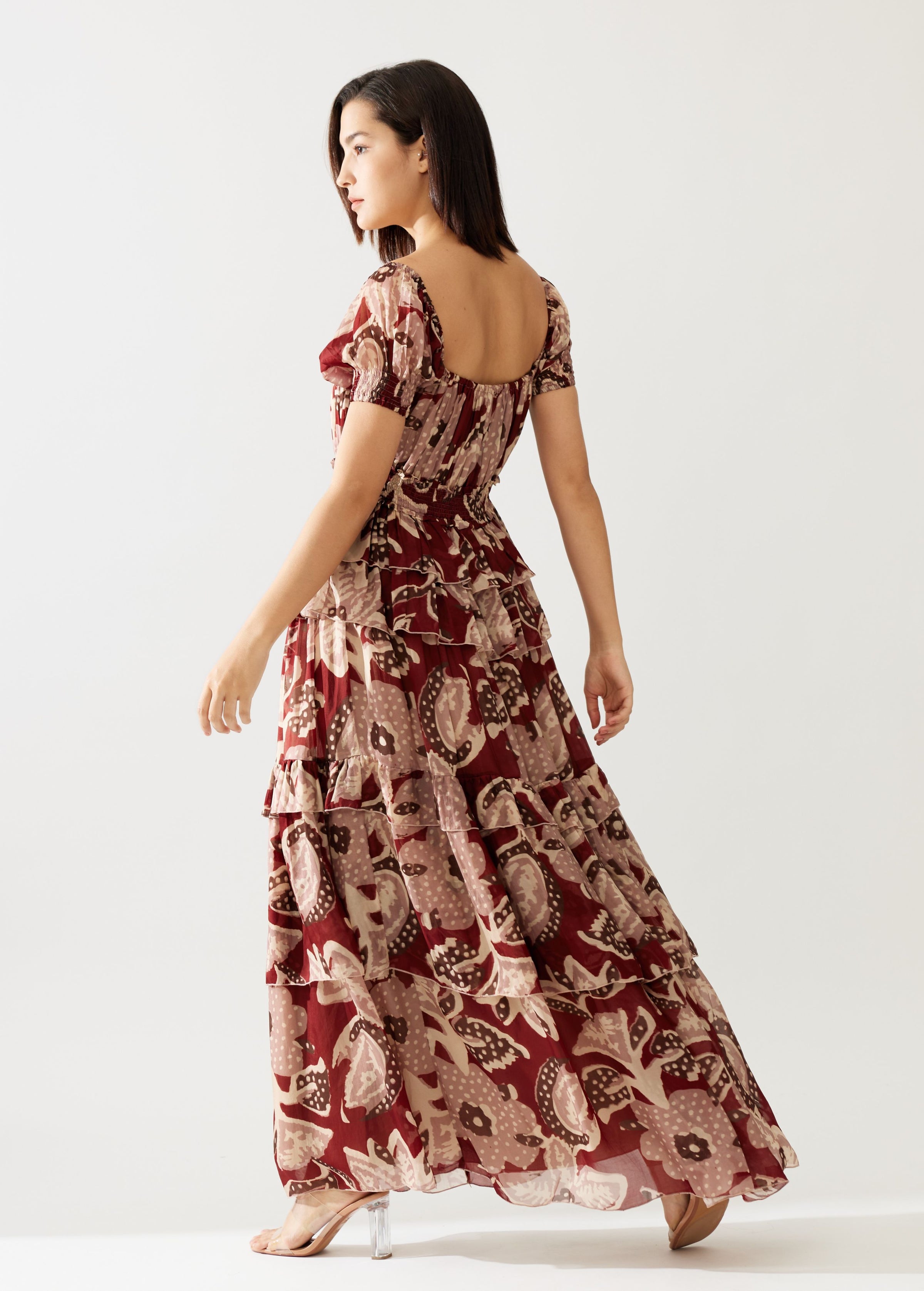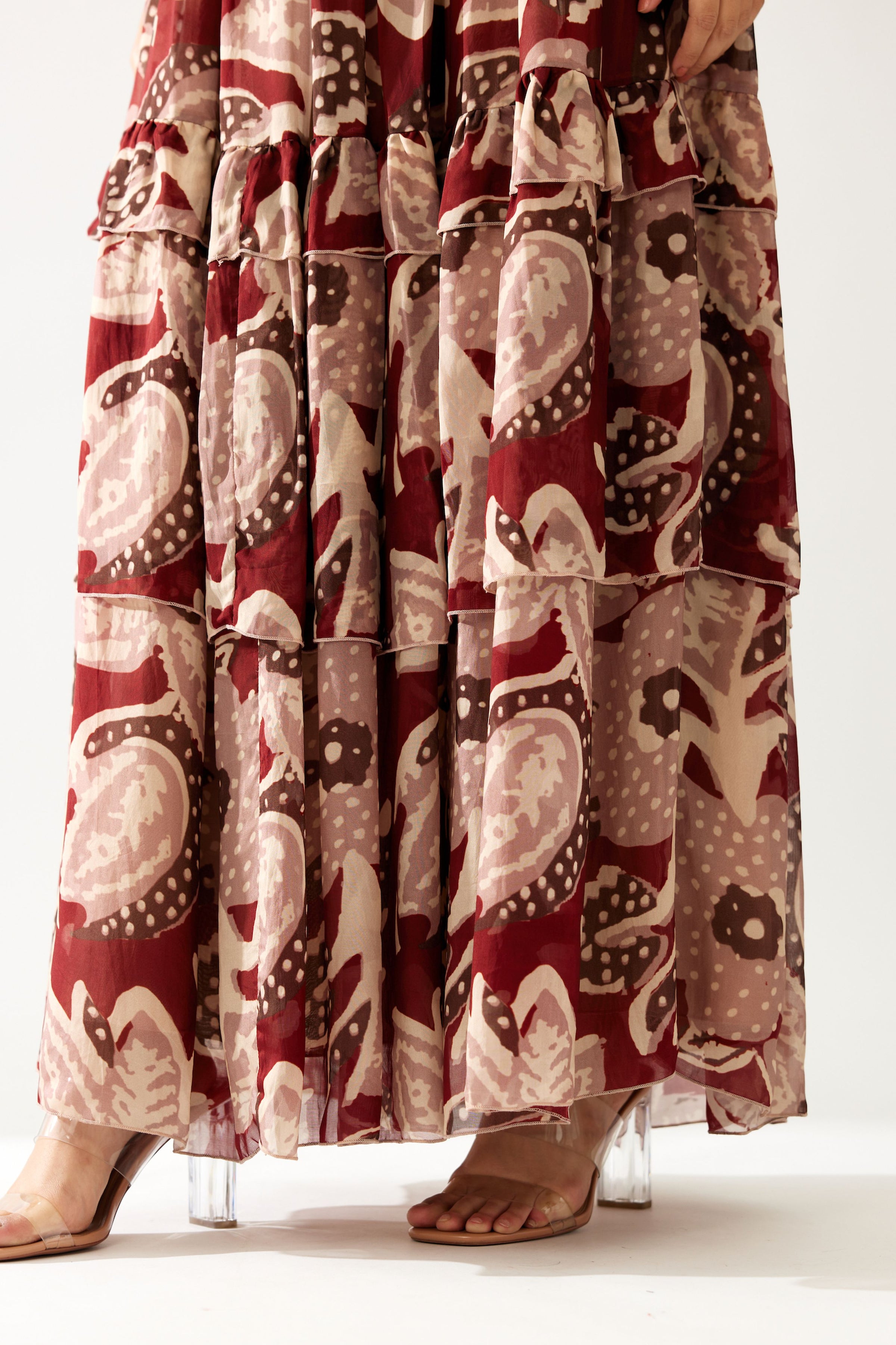 RED AND PEACH FLORAL FRILL DRESS