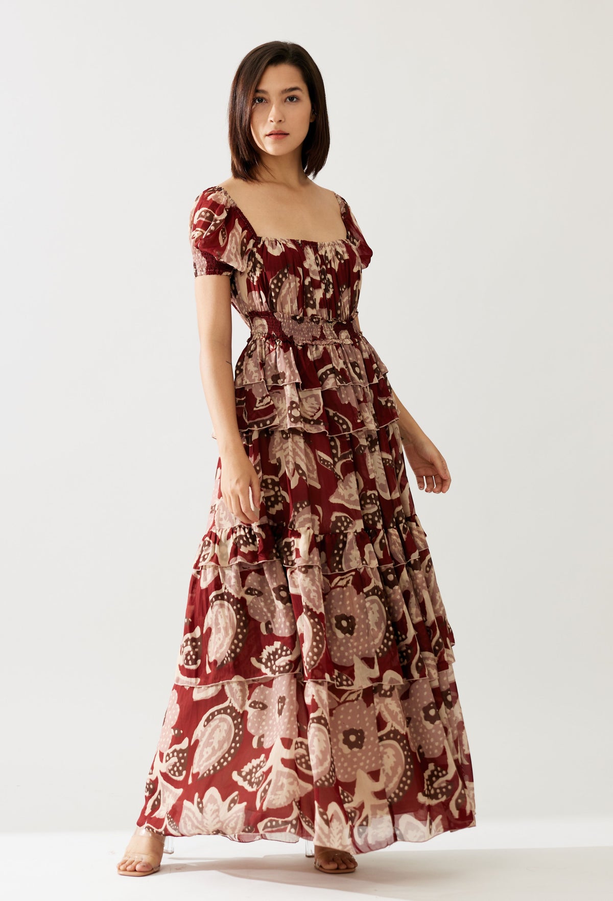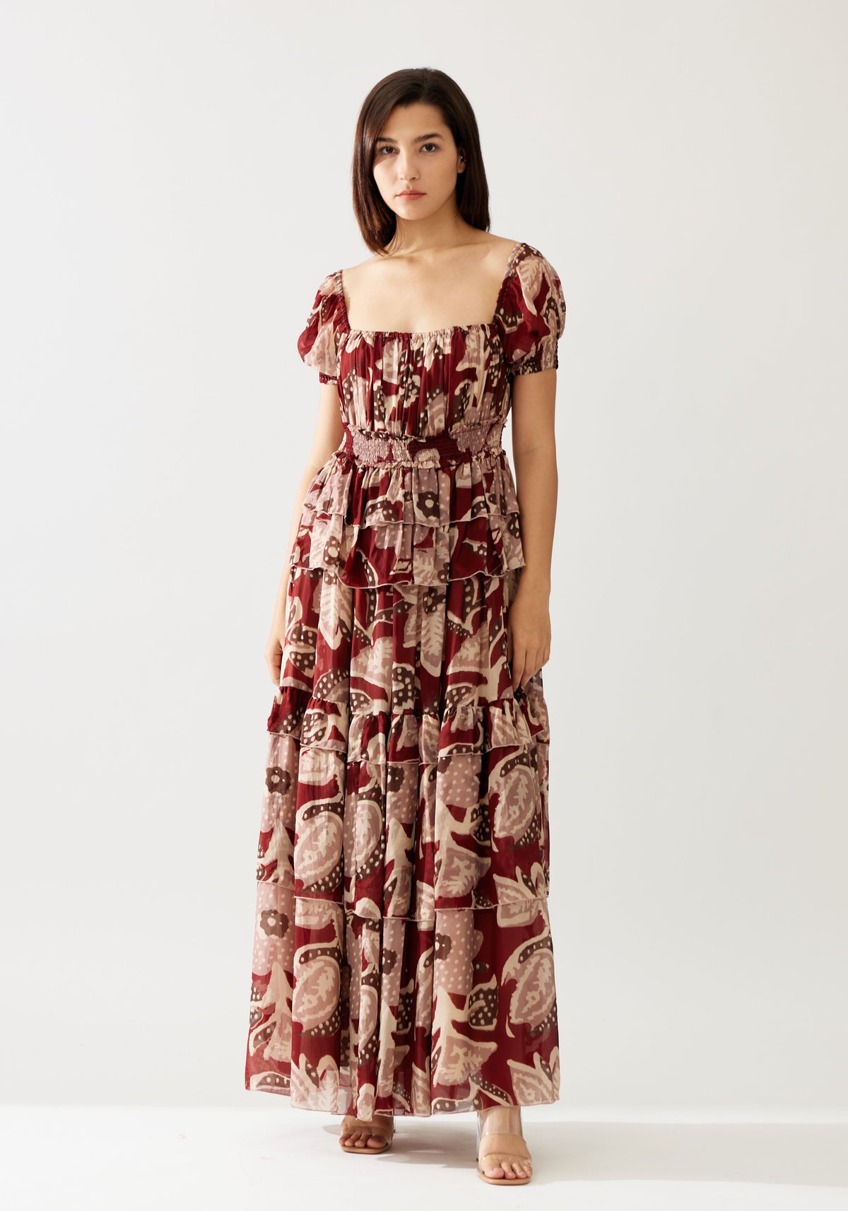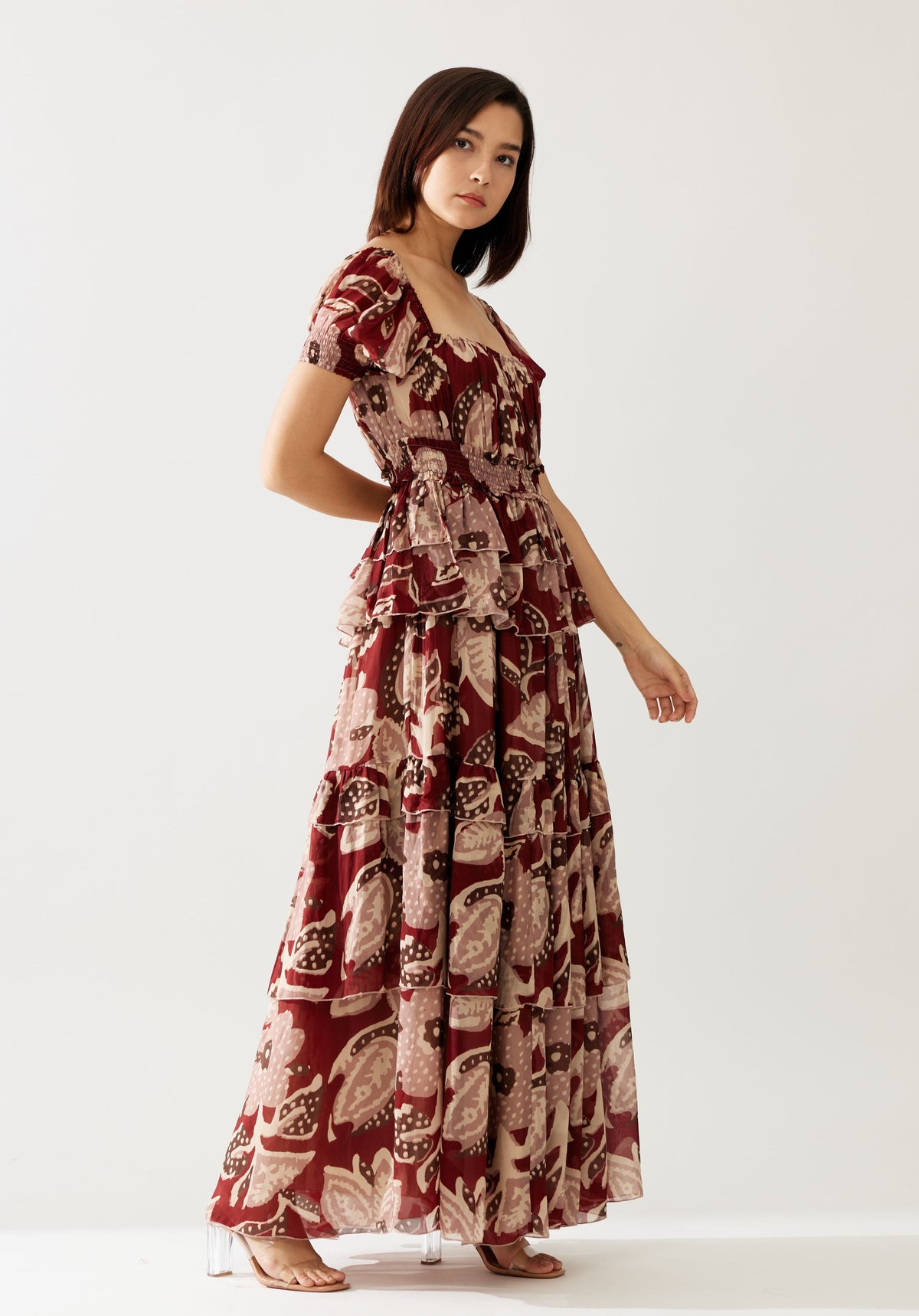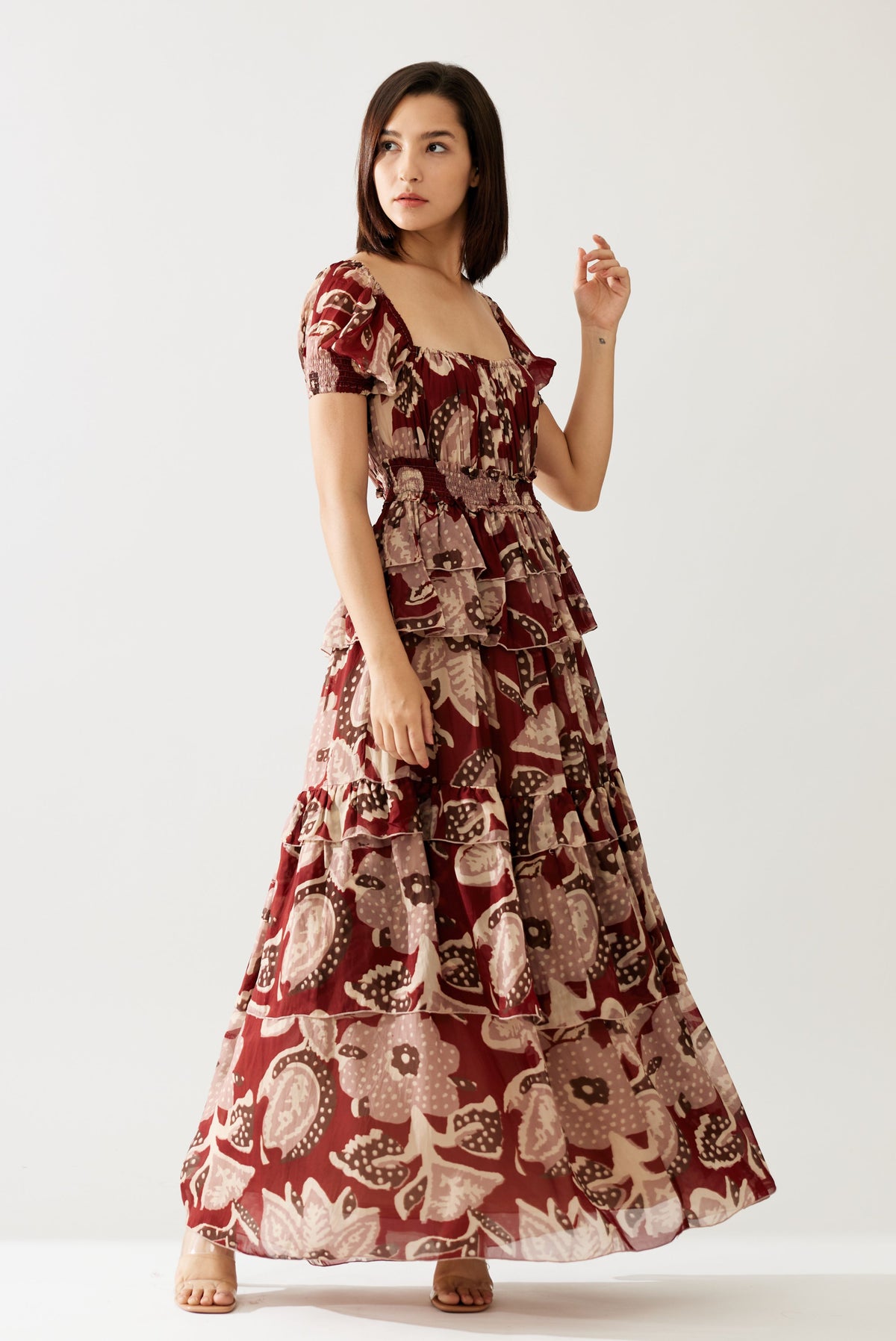 RED AND PEACH FLORAL FRILL DRESS