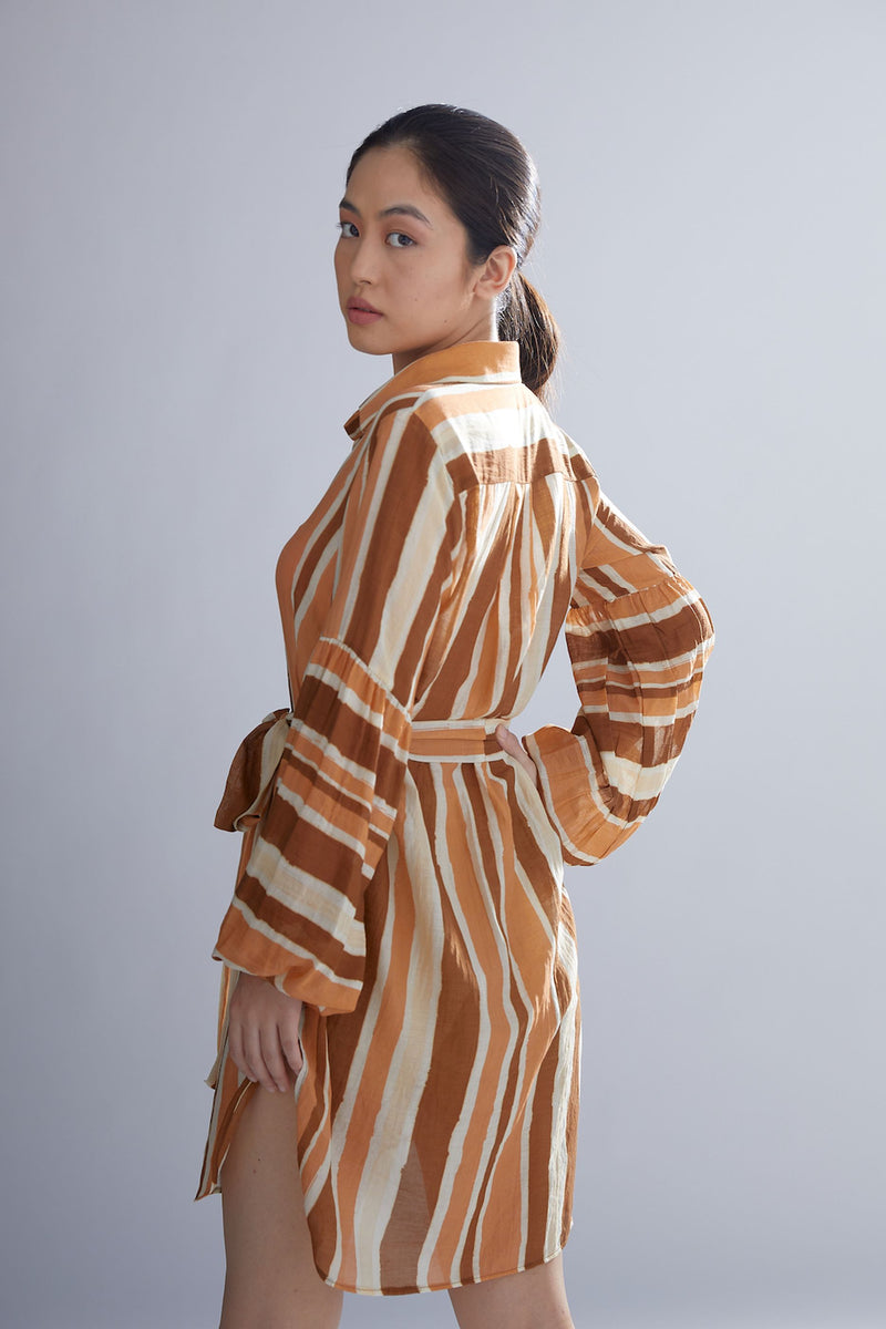 BROWN RUST AND CREAM SHIRT DRESS