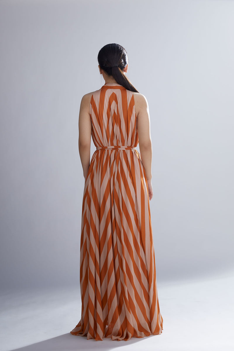 ORANGE AND PEACH STRIPE DRESS
