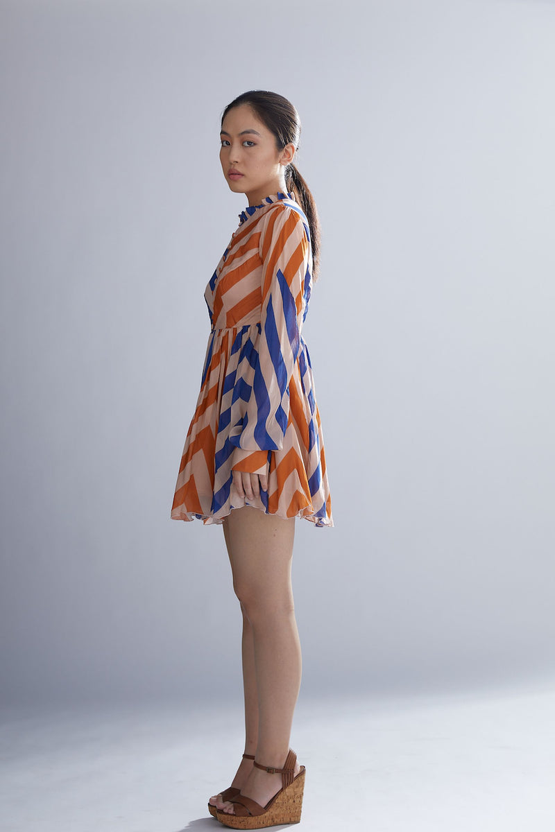 BLUE ORANGE AND PEACH STRIPE SHORT DRESS