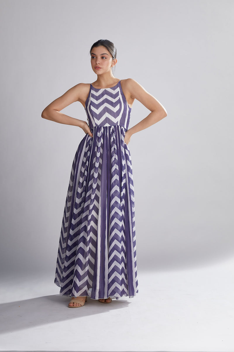 PURPLE AND WHITE ZIG ZAG STRIPE DRESS