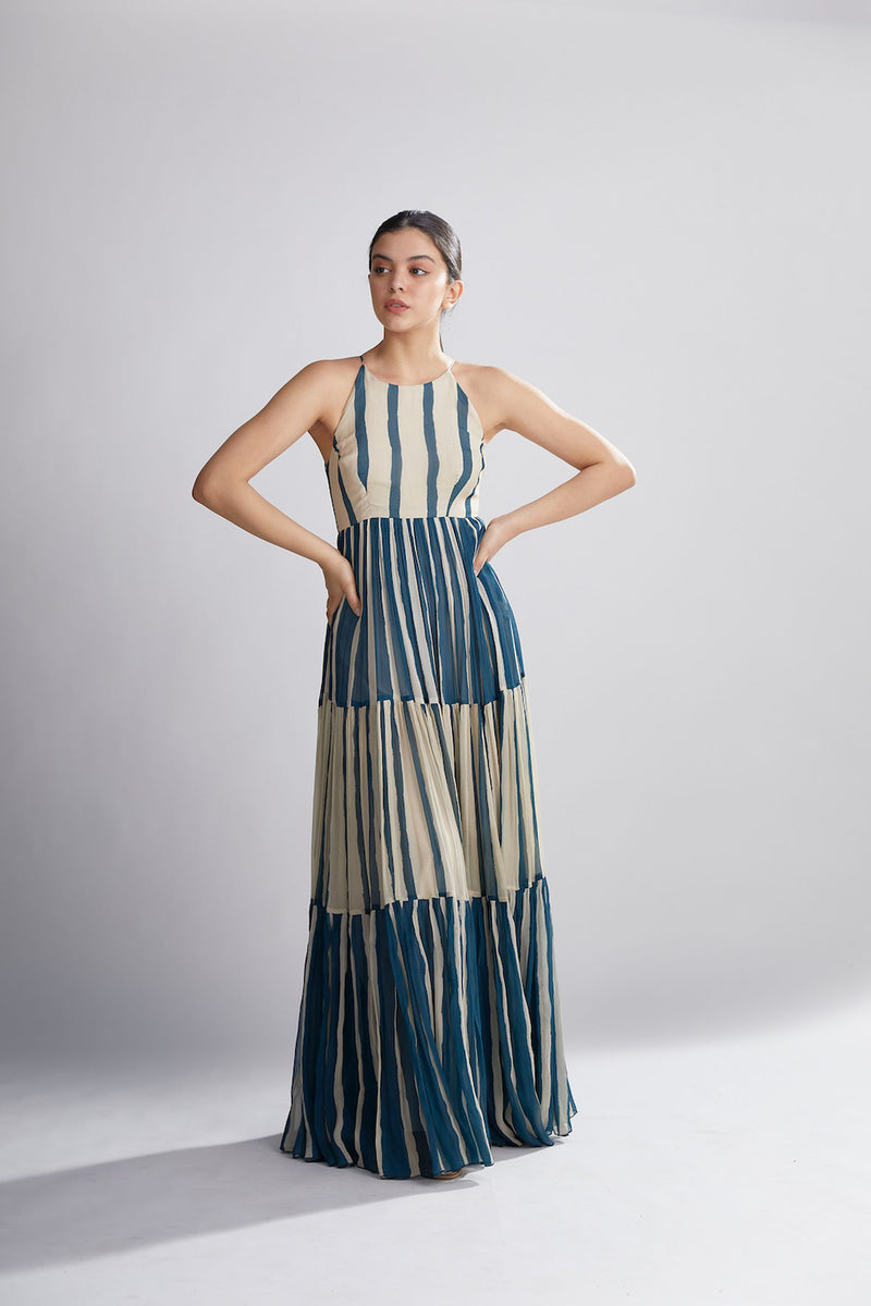 TEAL AND WHITE STRIPE LONG DRESS