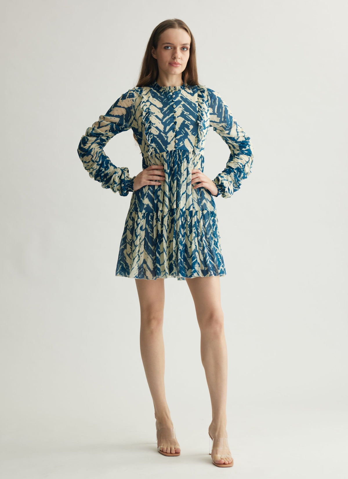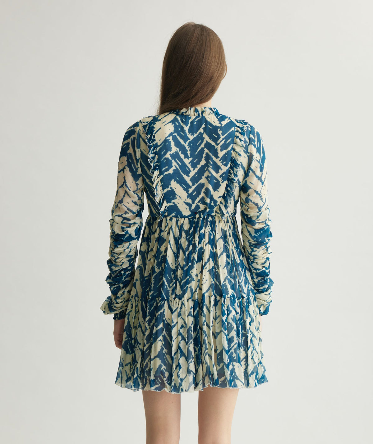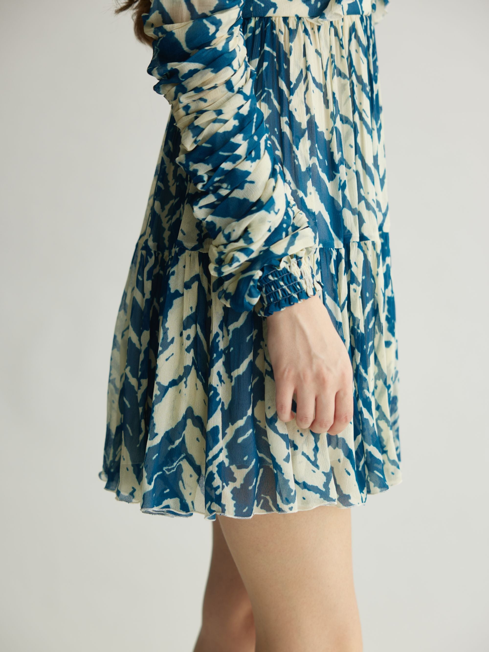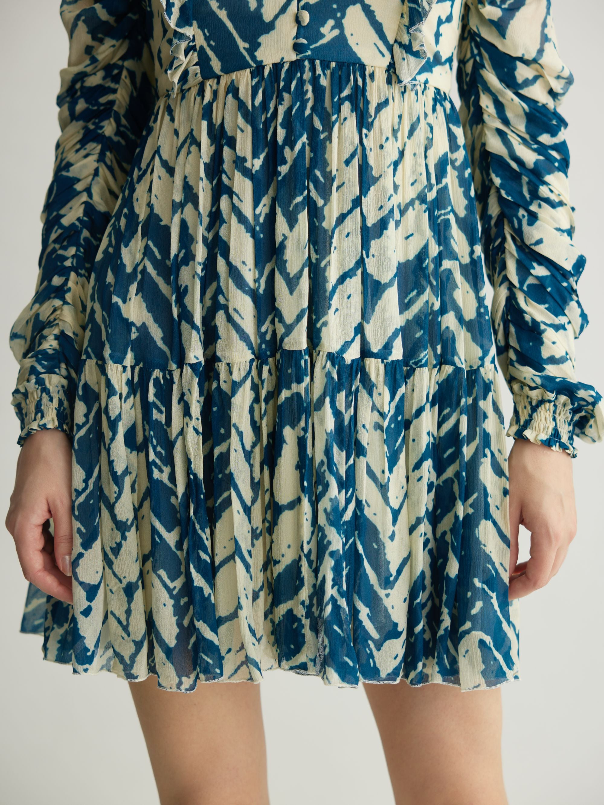 BEIGE & BLUE CHEVRON PRINT SHORT DRESS