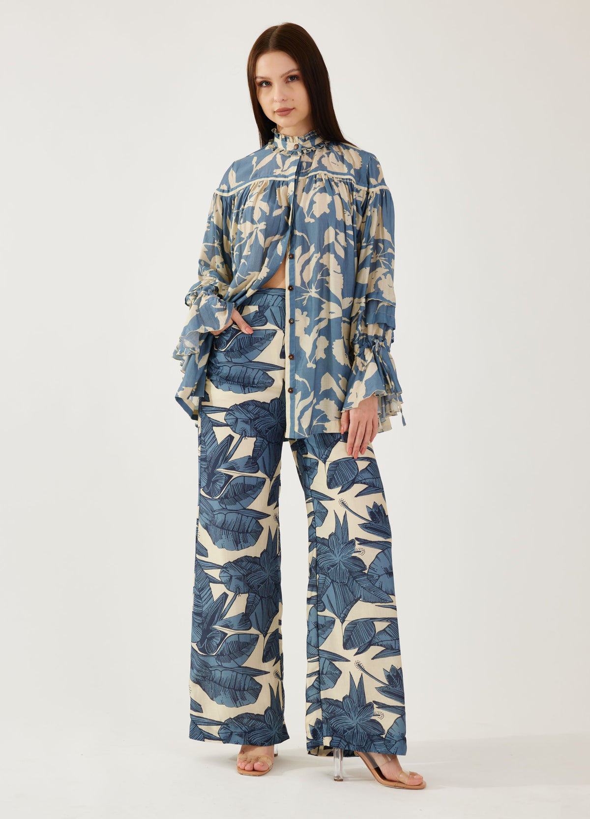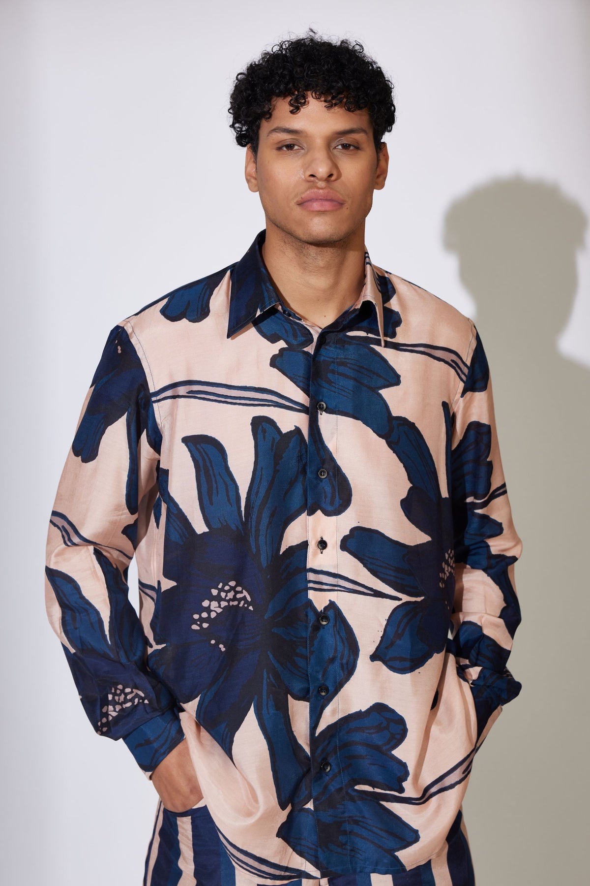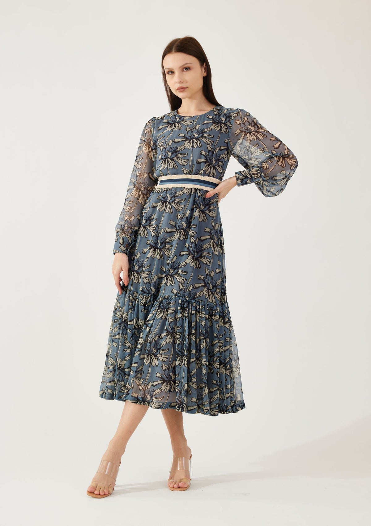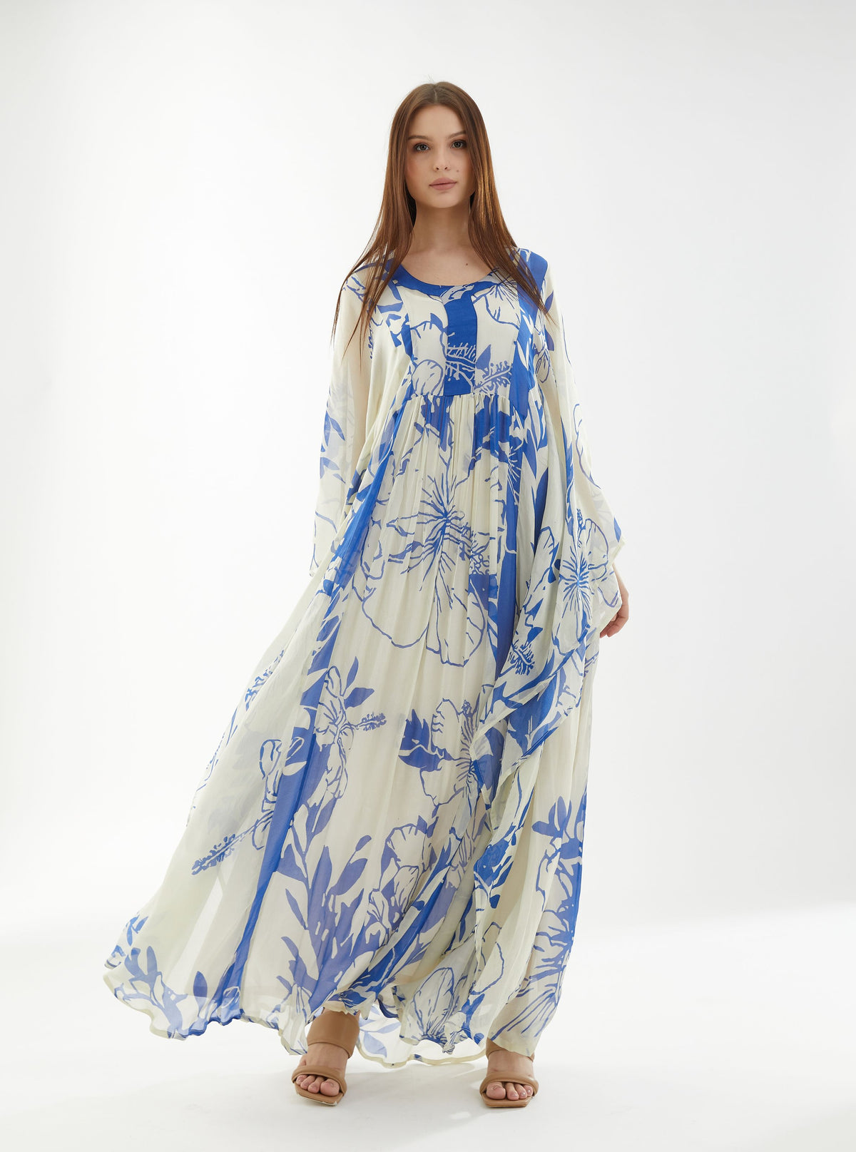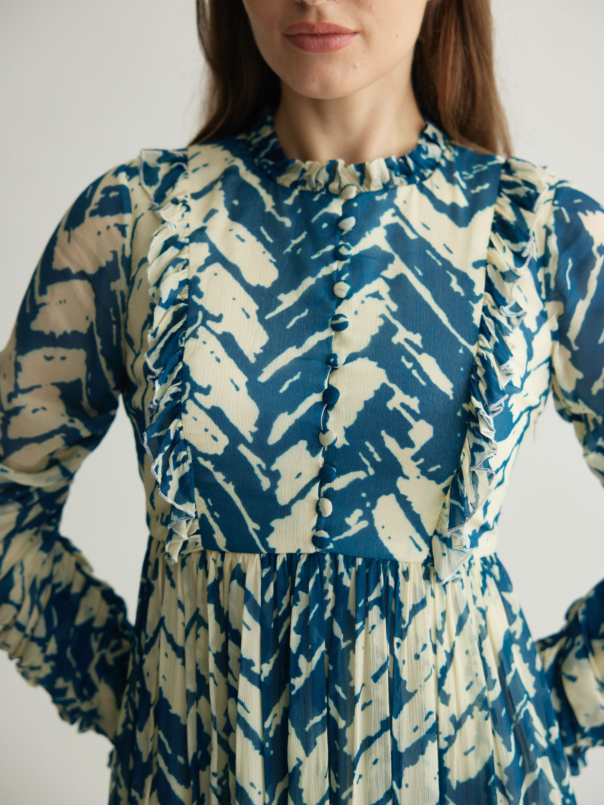 BEIGE & BLUE CHEVRON PRINT SHORT DRESS