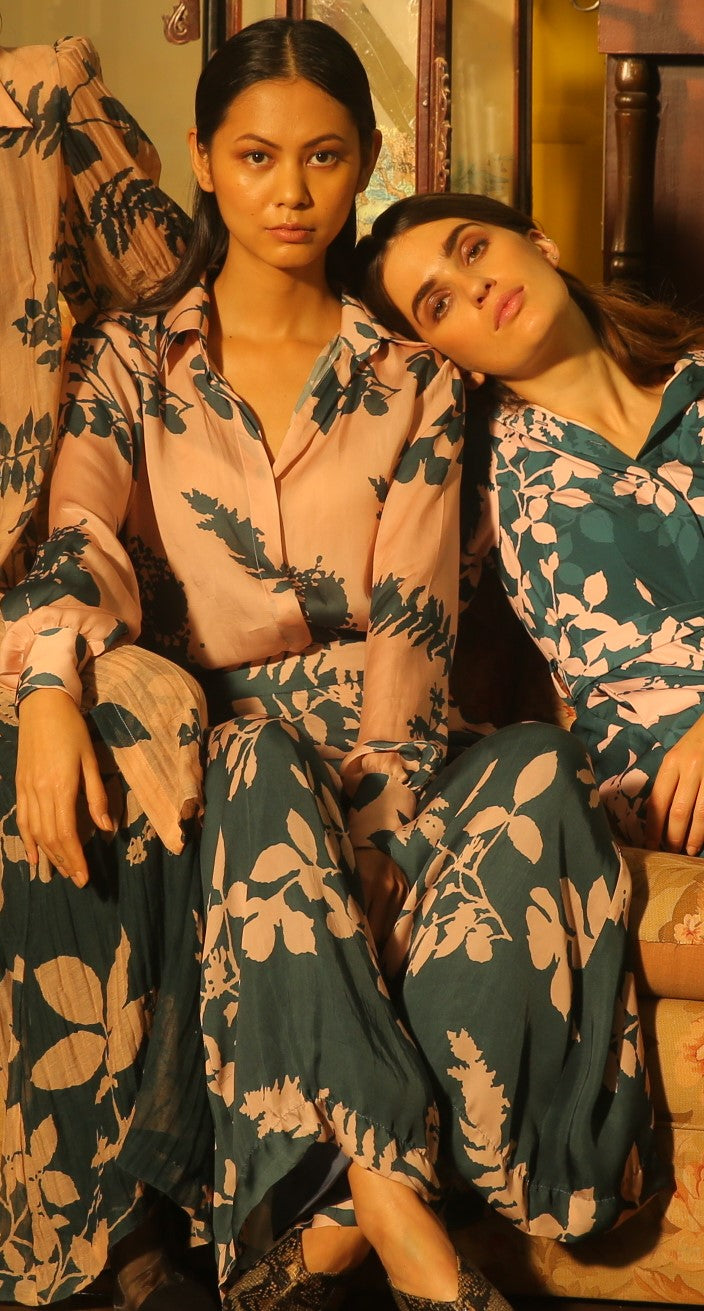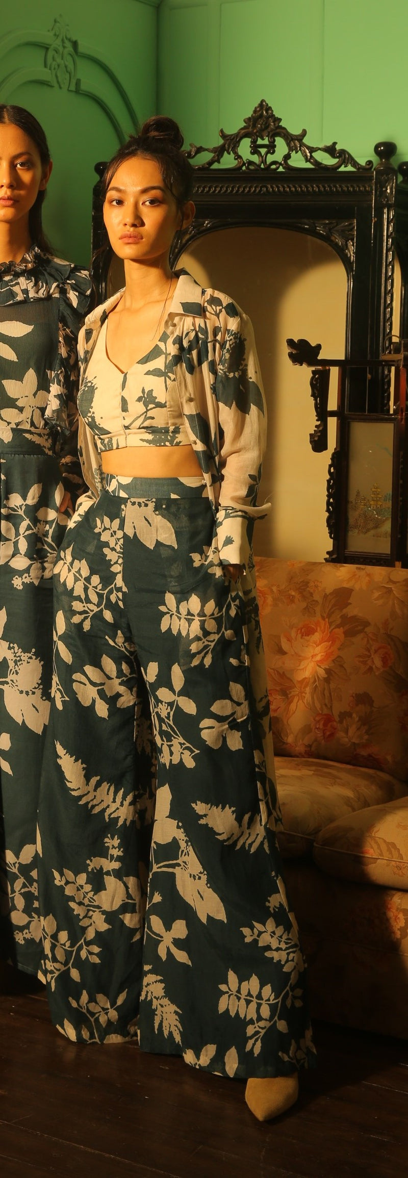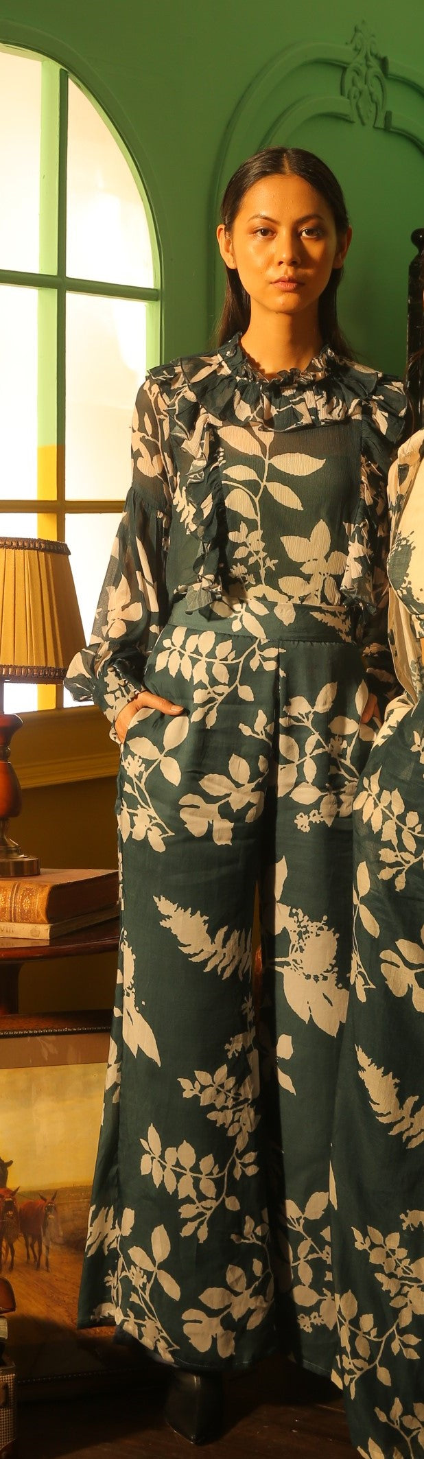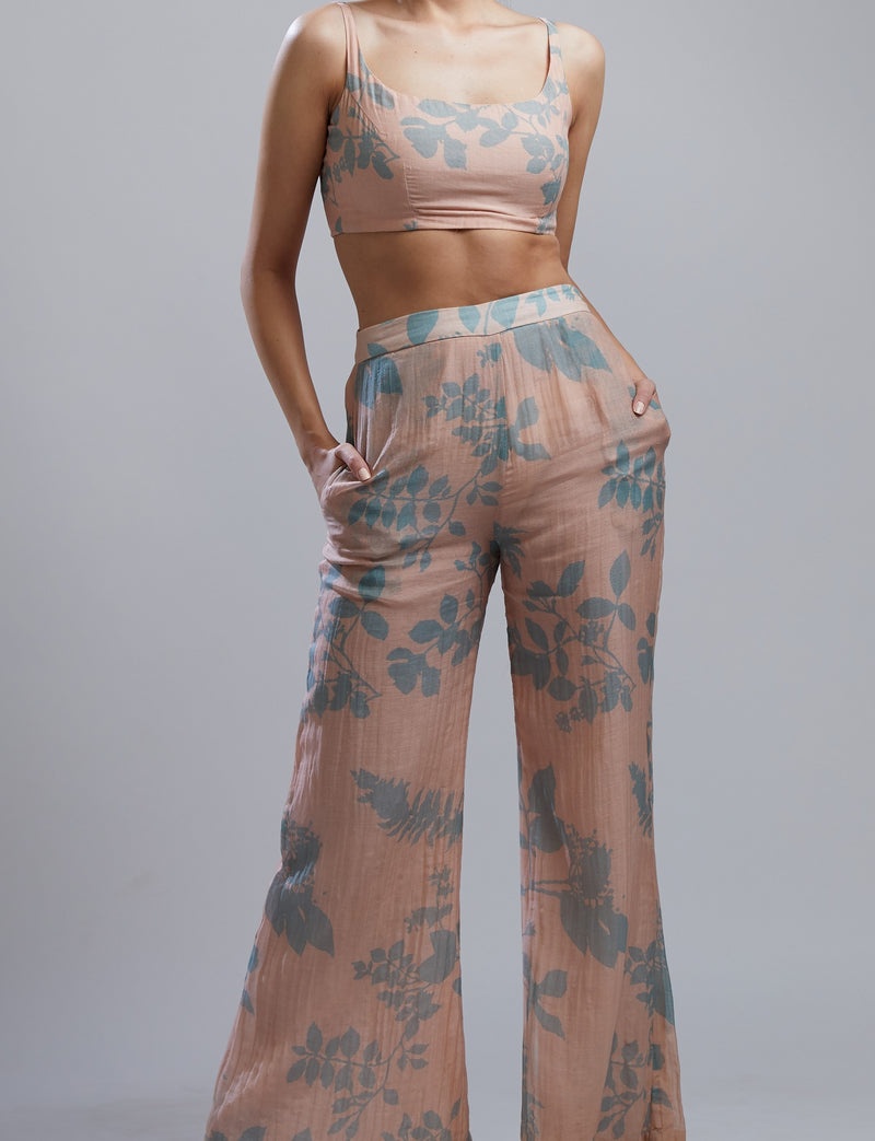 CREAM AND TEAL FLORAL PANTS