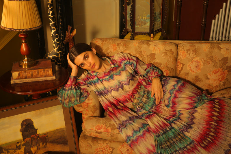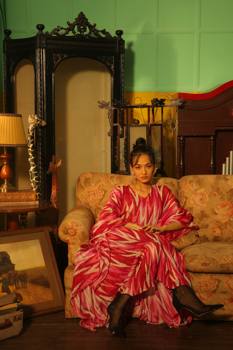 WHITE AND PINK DABU ZIG ZAG DABU KAFTAN