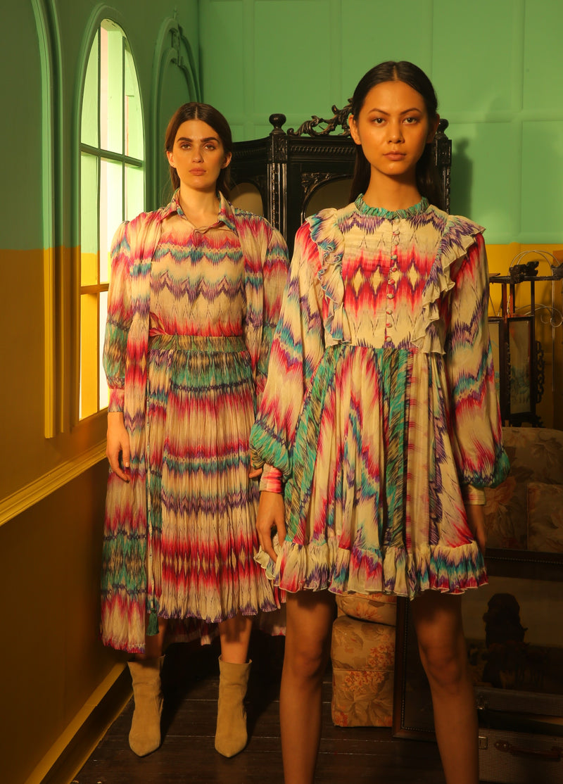 WHITE AND PINK DABU ZIG ZAG SKIRT