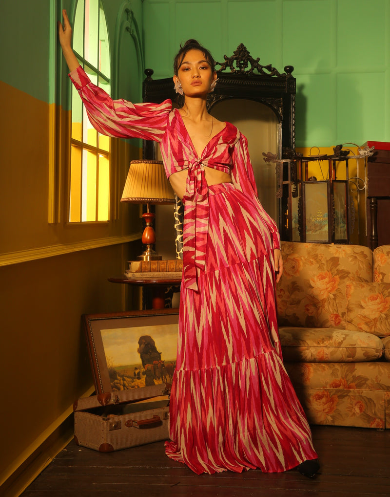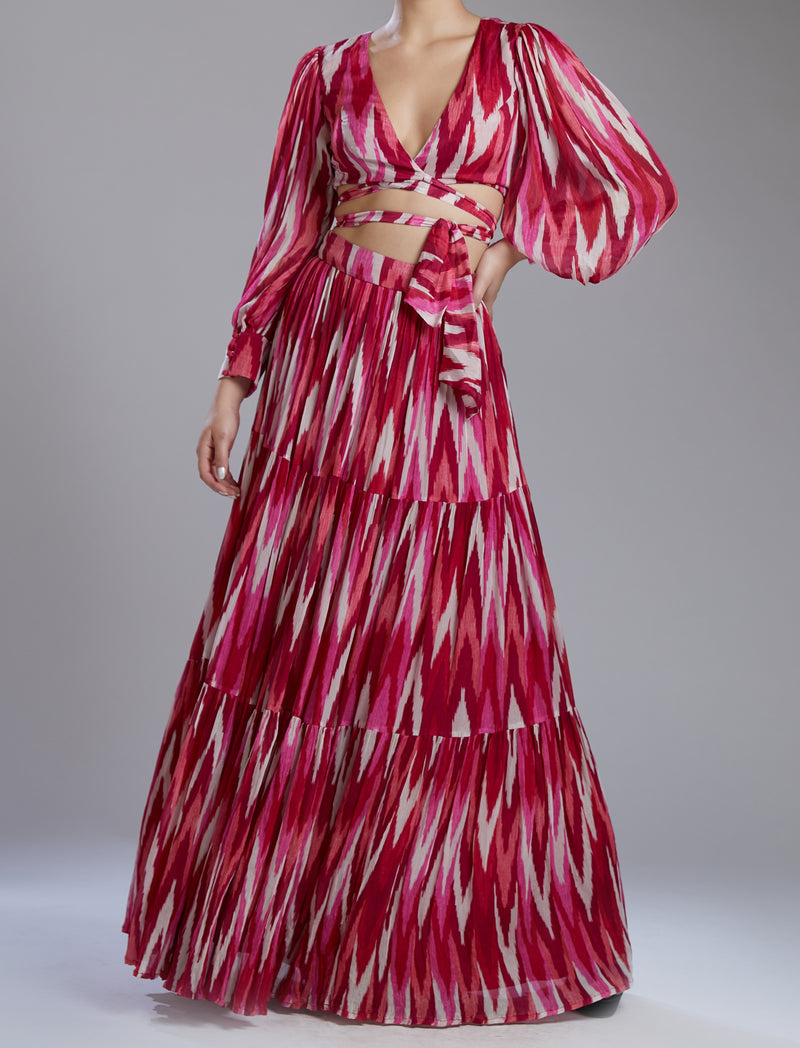 WHITE AND PINK DABU ZIG ZAG WRAP TOP