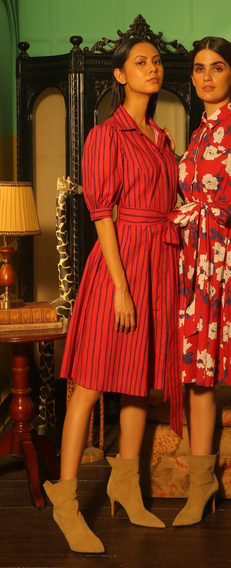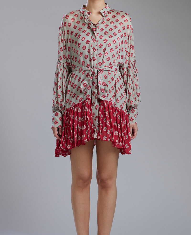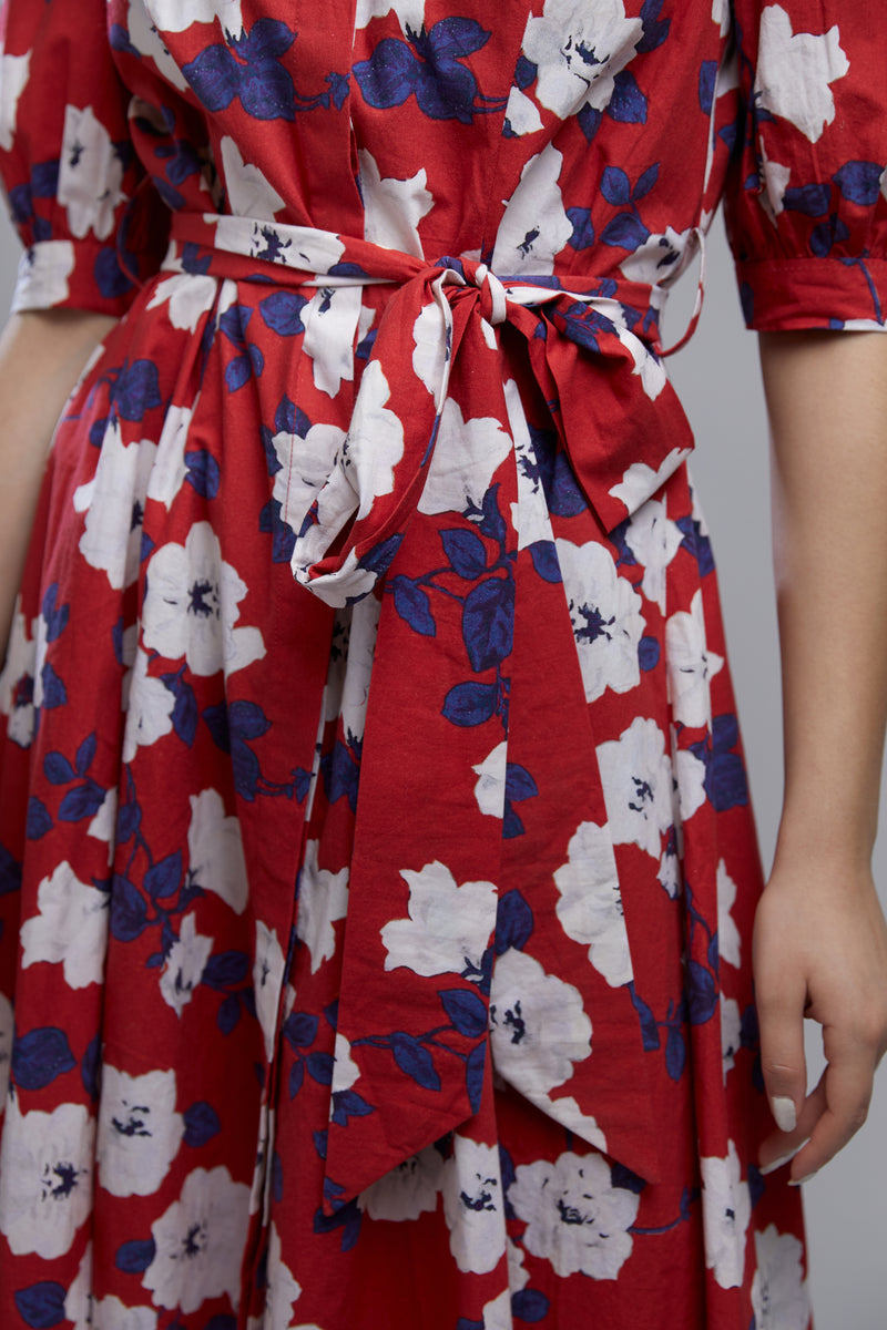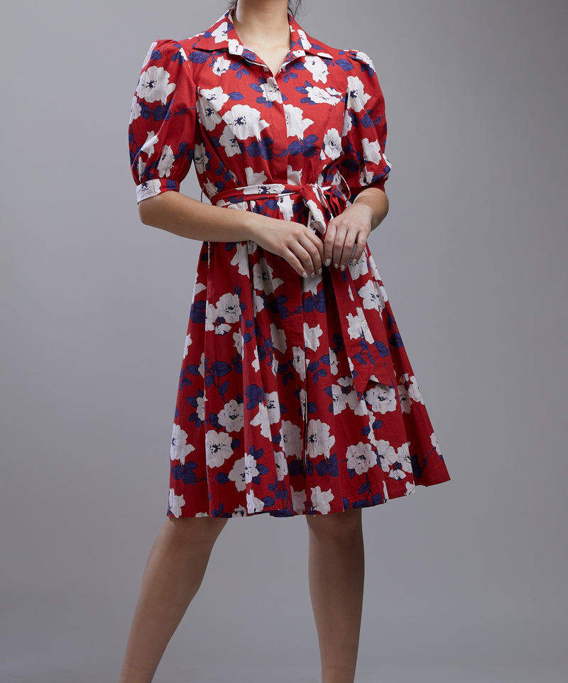 RED, BLUE AND WHITE FLORAL SHIRT DRESS
