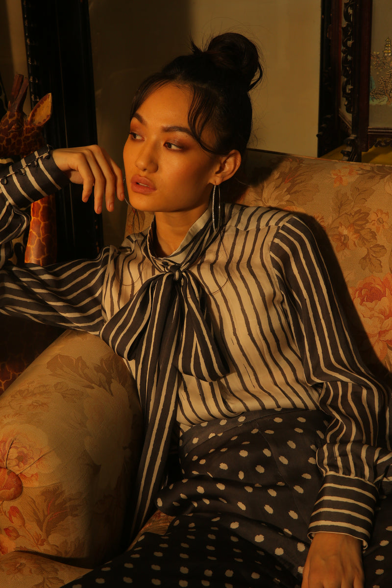 BLACK AND WHITE STRIPE BOW SHIRT