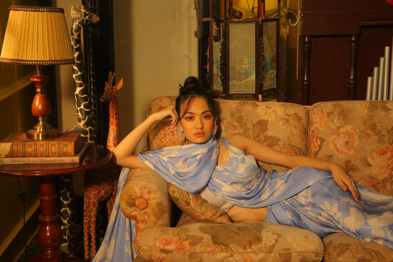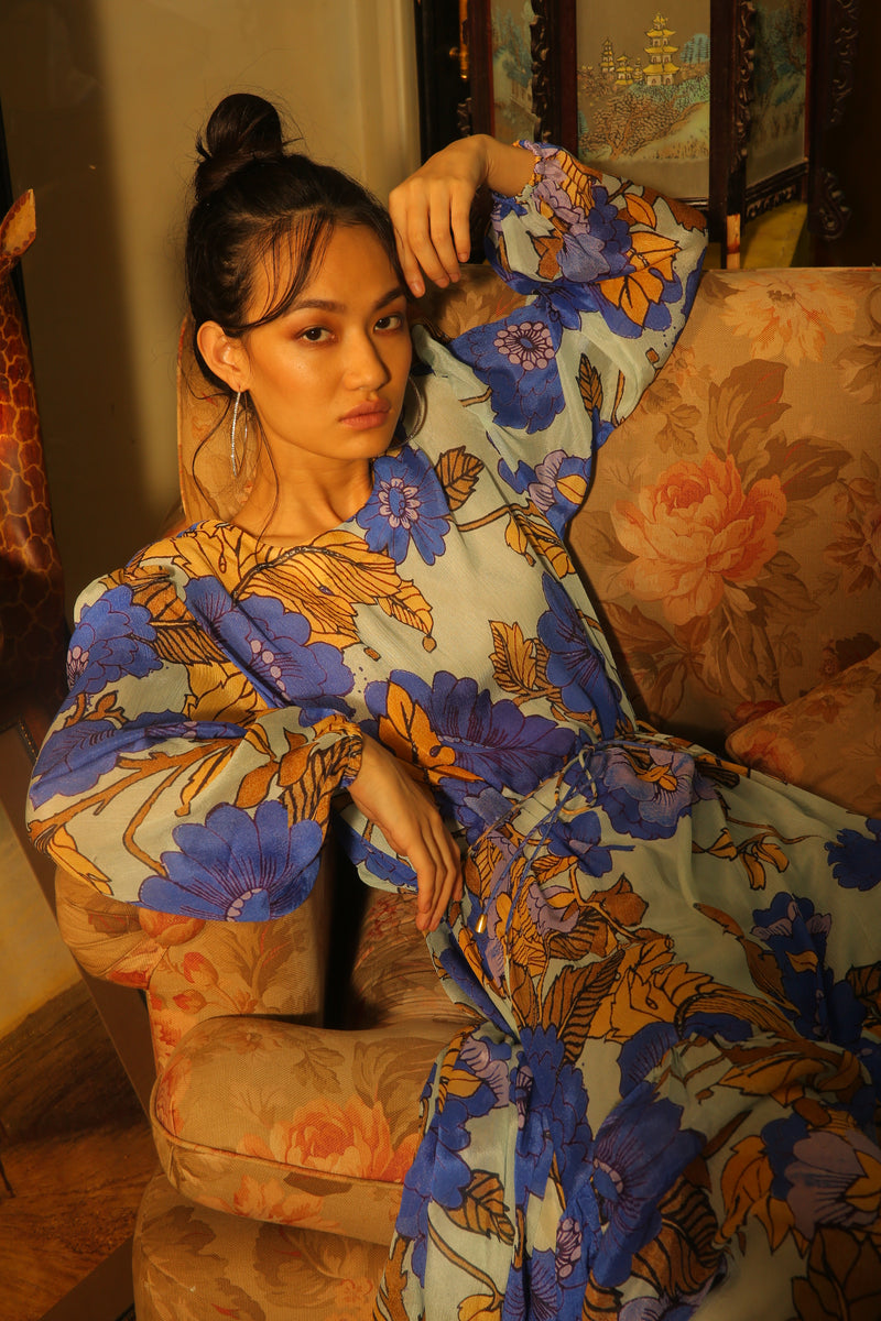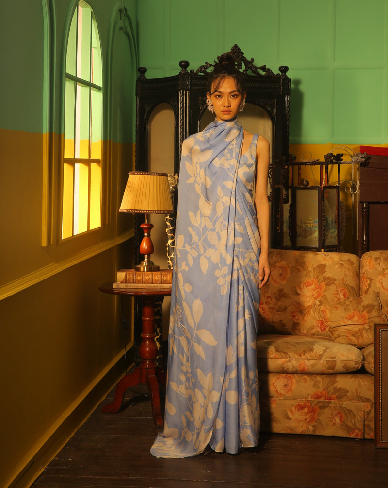 SKY BLUE AND INDIGO FLORAL LONG DRESS