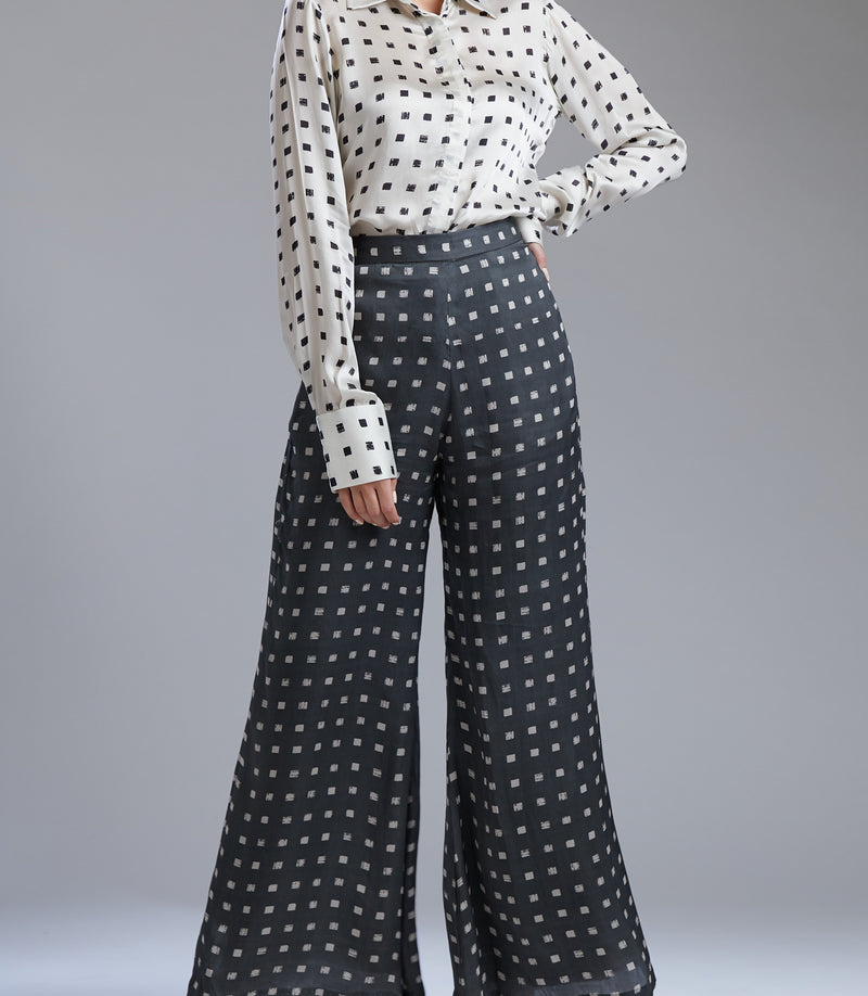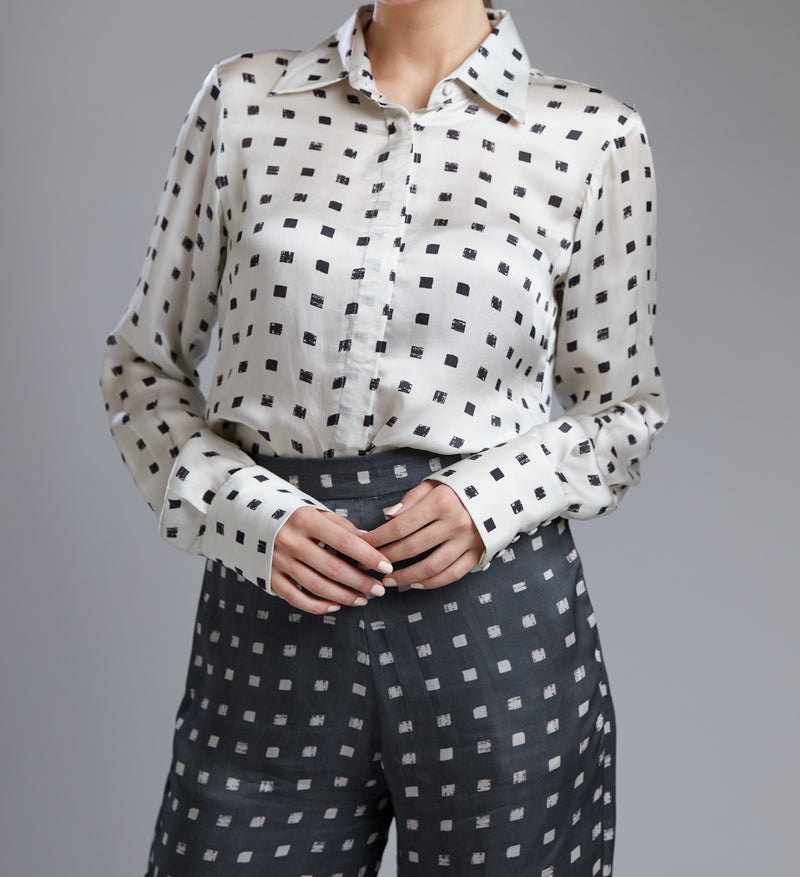 WHITE AND BLACK SQUARE POLKA SHIRT