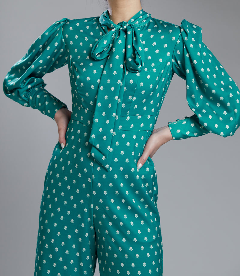 SEA GREEN AND CREAM POLKA JUMPSUIT