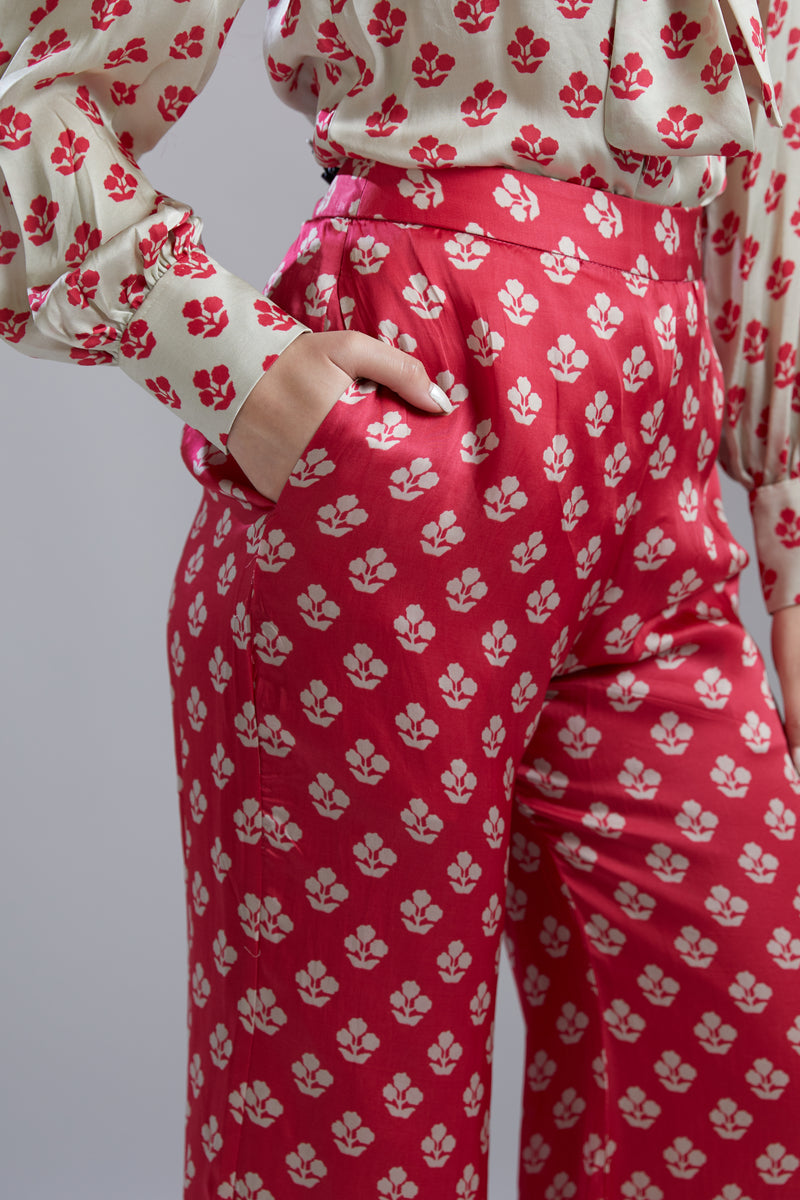 RED , BLUE AND WHITE FLORAL PANTS
