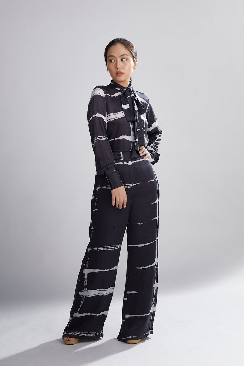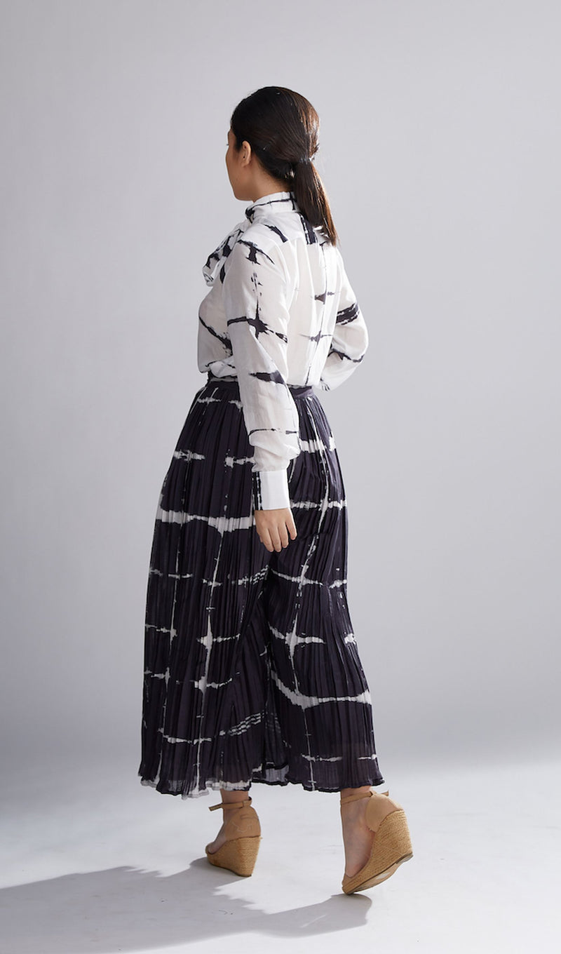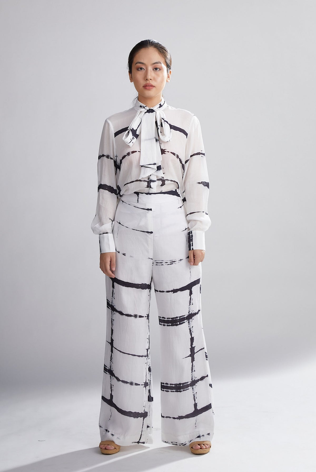 WHITE AND BLACK SHIBORI BOW SHIRT