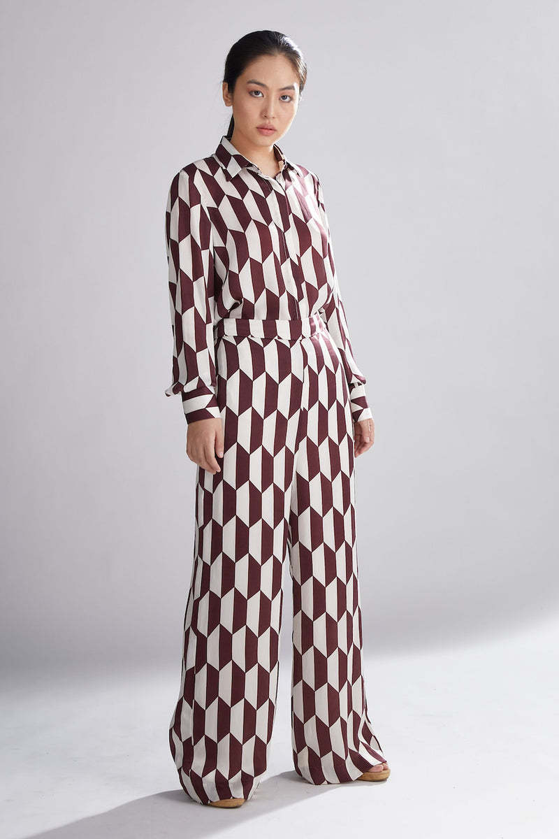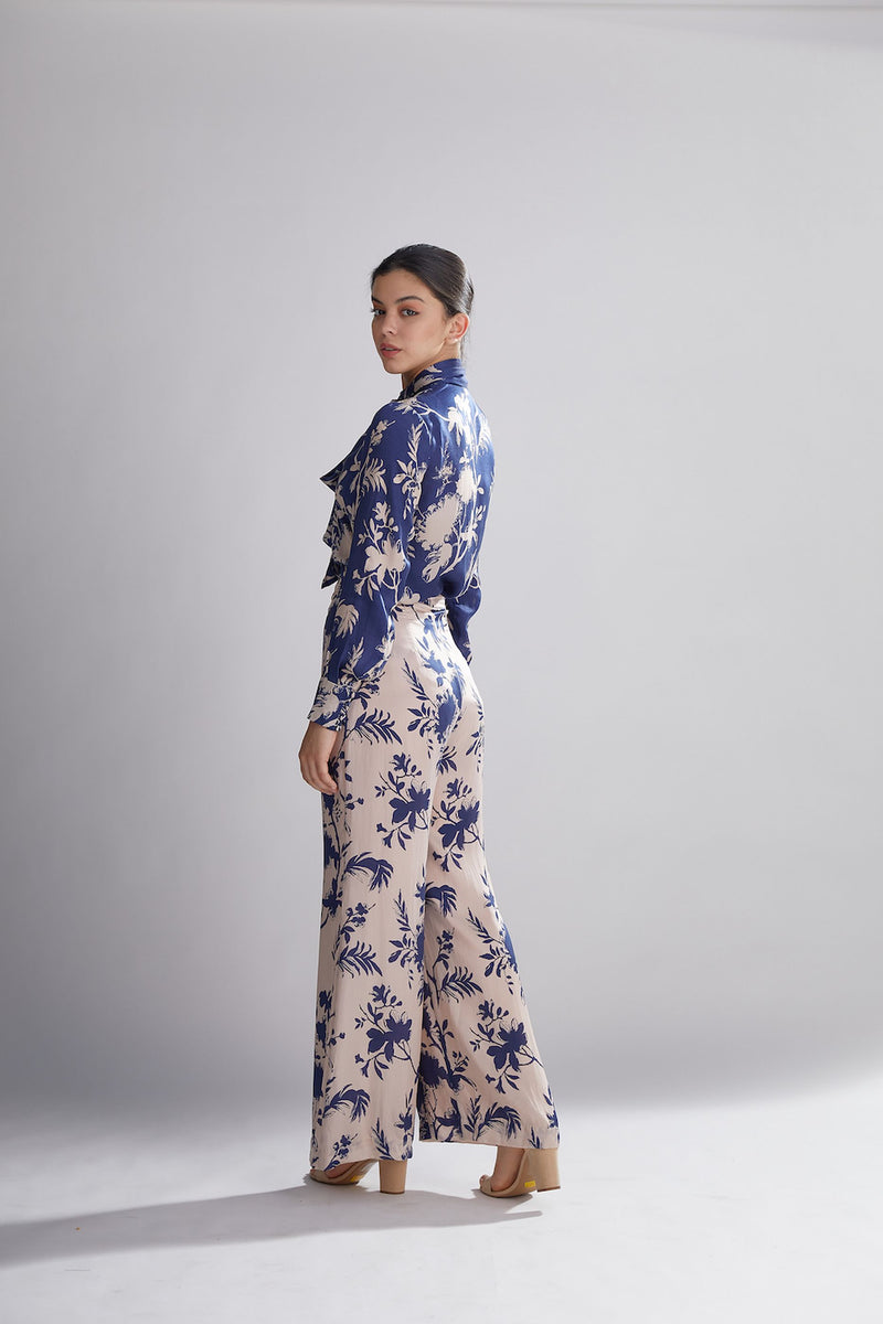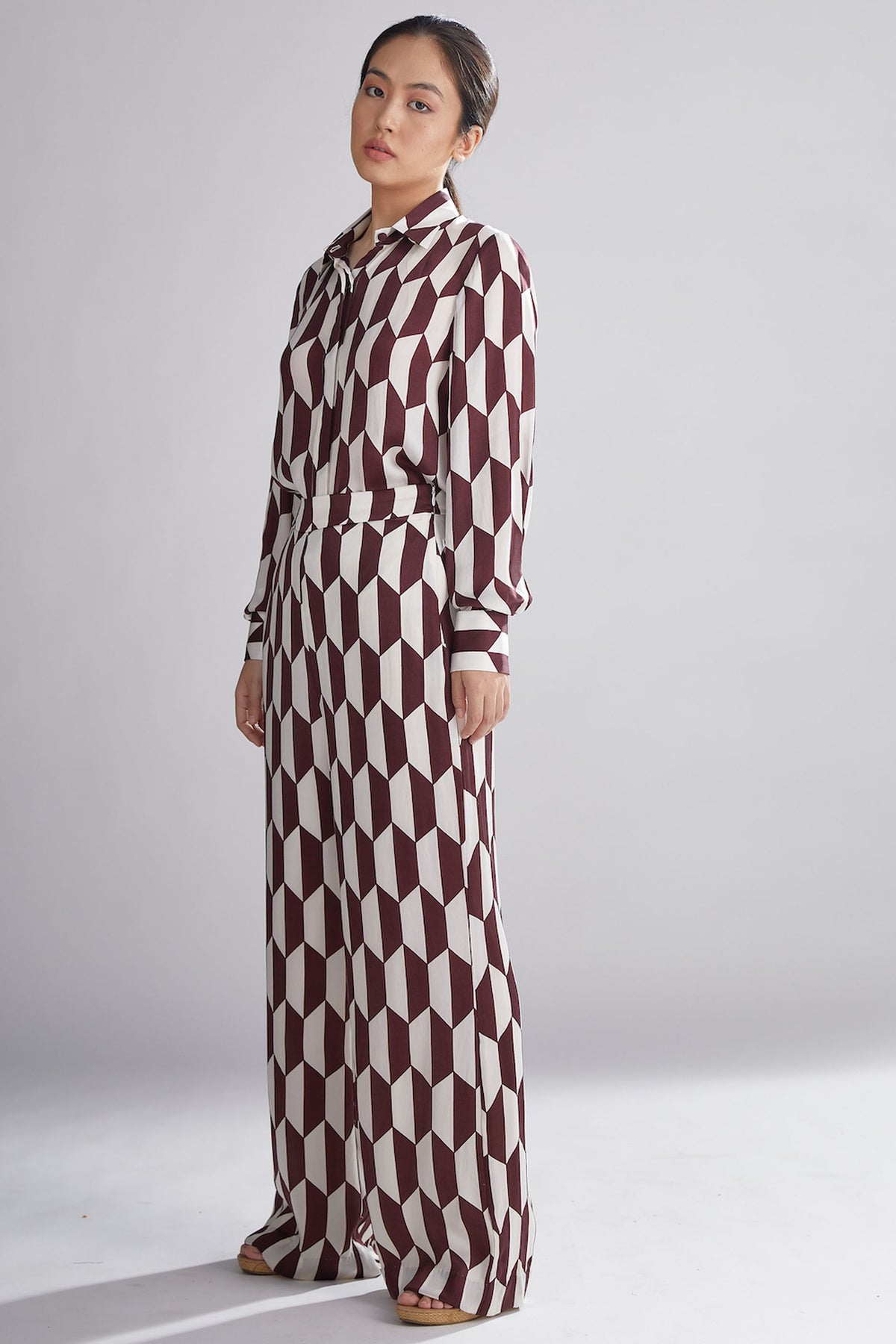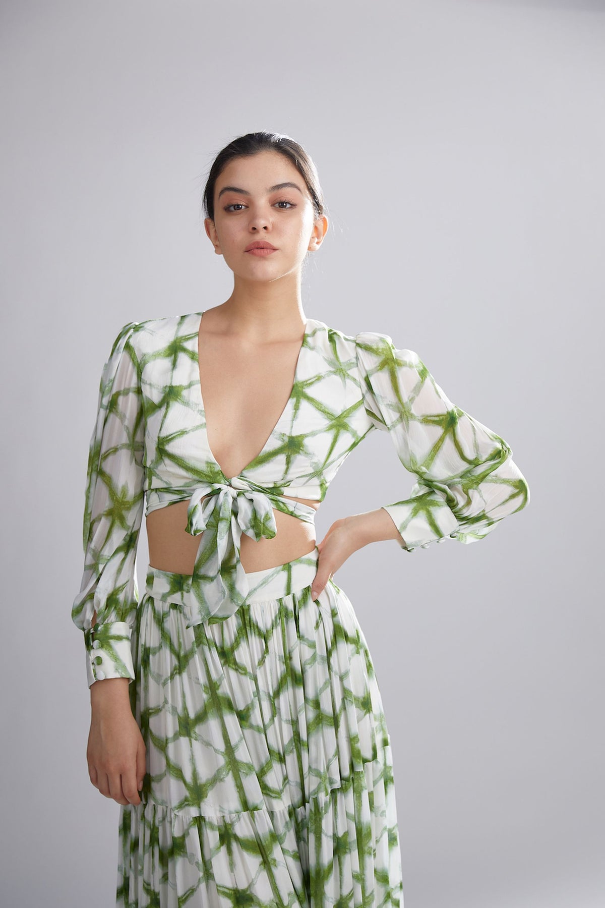 WHITE AND BLACK SHIBORI BOW SHIRT