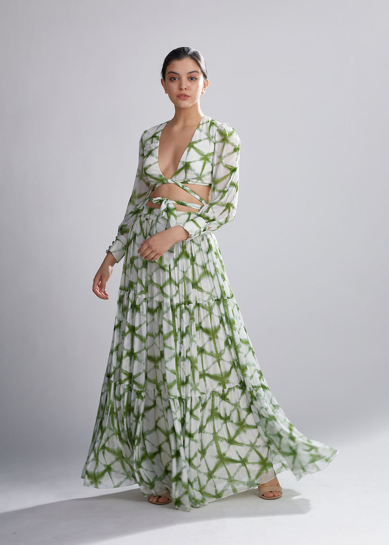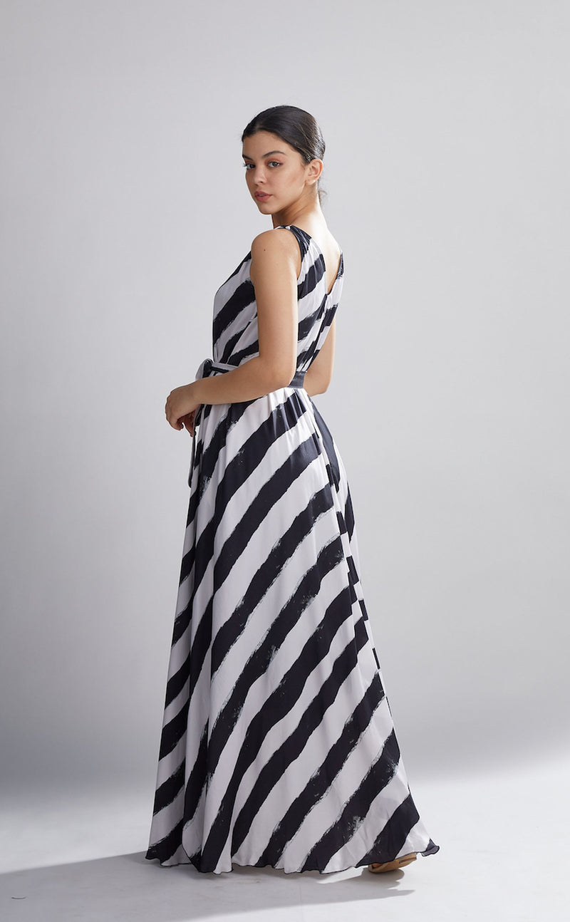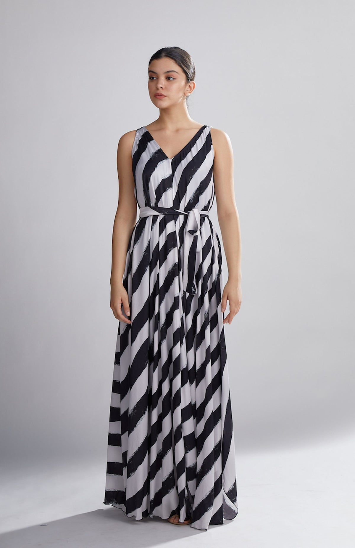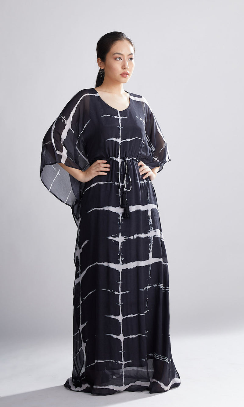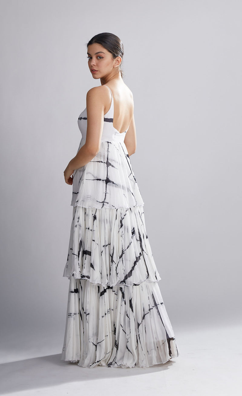 WHITE AND BLACK SHIBORI LAYERED DRESS