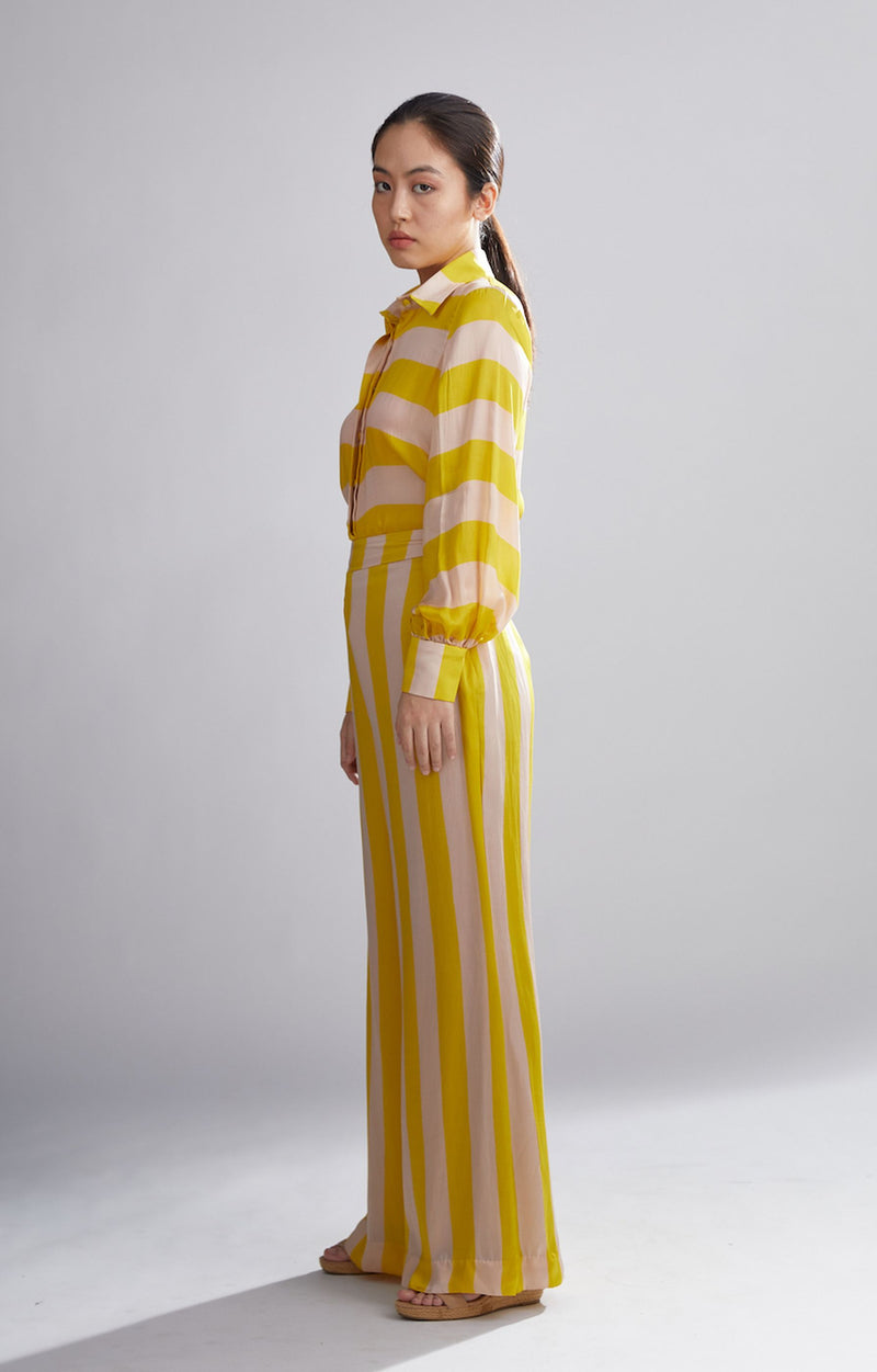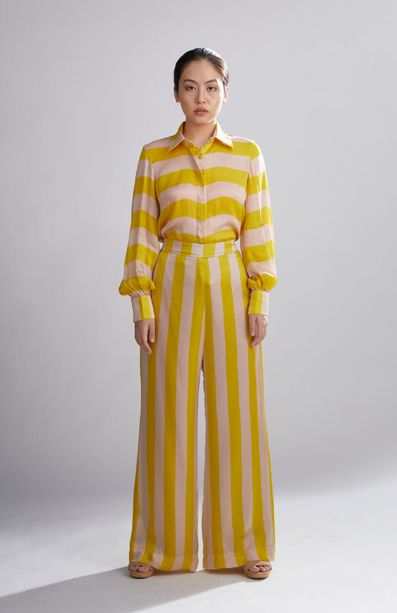 CREAM AND YELLOW ZIG ZAG BOW SHIRT