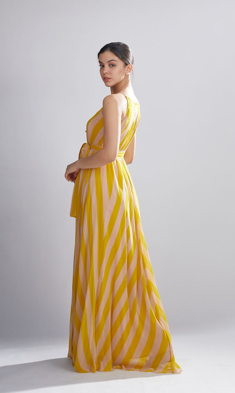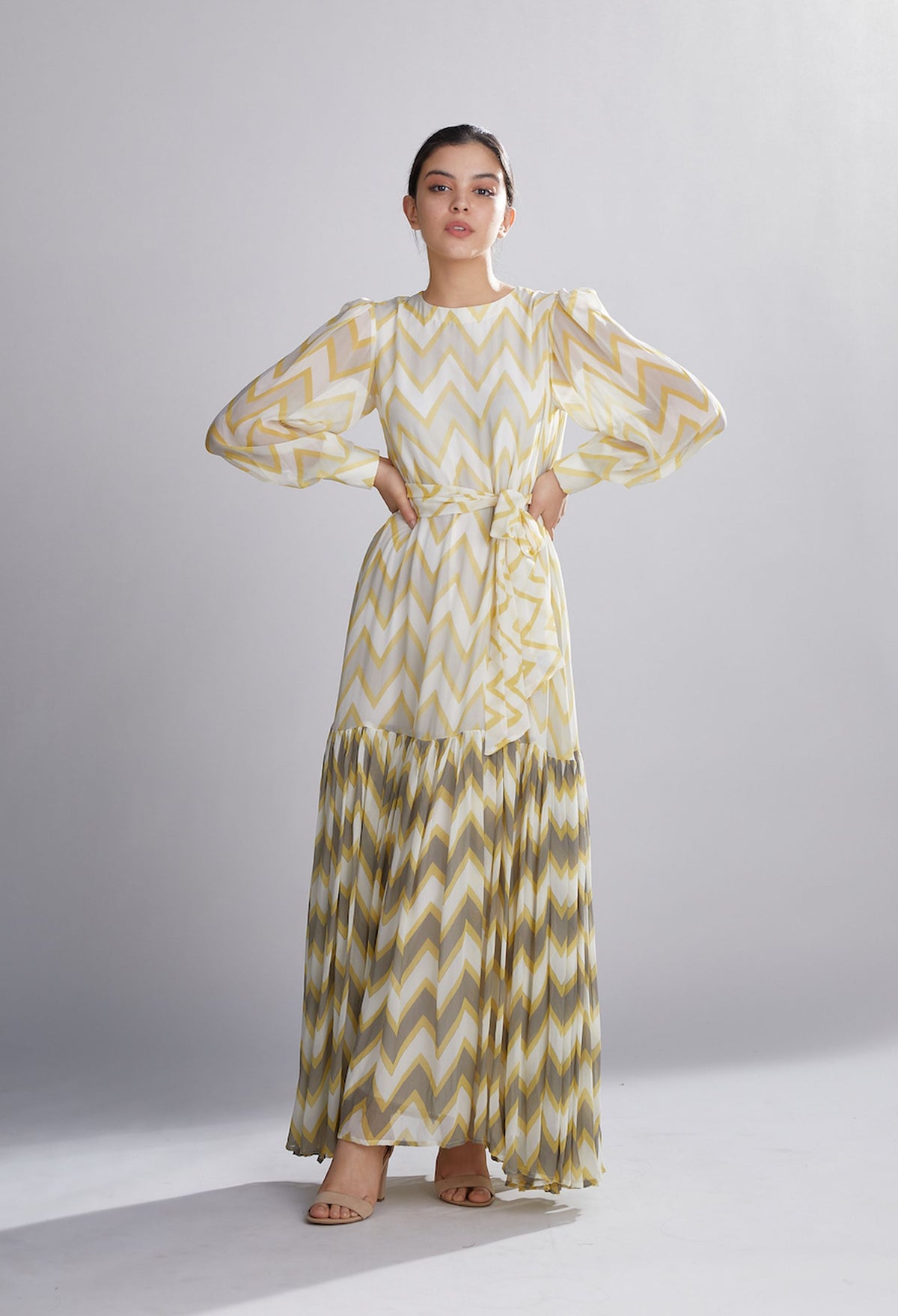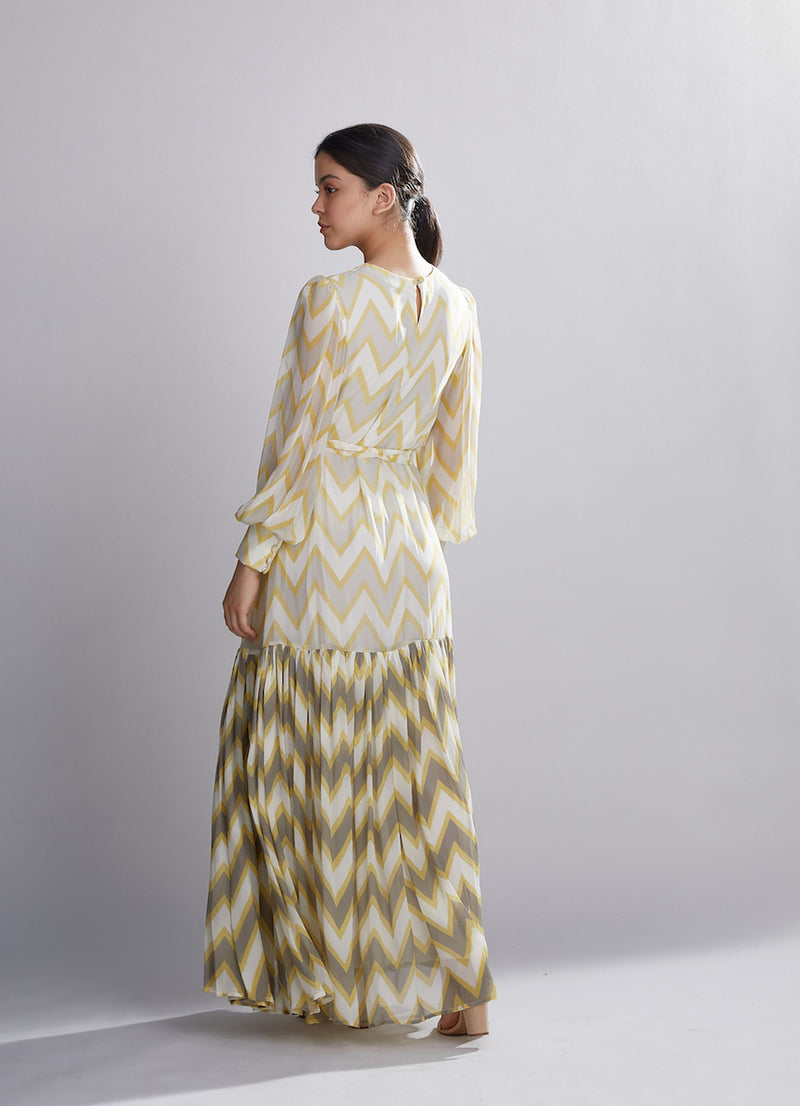 GREY YELLOW AND CREAM ZIG ZAG LONG DRESS