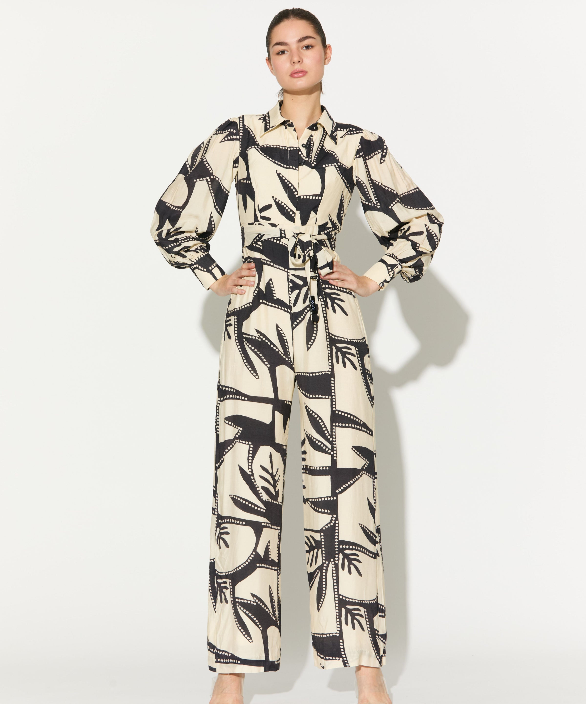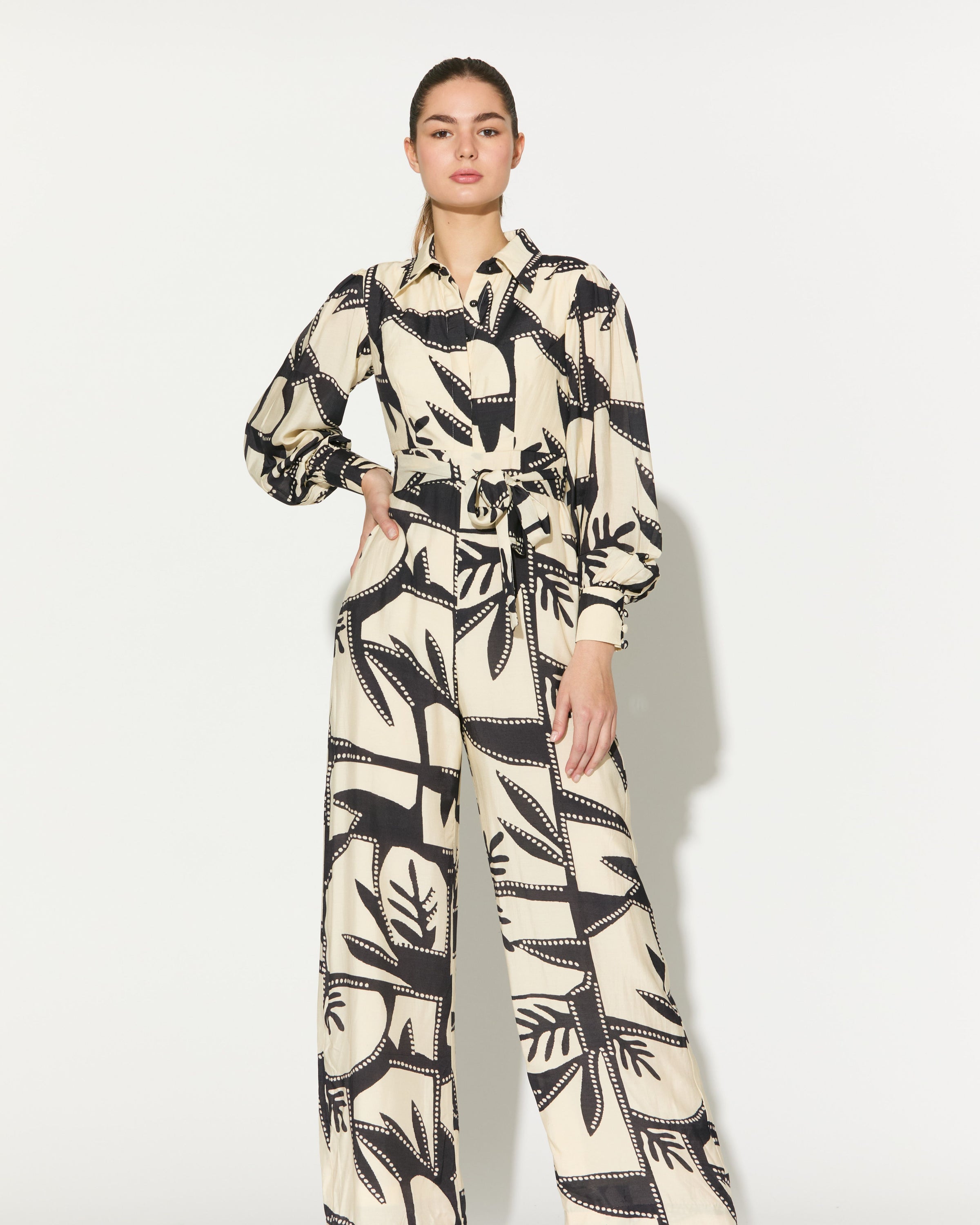 WHITE AND BLACK PATTERNED JUMPSUIT