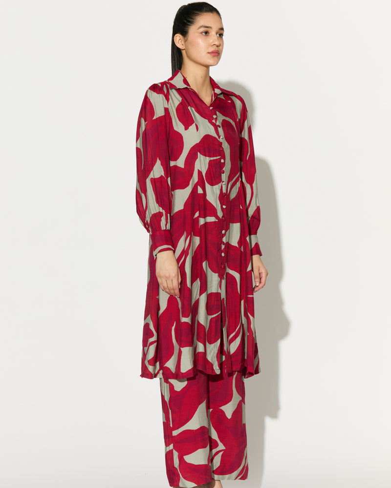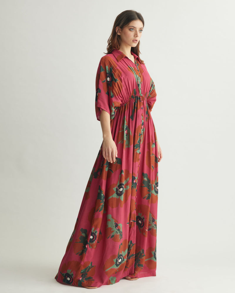 RED PINK AND MINT FLORAL LONG SHIRT DRESS