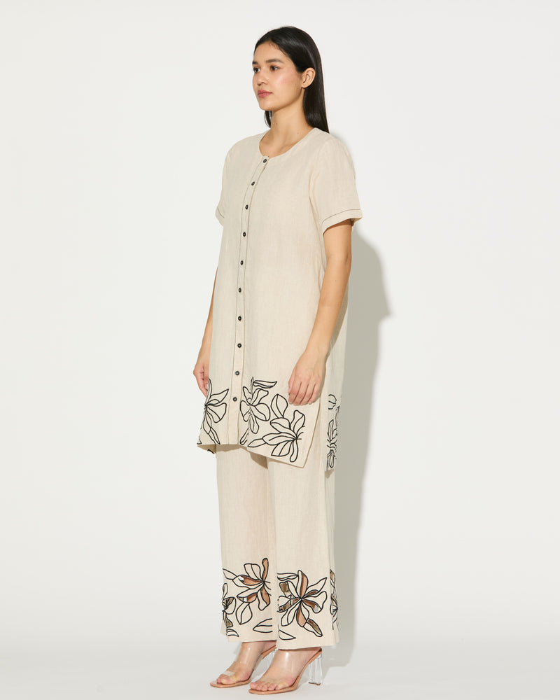 BEIGE AND HOT PINK FLORAL LONG SHIRT