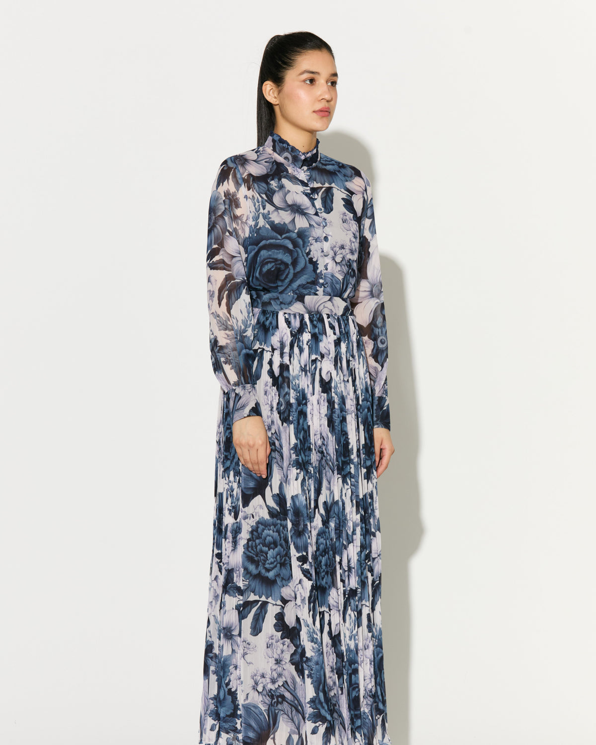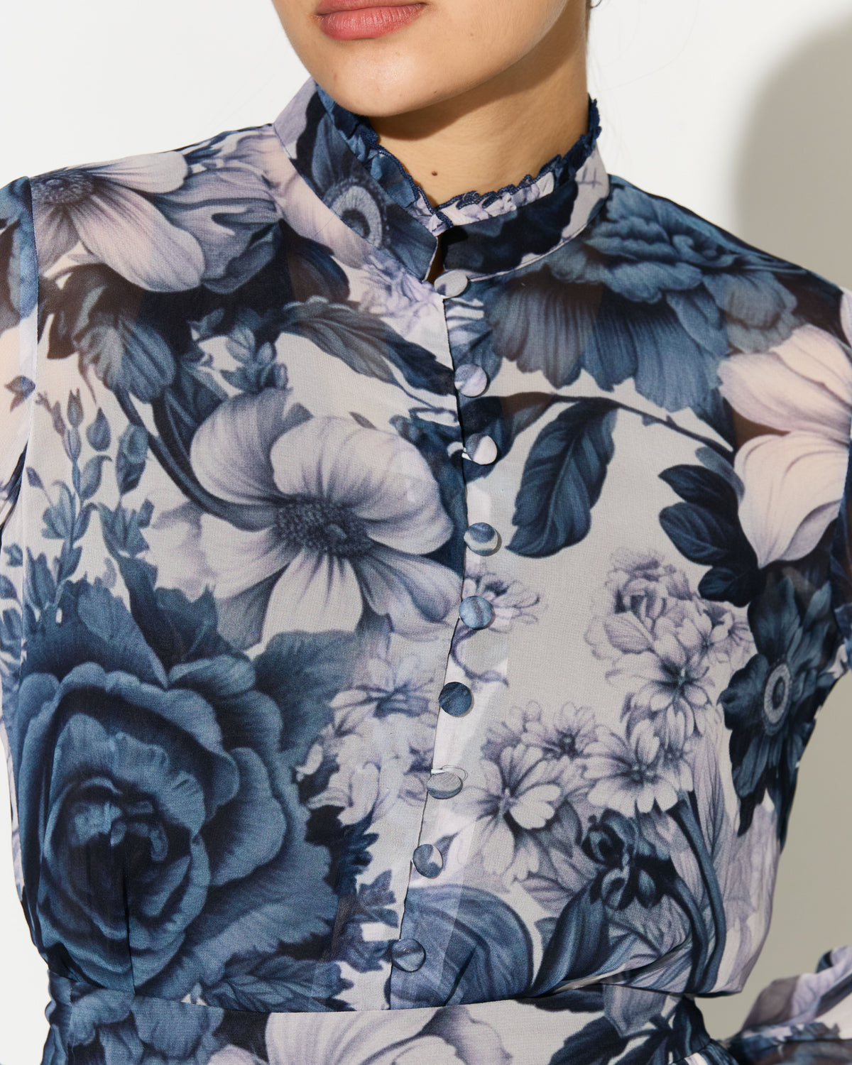 WHITE AND BLUE FLORAL FRILL COLLAR SHIRT