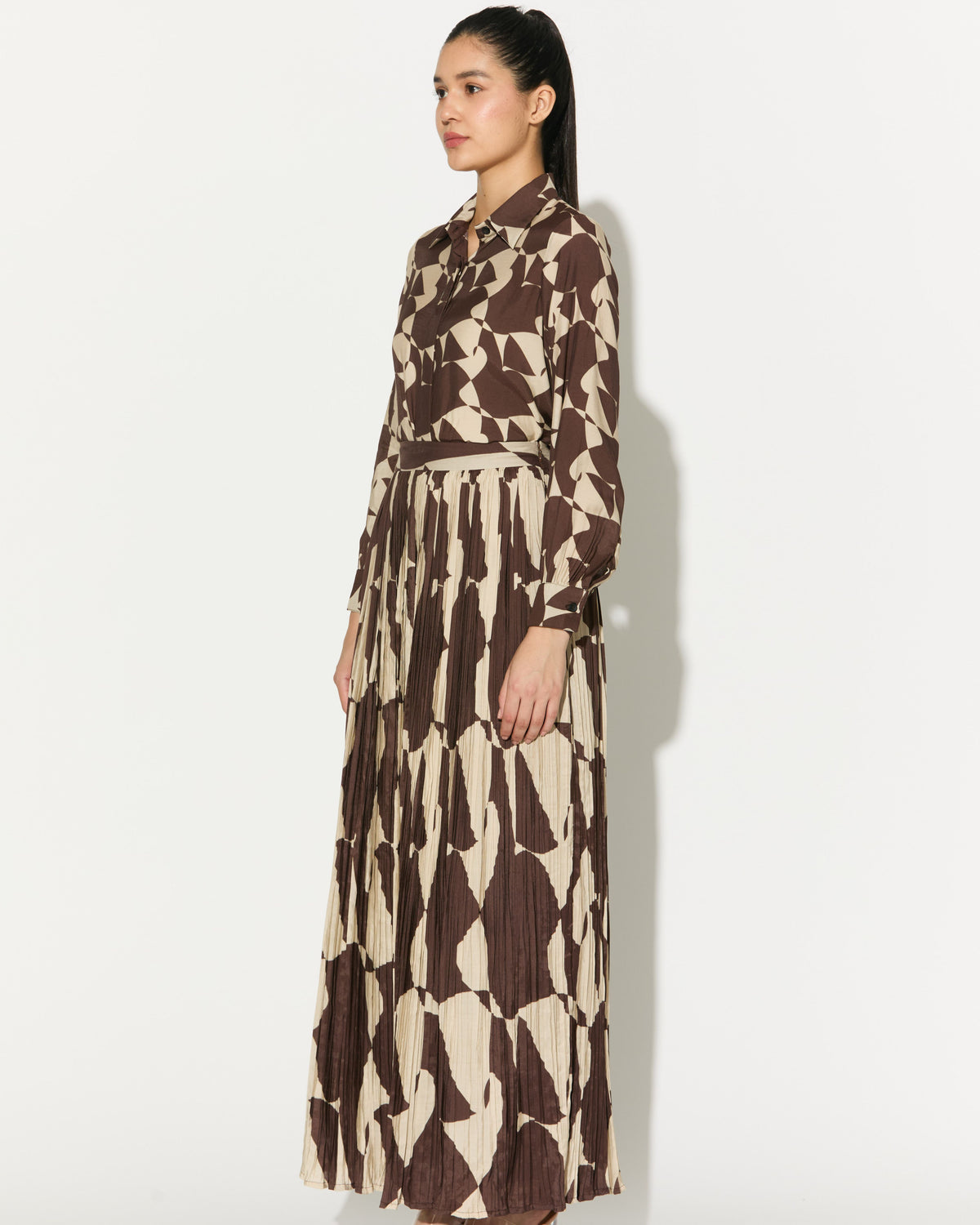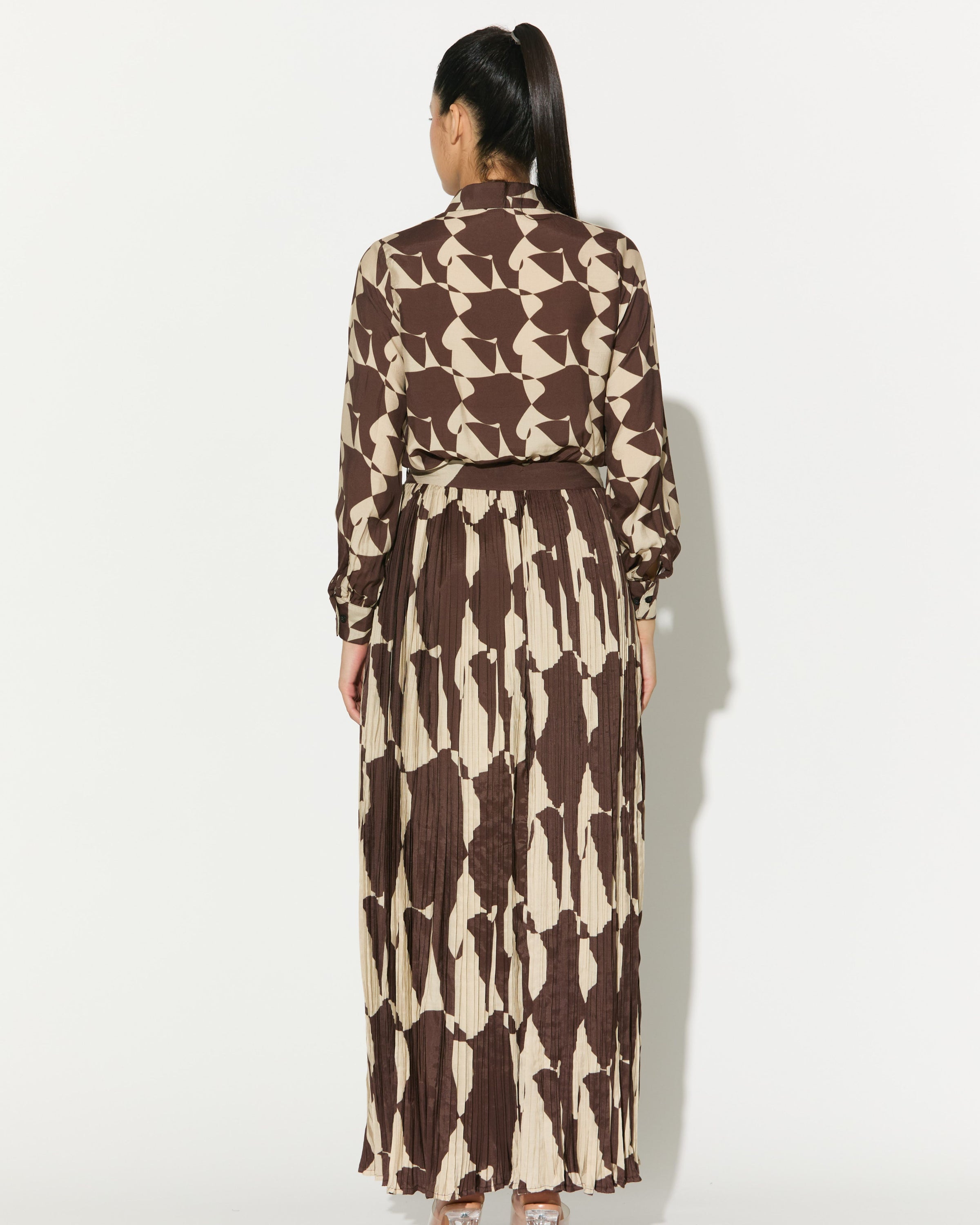 BROWN AND WHITE ABSTRACT CRINKLED SKIRT