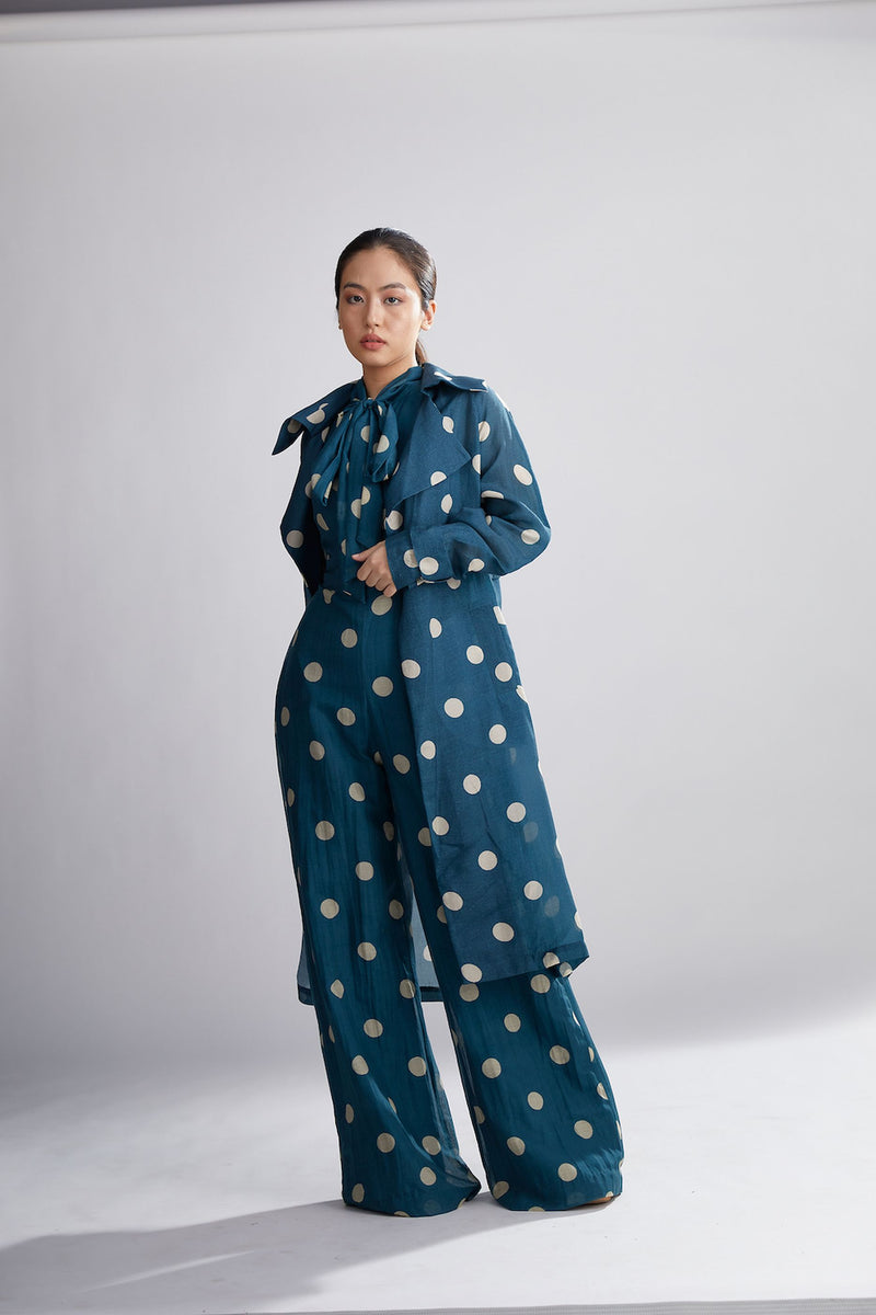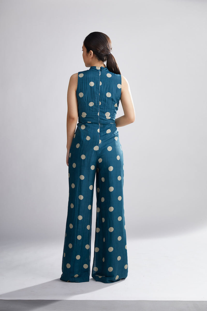 TEAL AND CREAM POLKA JUMPSUIT