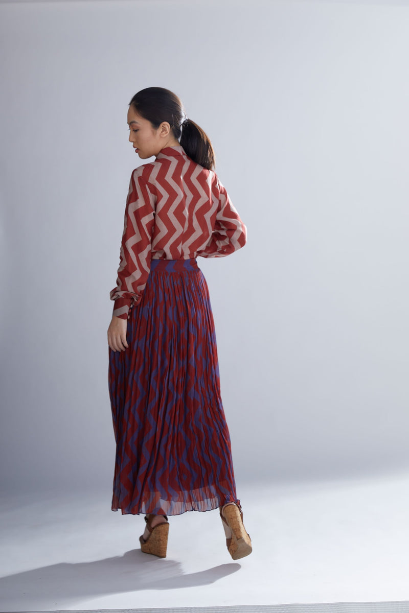 DABU ZIG ZAG BLUE AND RED PLEATED SKIRT