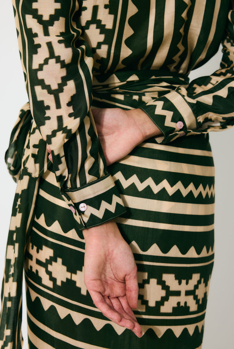 DARK GREEN AND CREAM PATTERN SHIRT