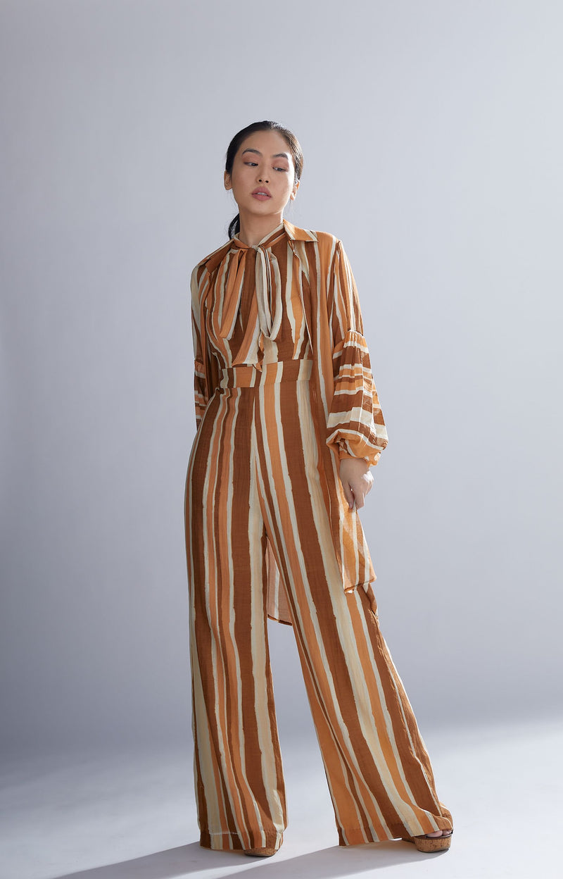 BROWN RUST AND CREAM SLEEVELESS JUMPSUIT