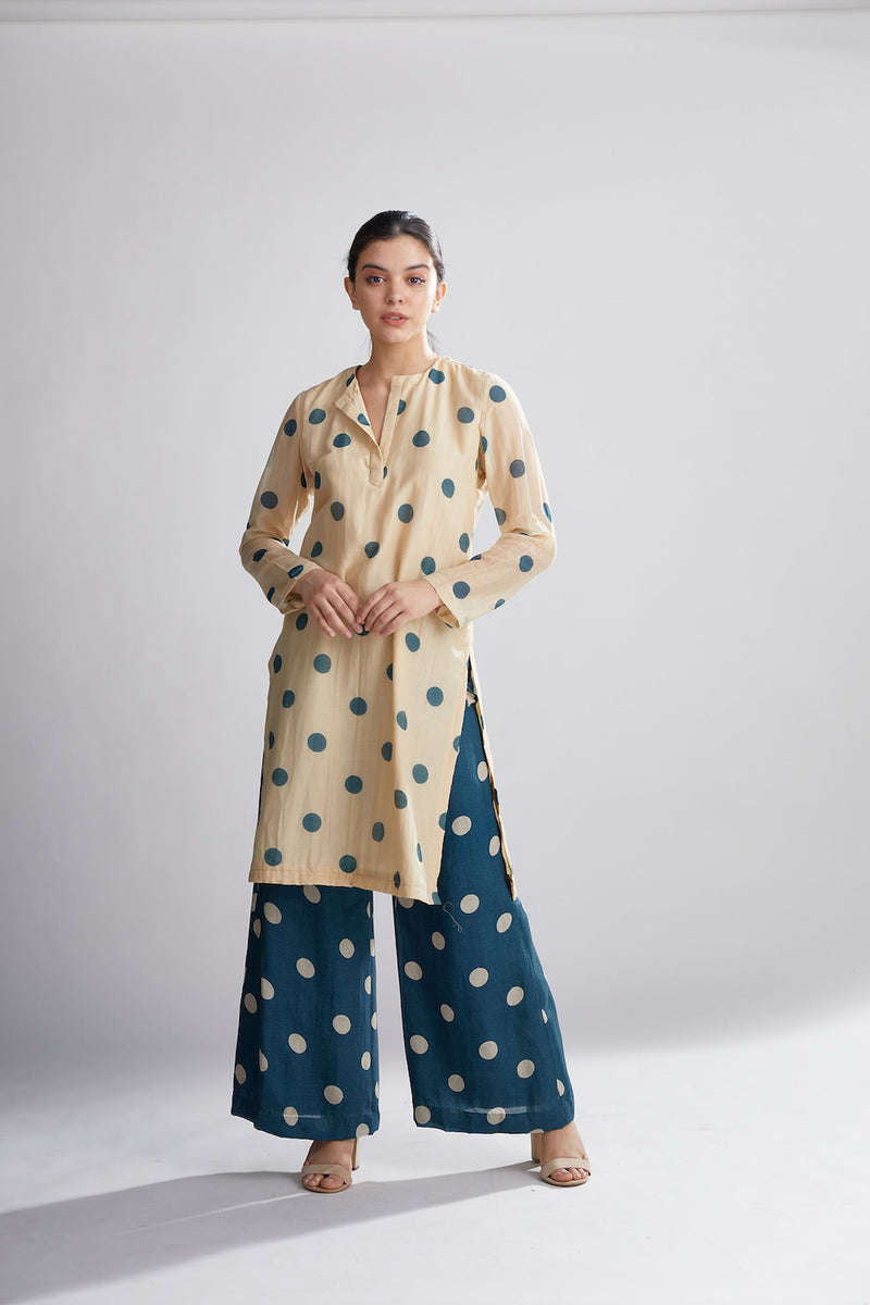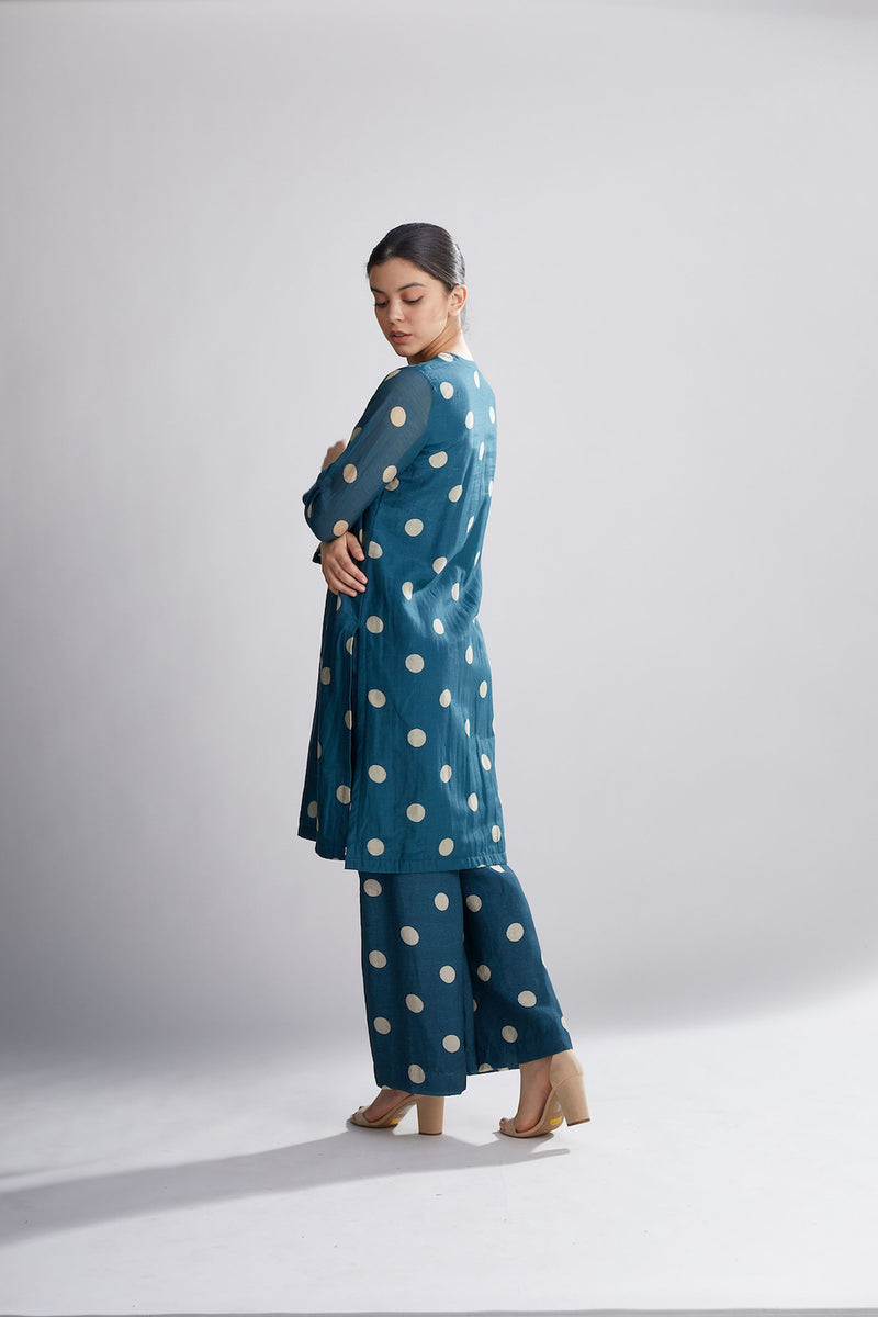 ORANGE AND BLUE FLORAL LONG SHIRT