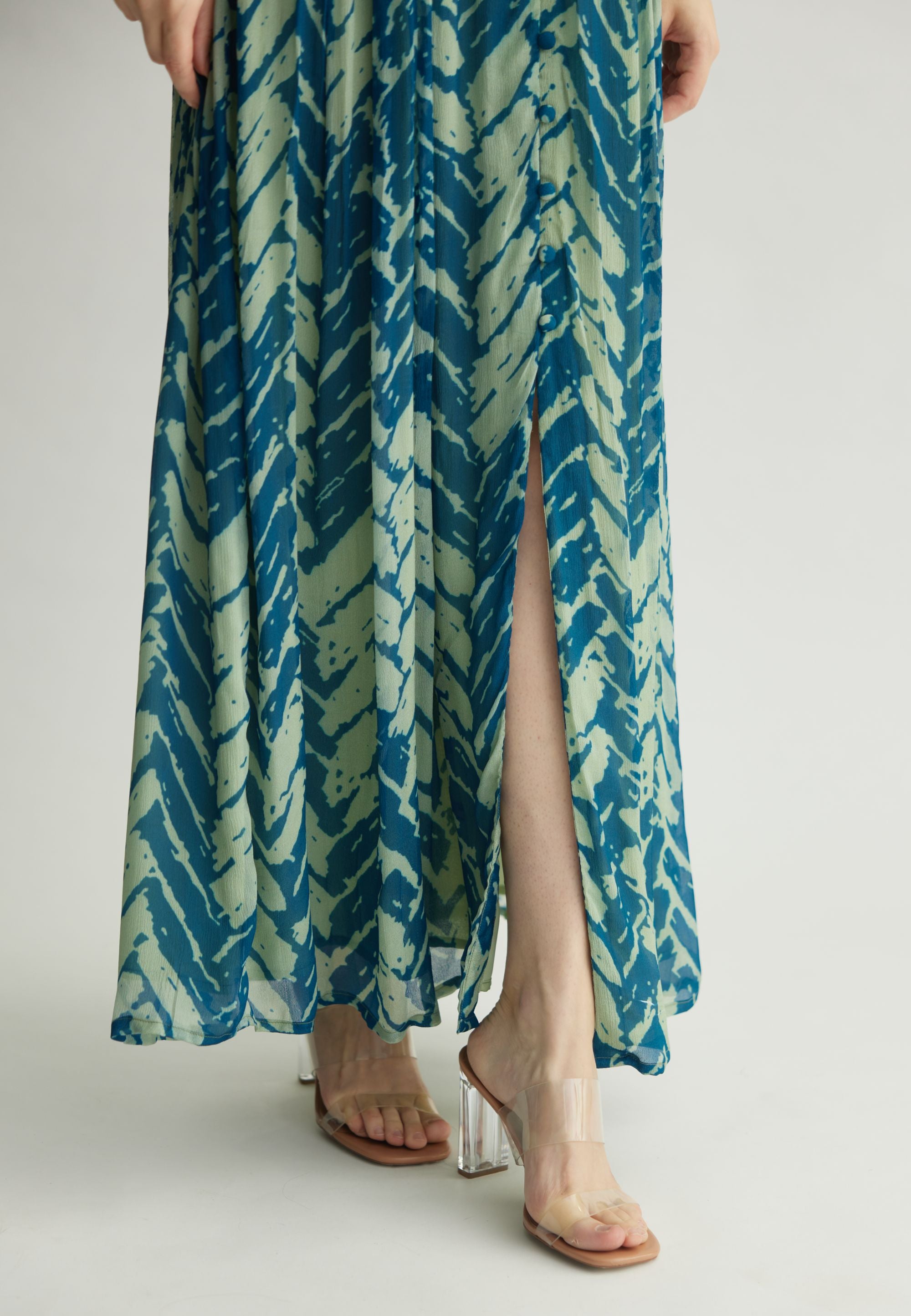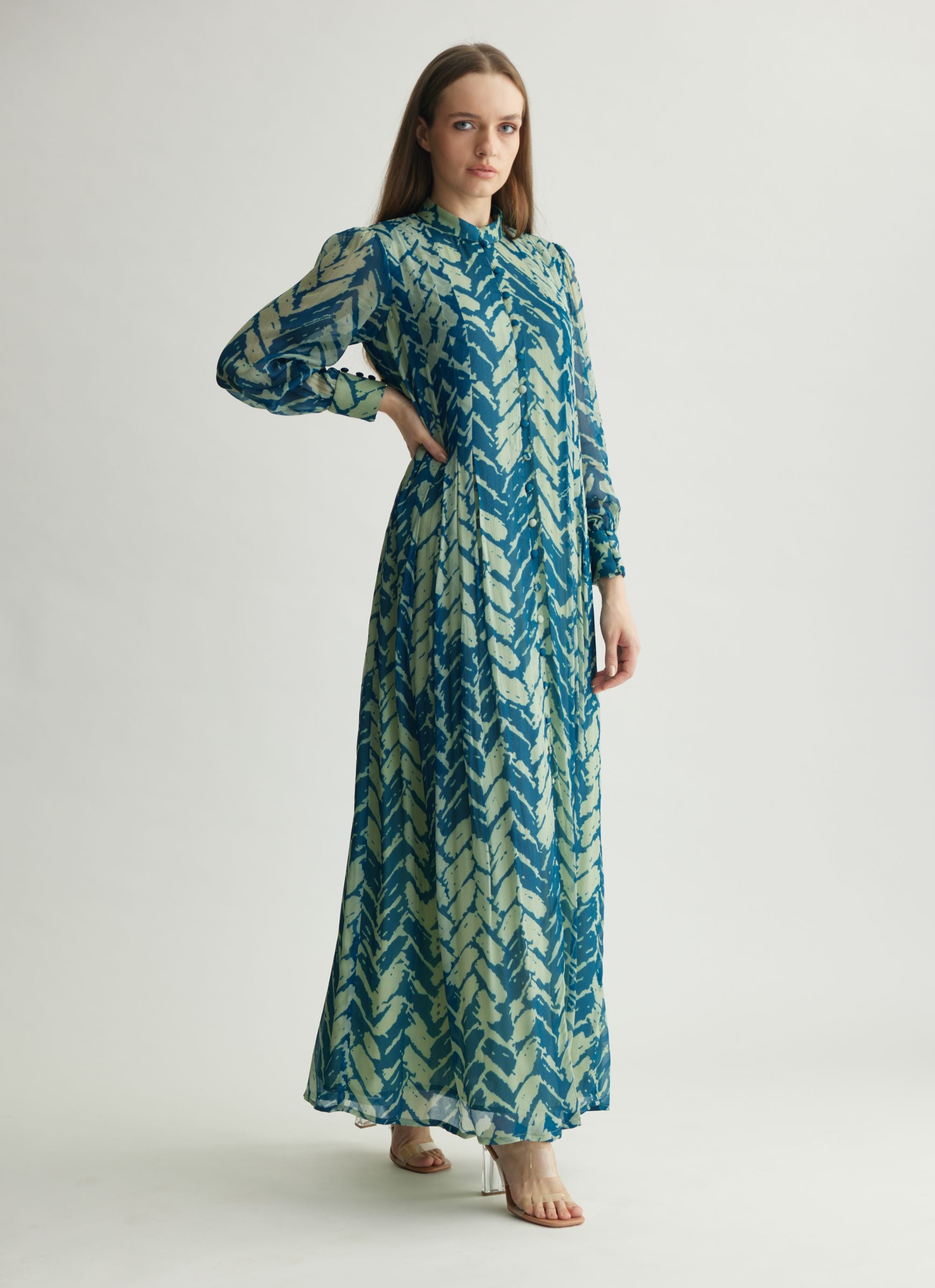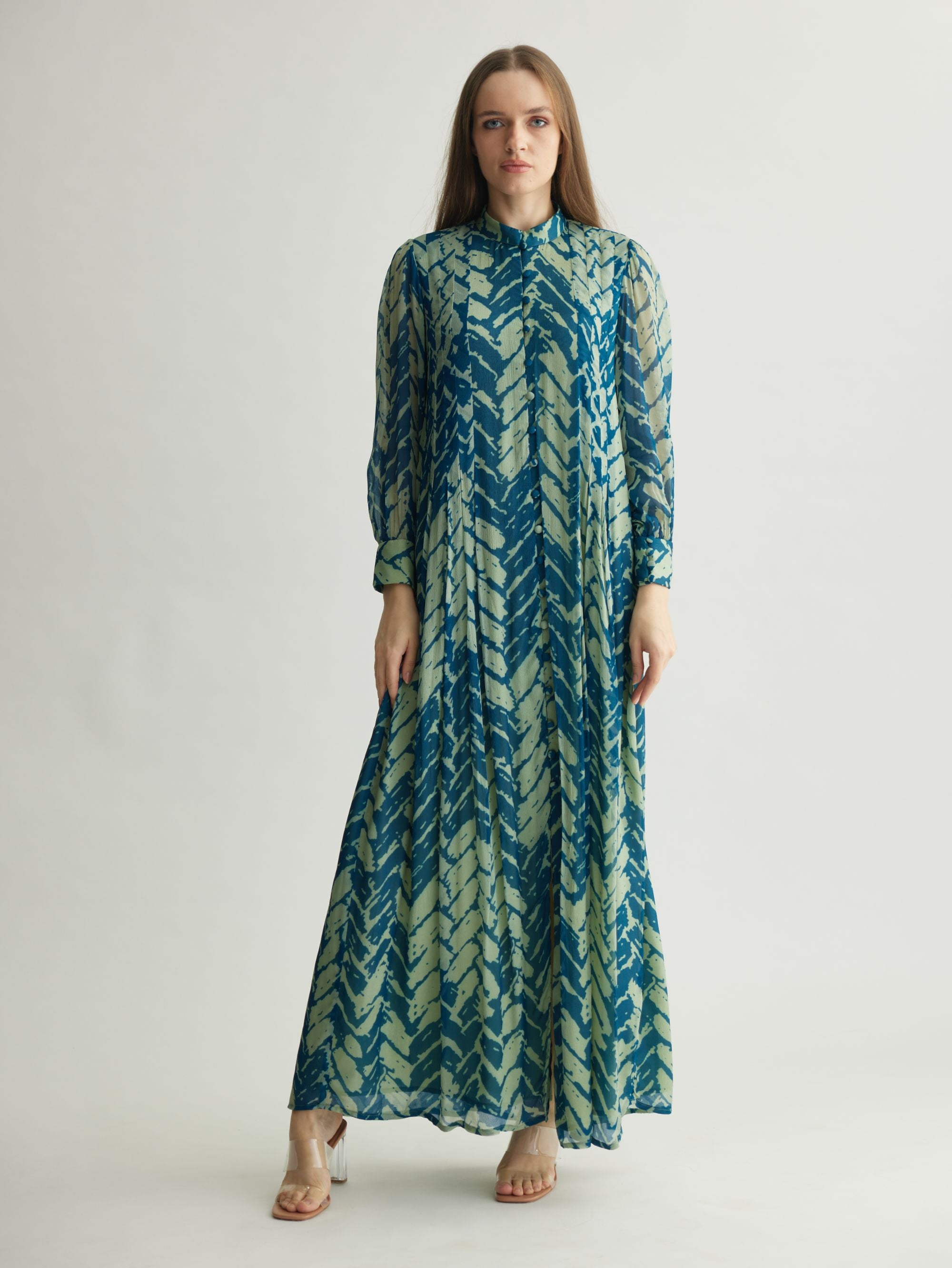 AQUA & BLUE CHEVRON PRINT LONG DRESS