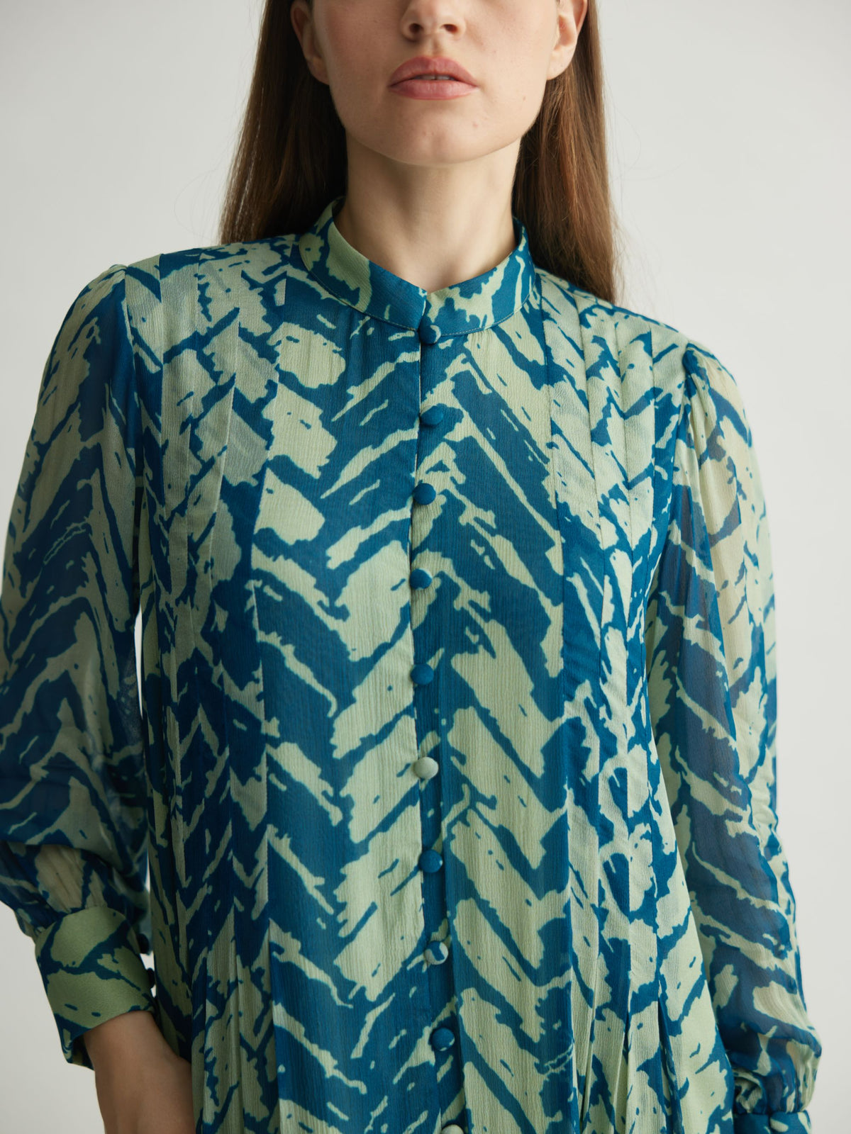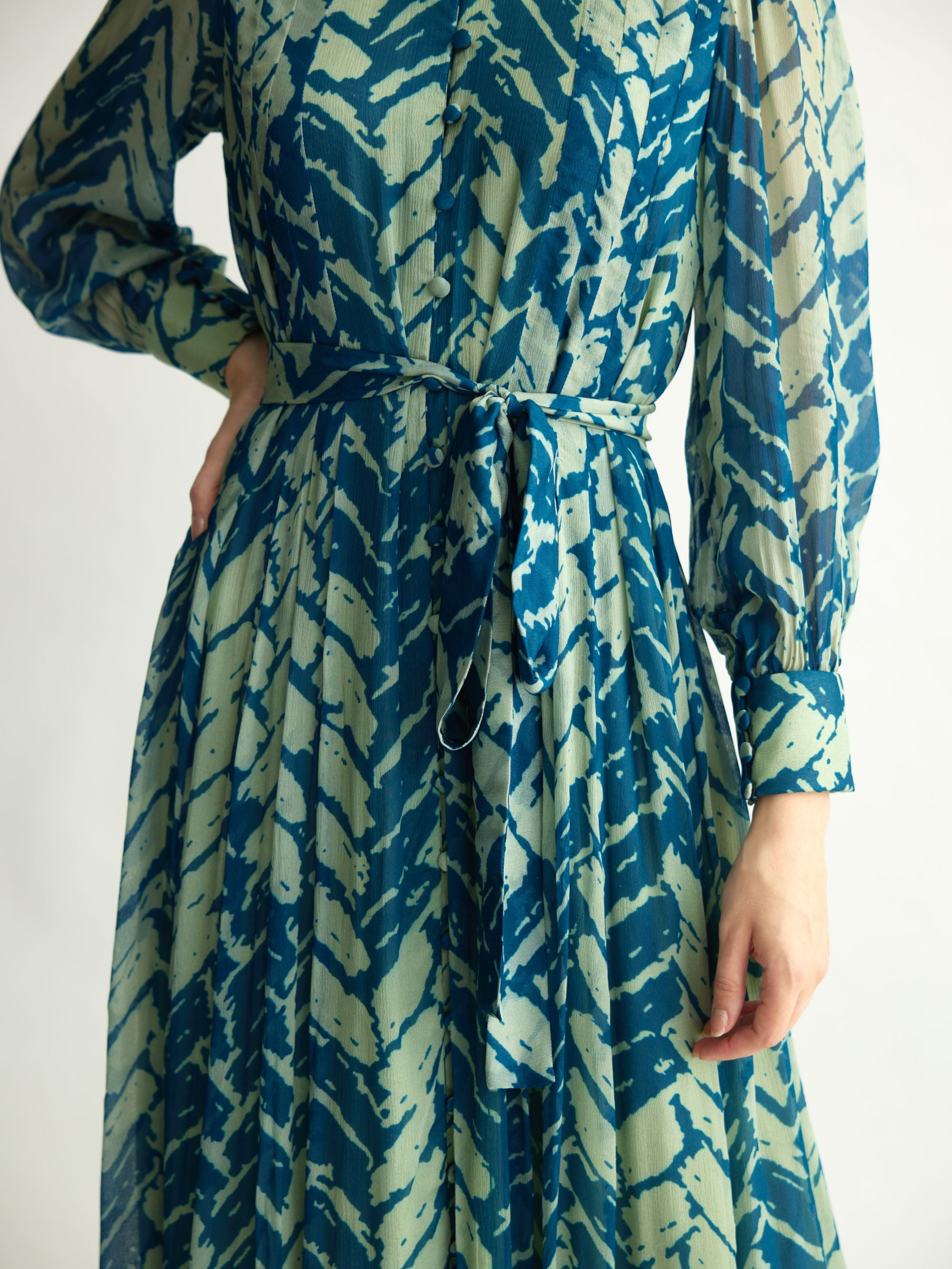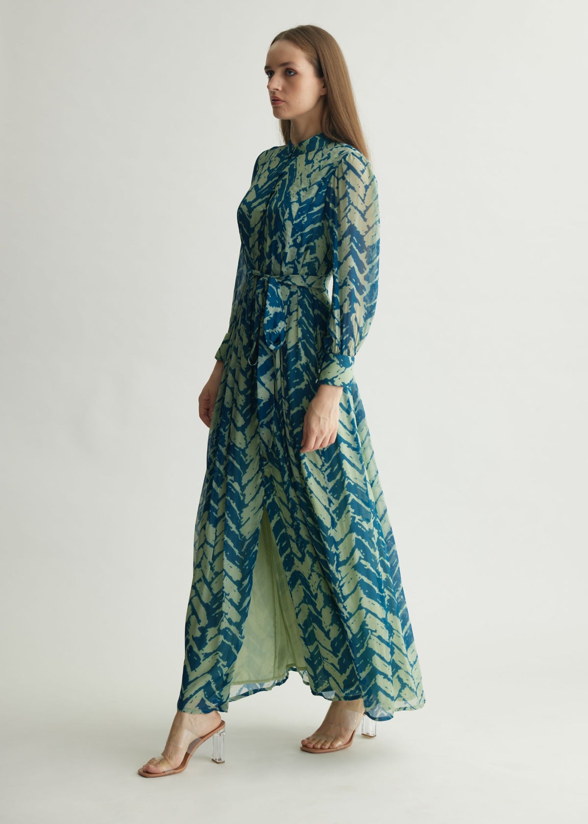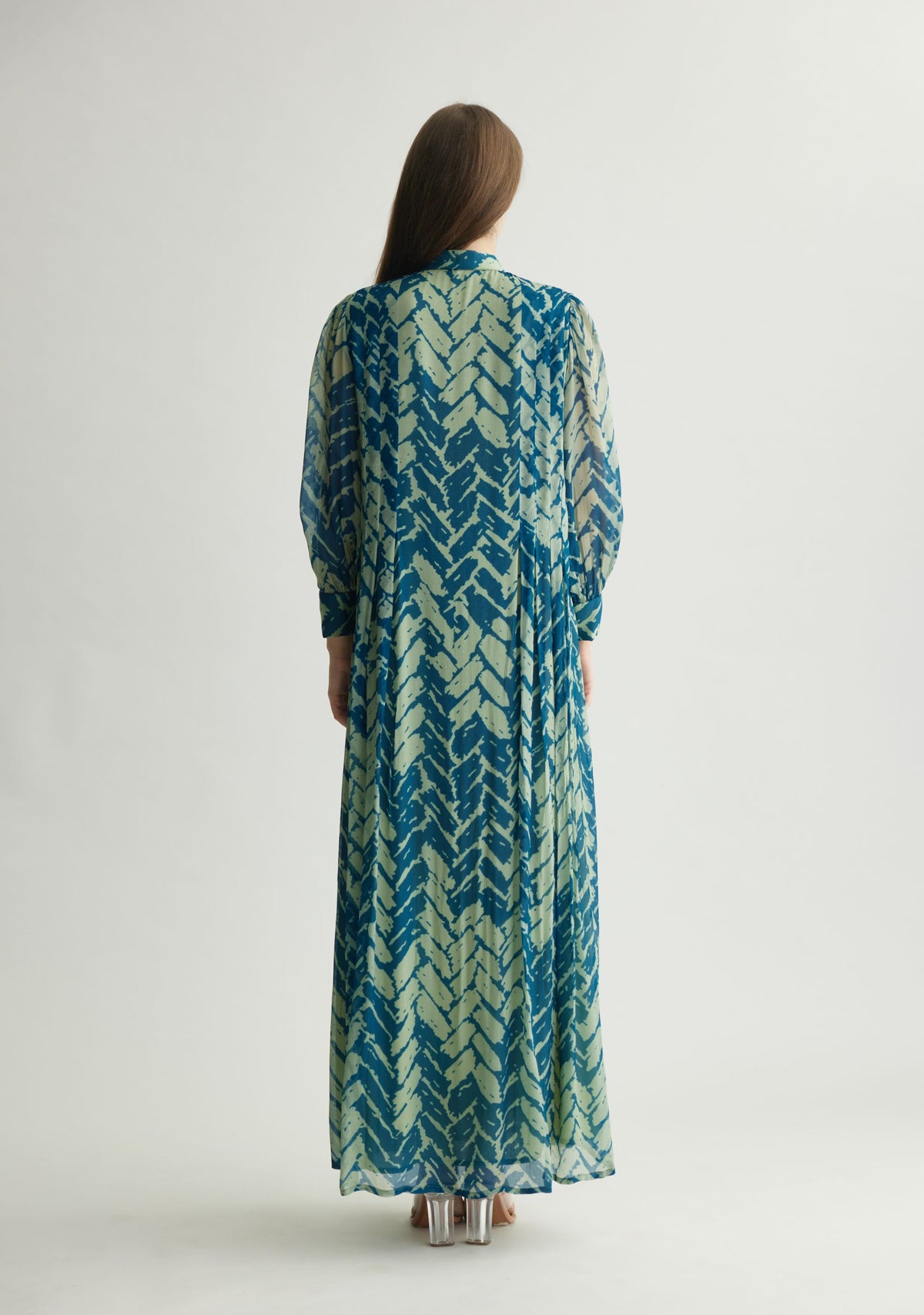 AQUA & BLUE CHEVRON PRINT LONG DRESS