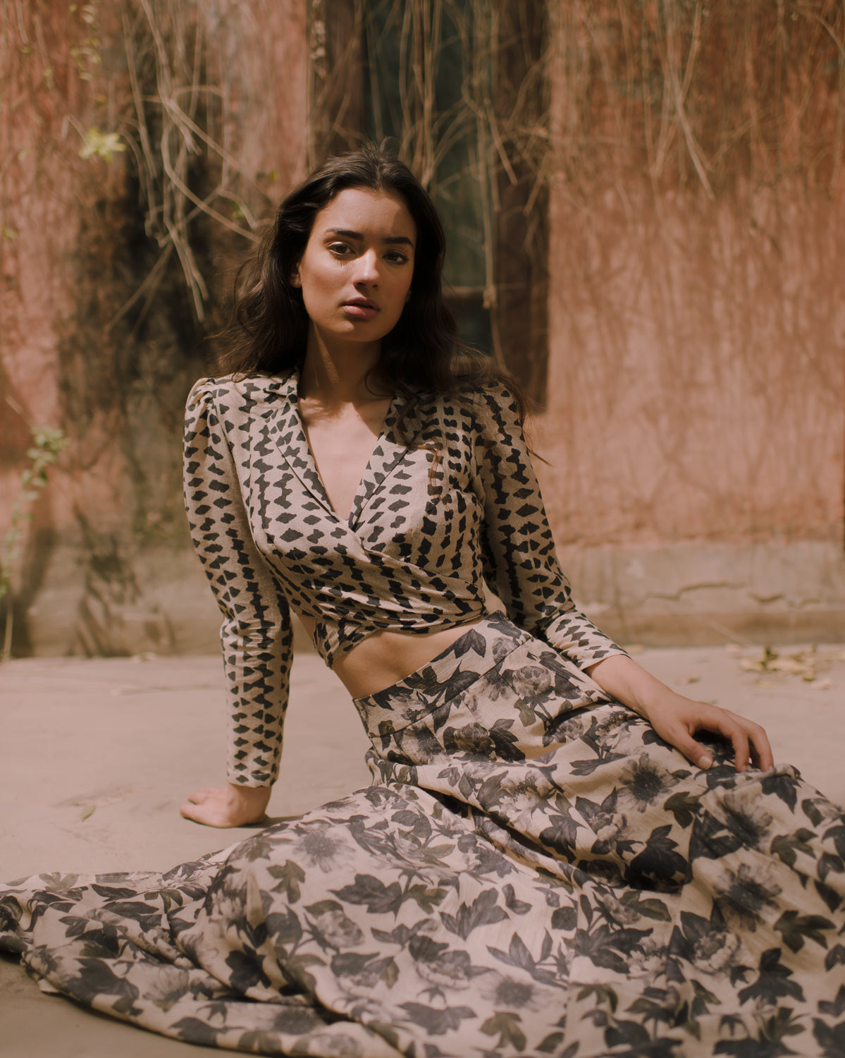 BLACK AND WHITE DABU PRINT WRAP SHIRT