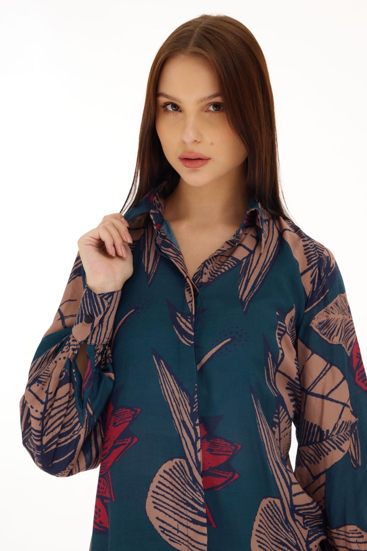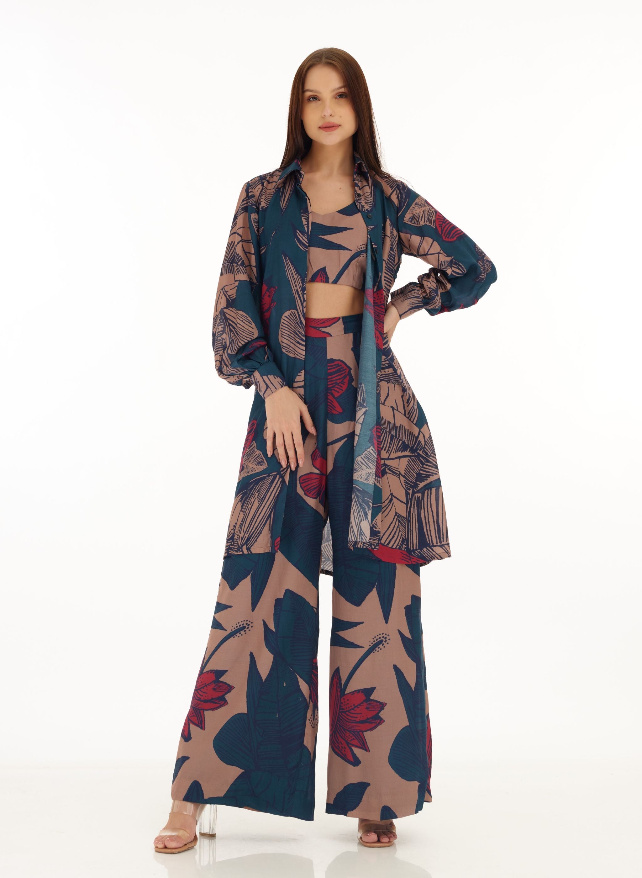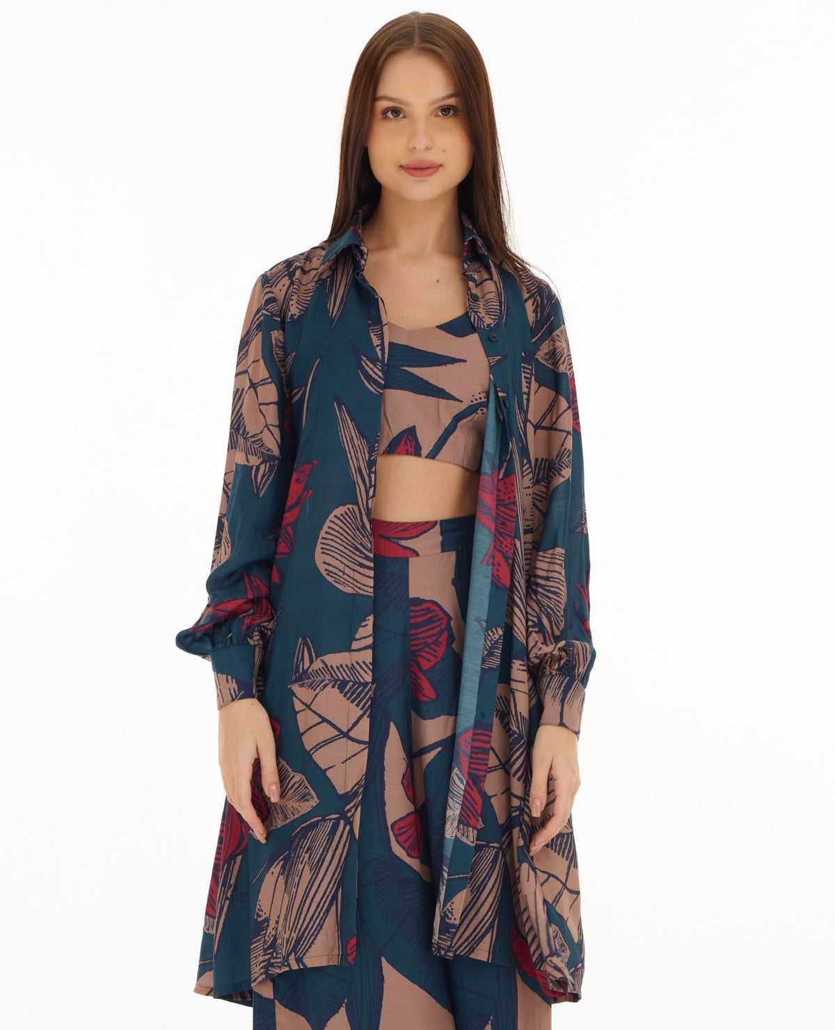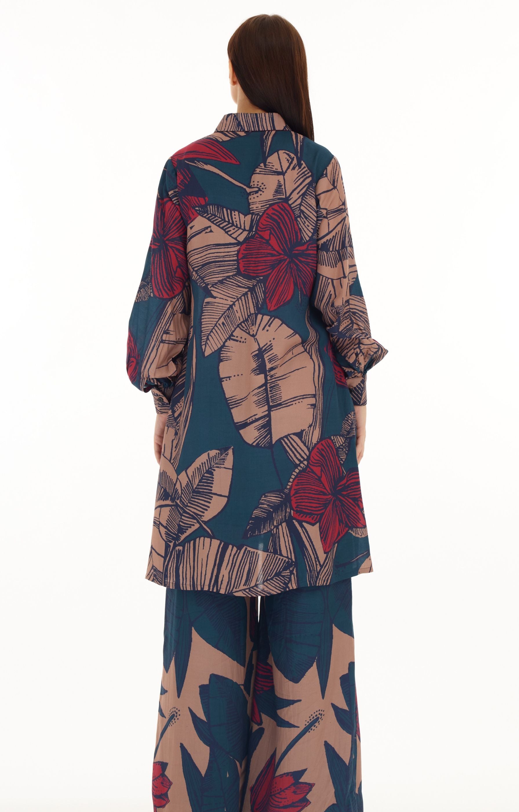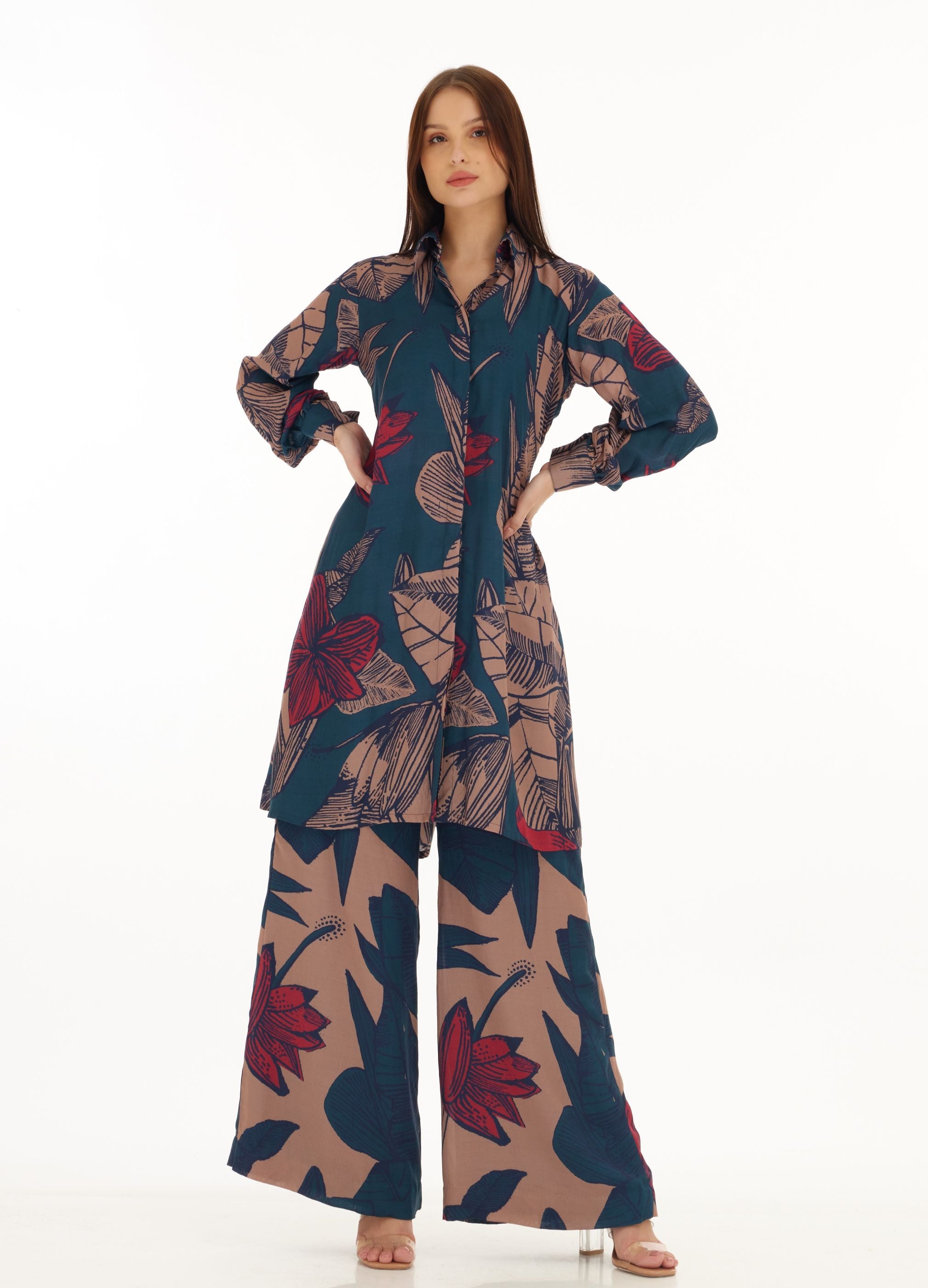 BLUE, ORANGE & RED FLORAL LONG SHIRT