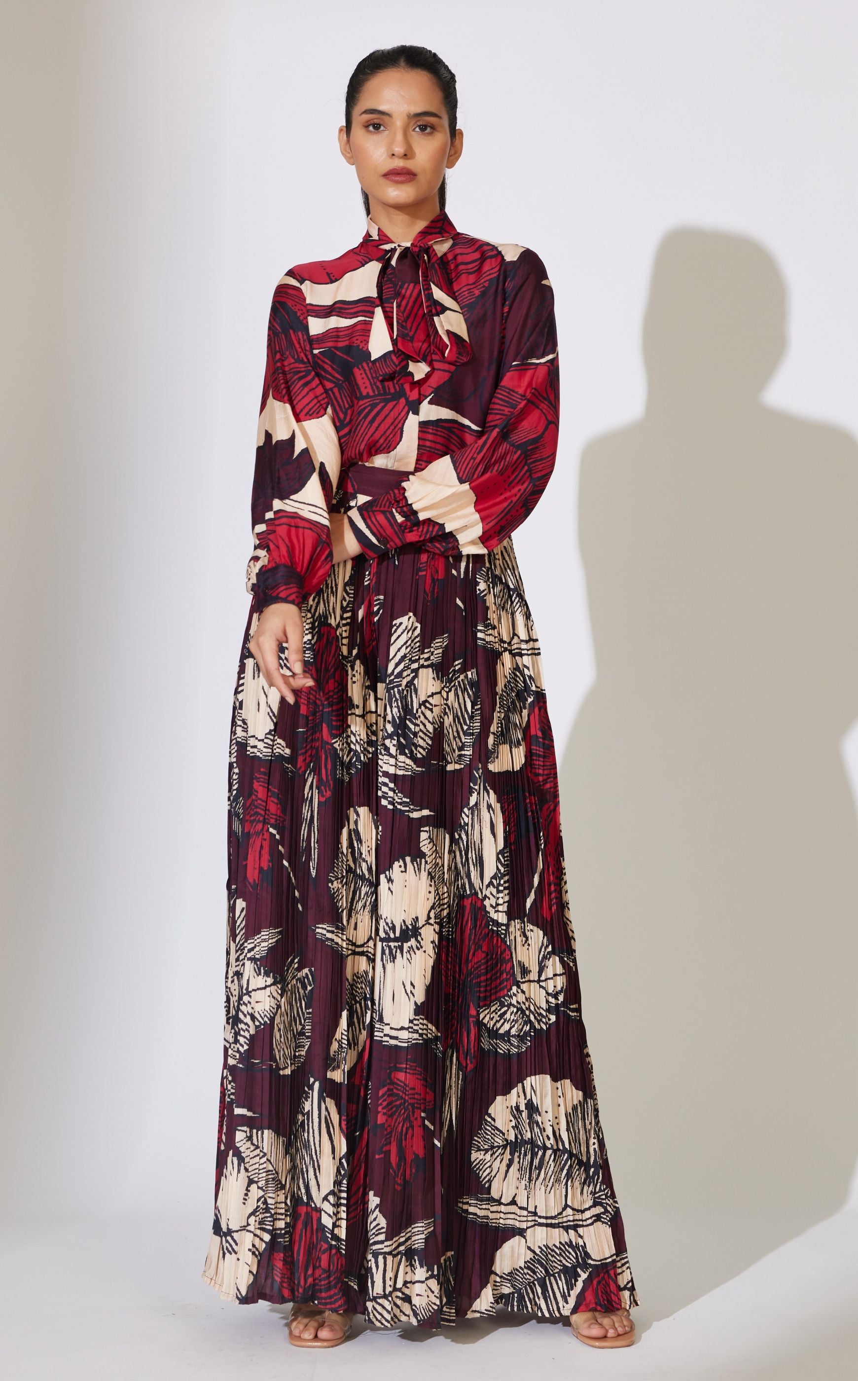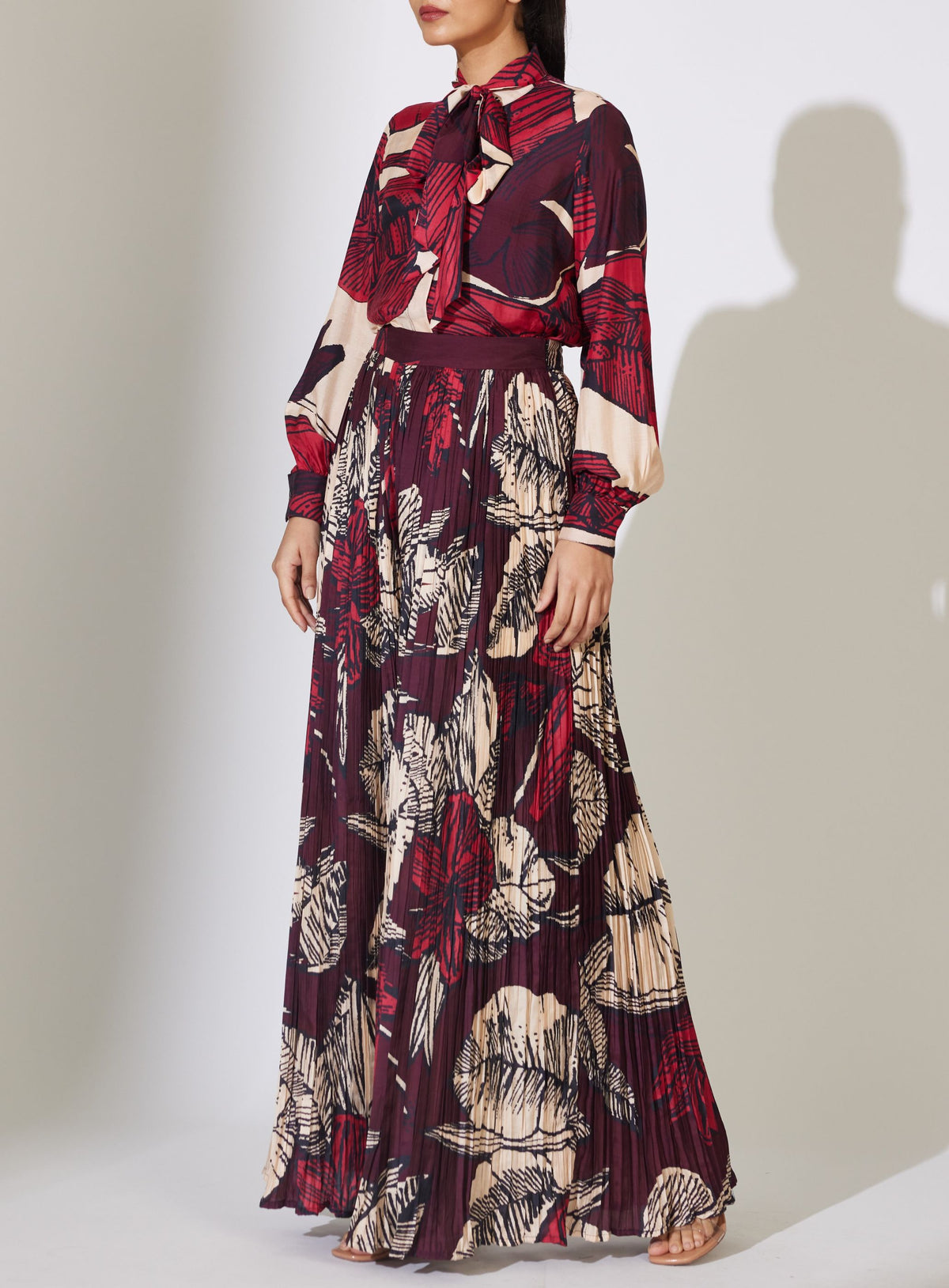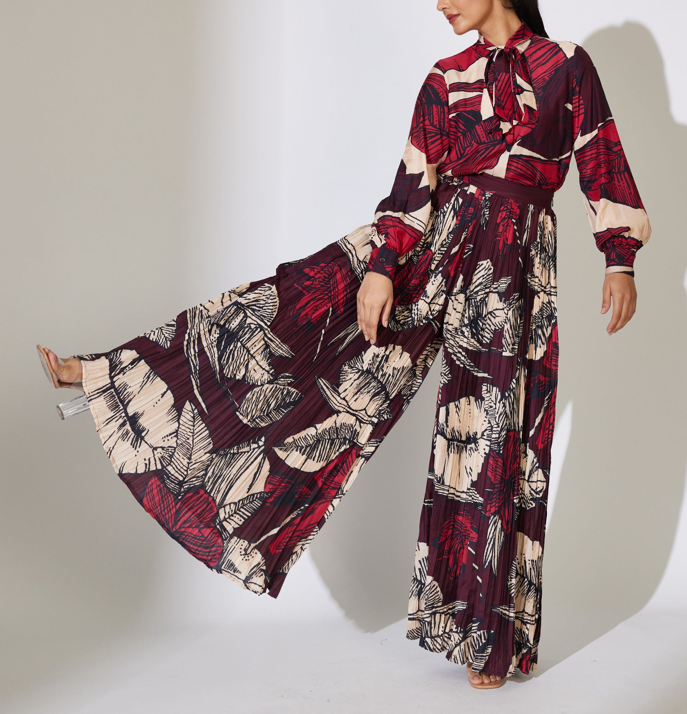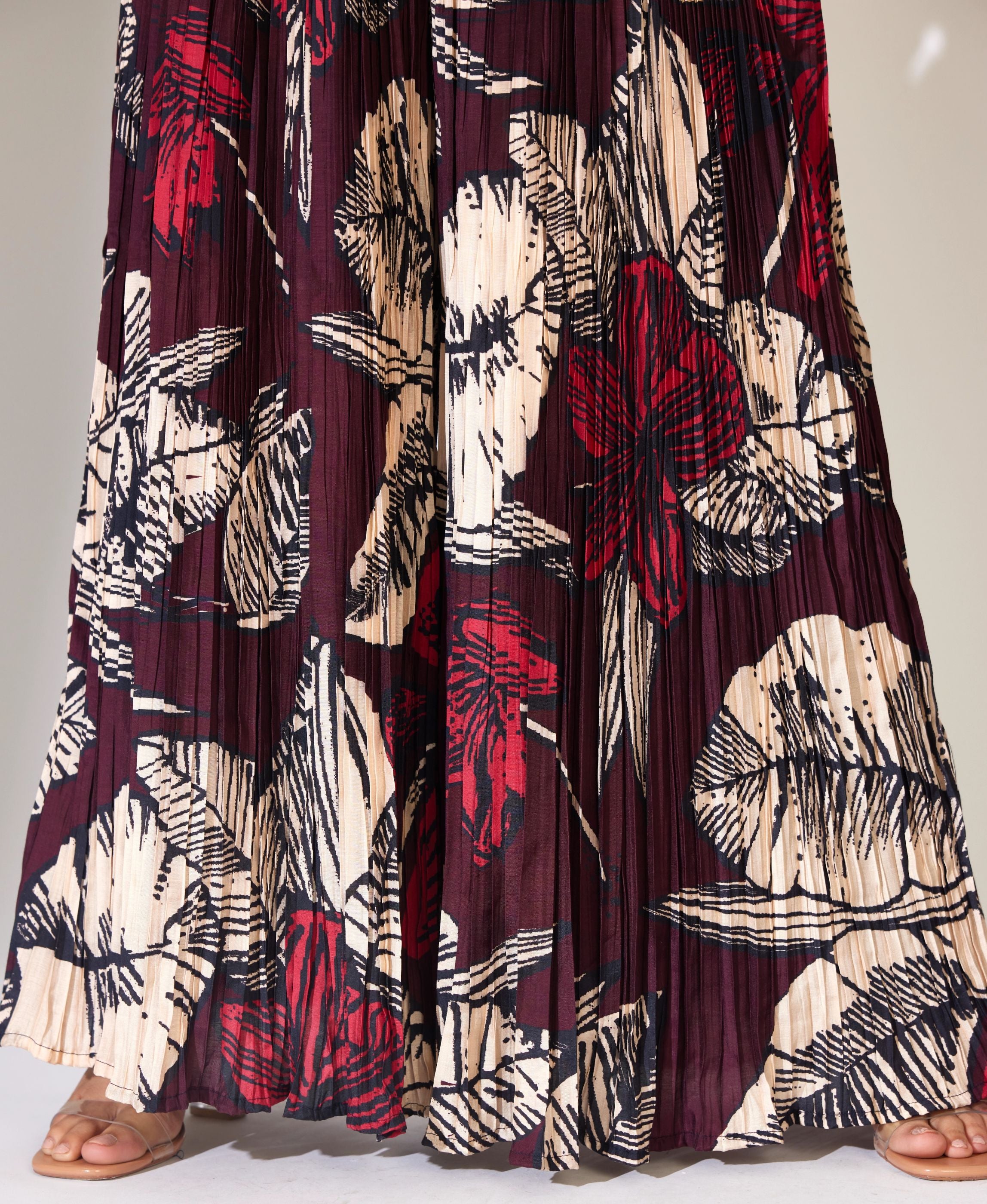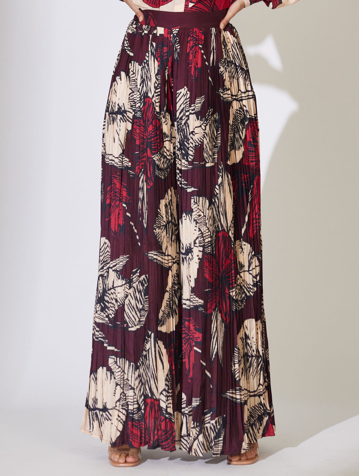 BROWN, RED AND OFFWHITE CRINKLED PANTS