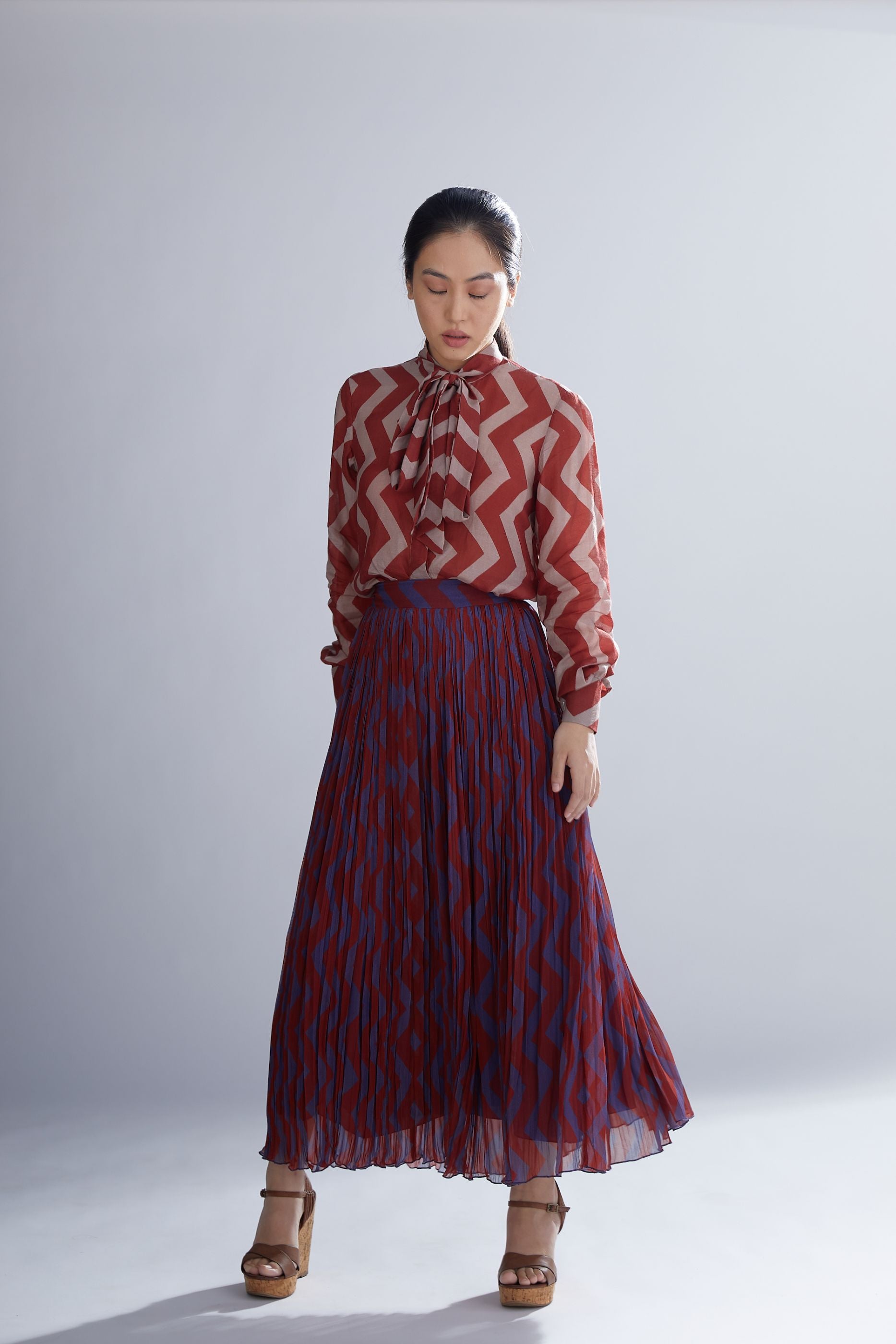DABU ZIG ZAG BLUE AND RED PLEATED SKIRT
