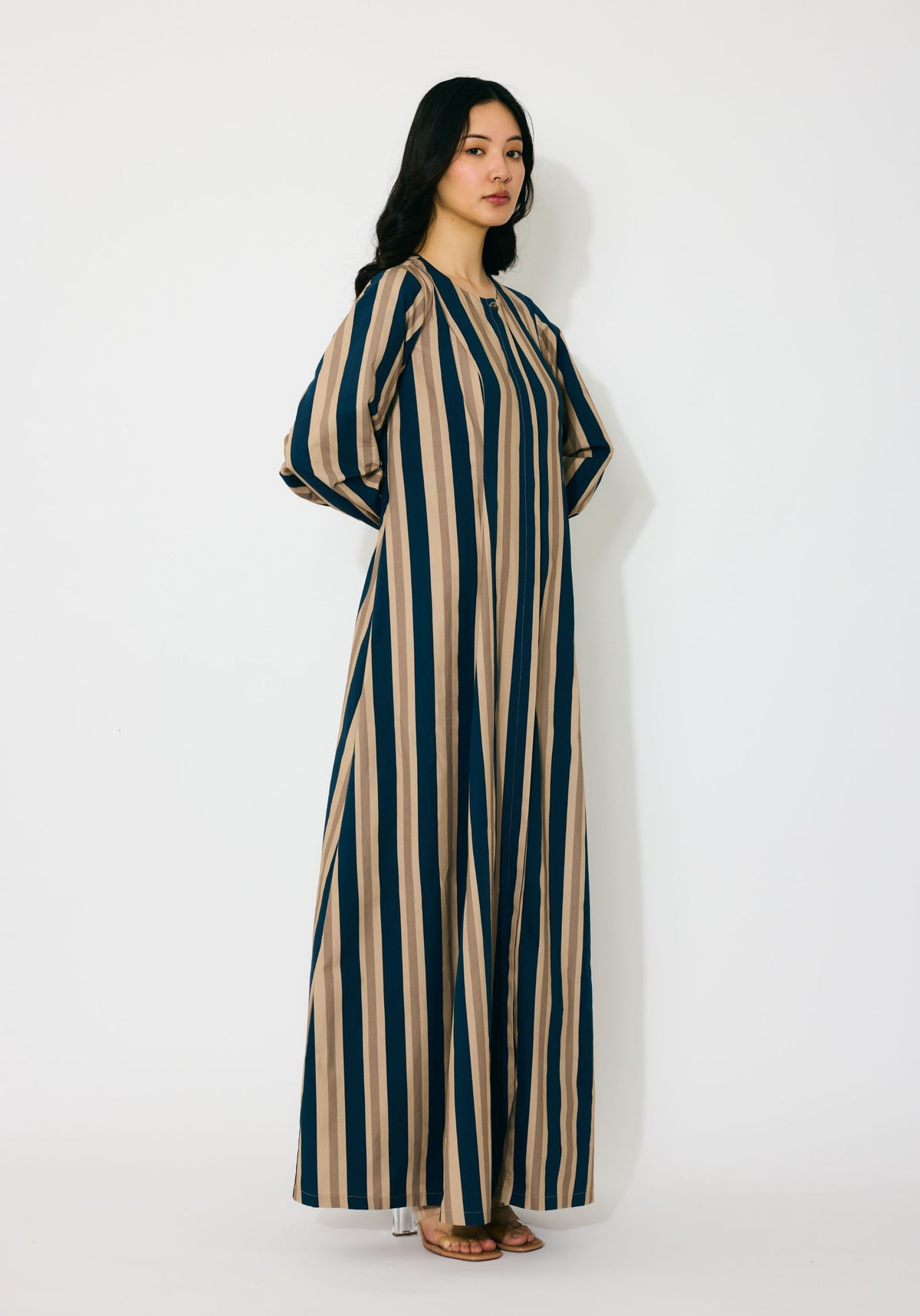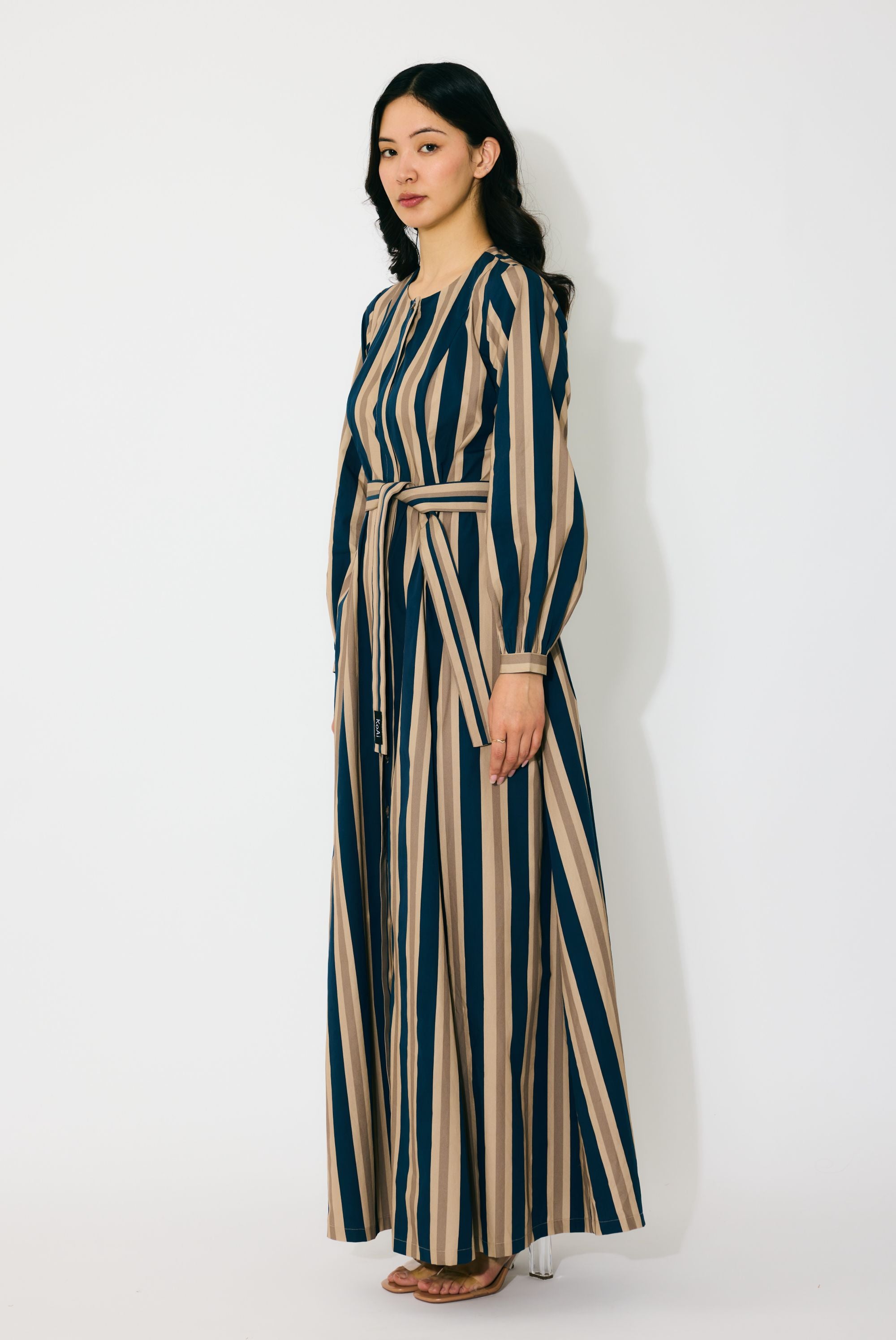 DARK BLUE, BEIGE AND CREAM STRIPE SHIRT DRESS