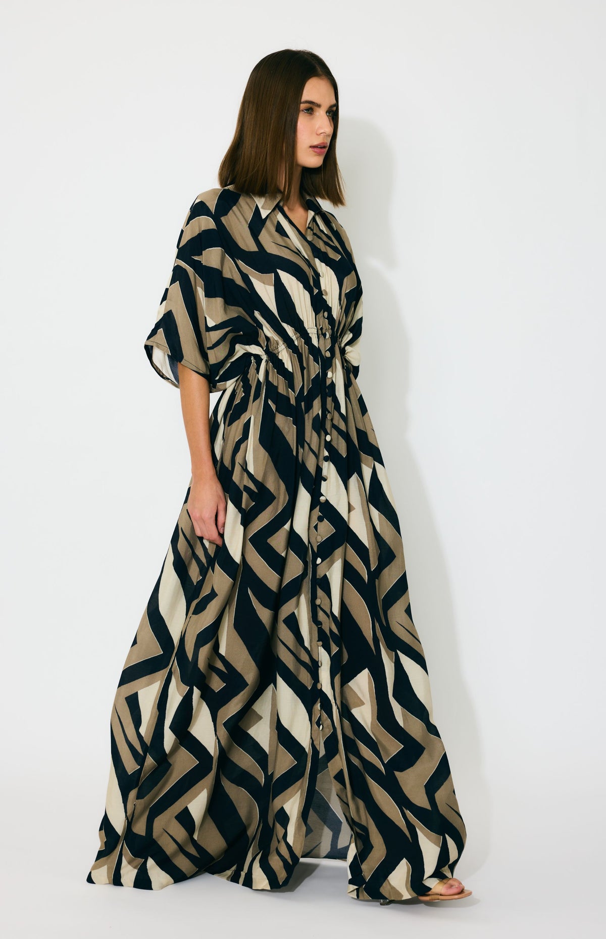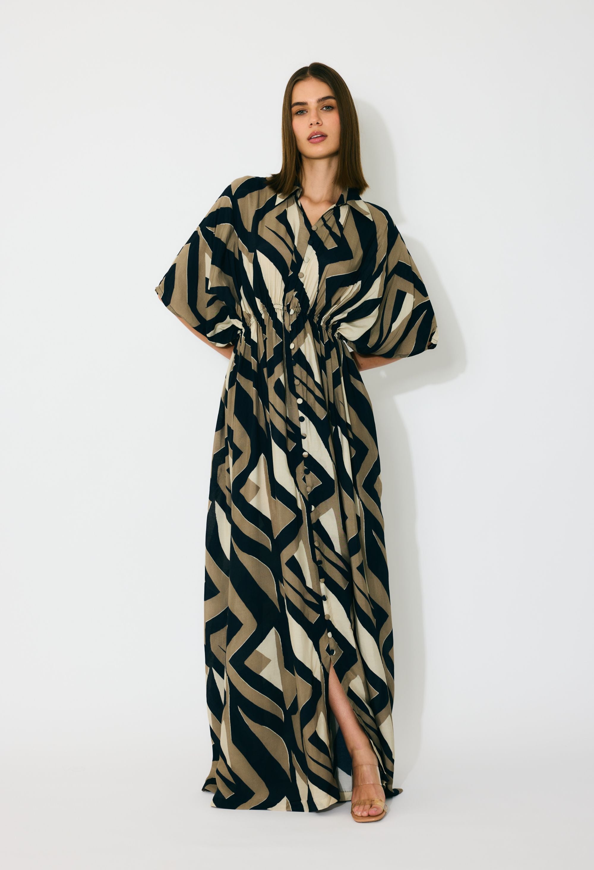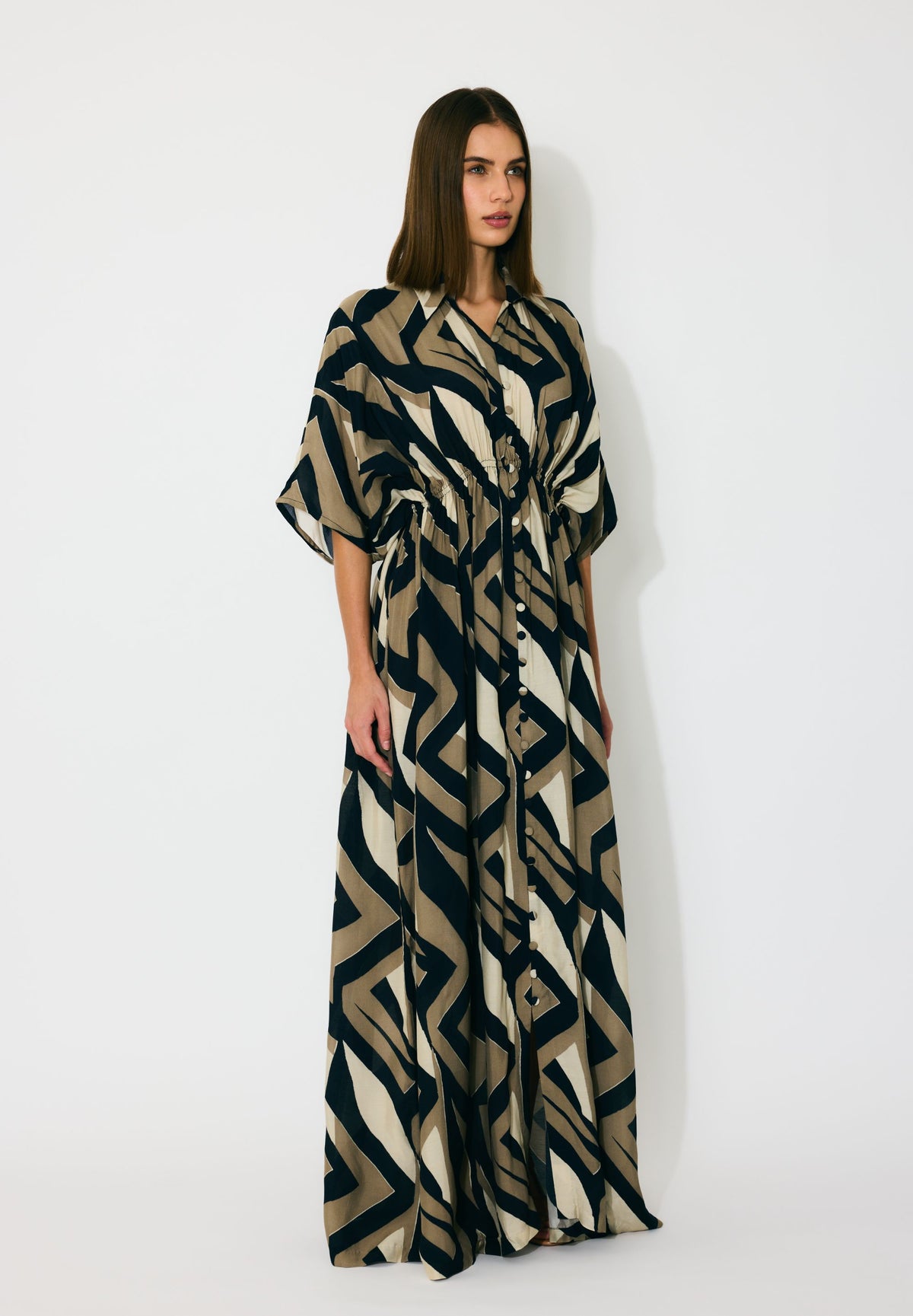 GOLD, BLACK AND WHITE PATTERN KAFTAN DRESS