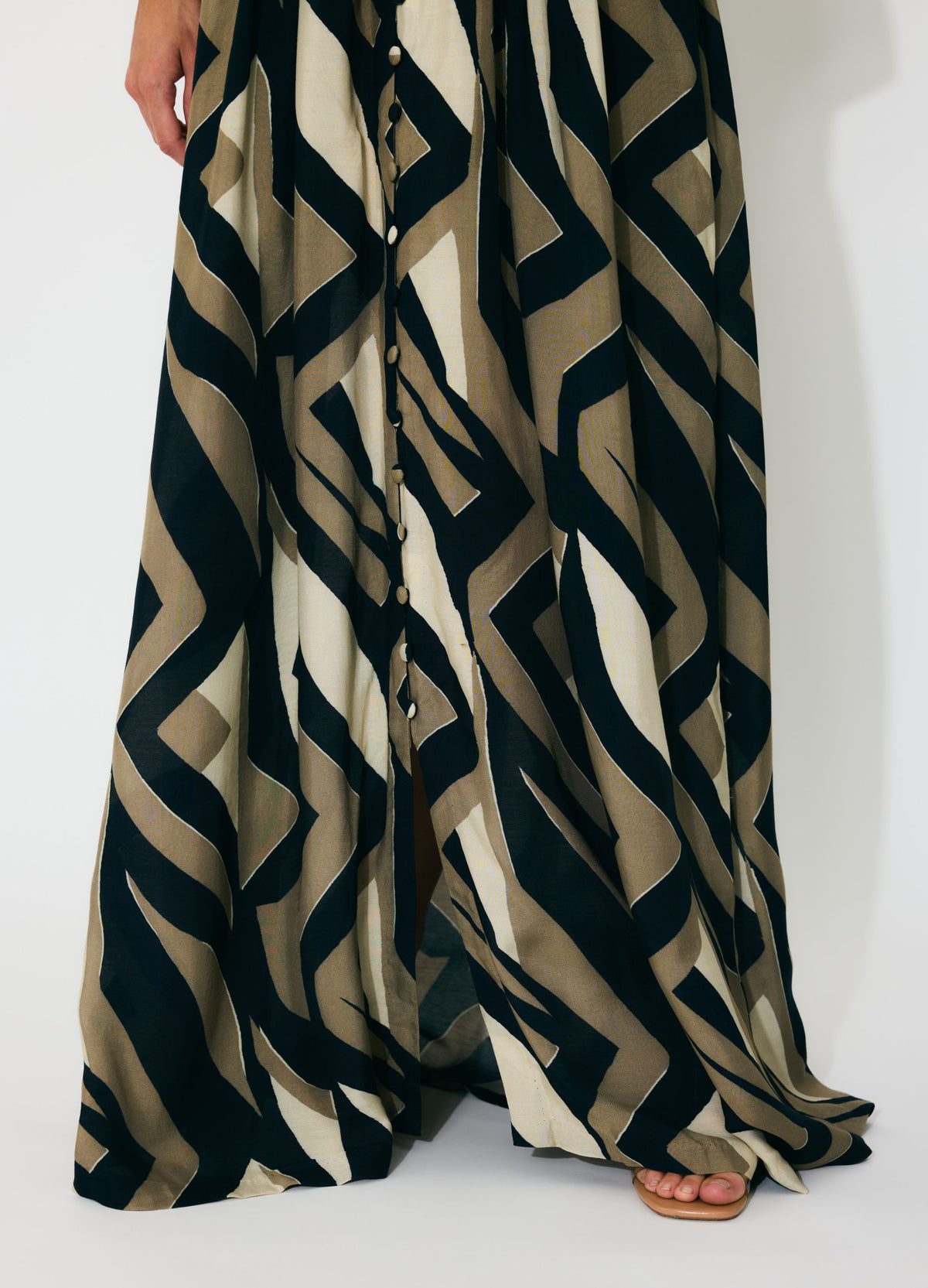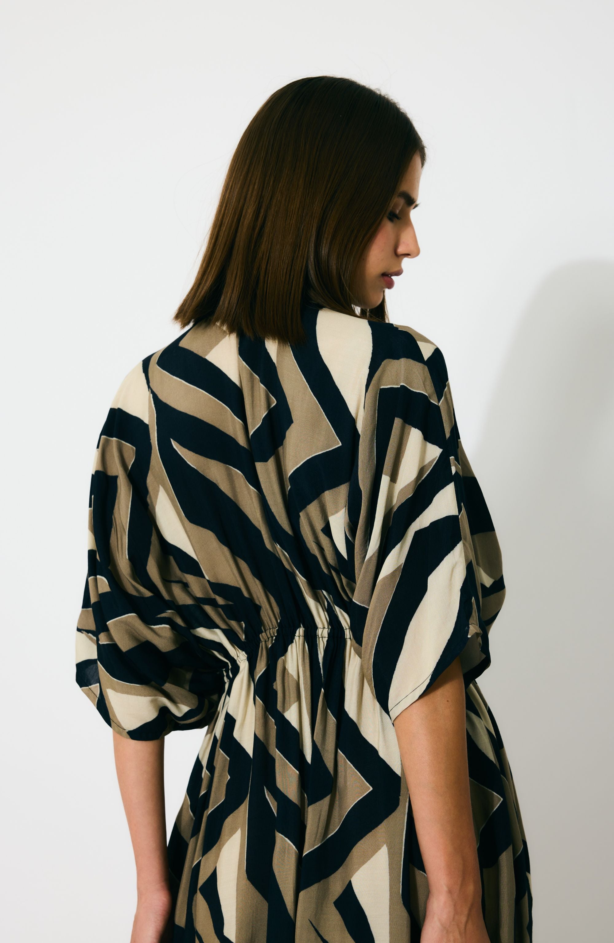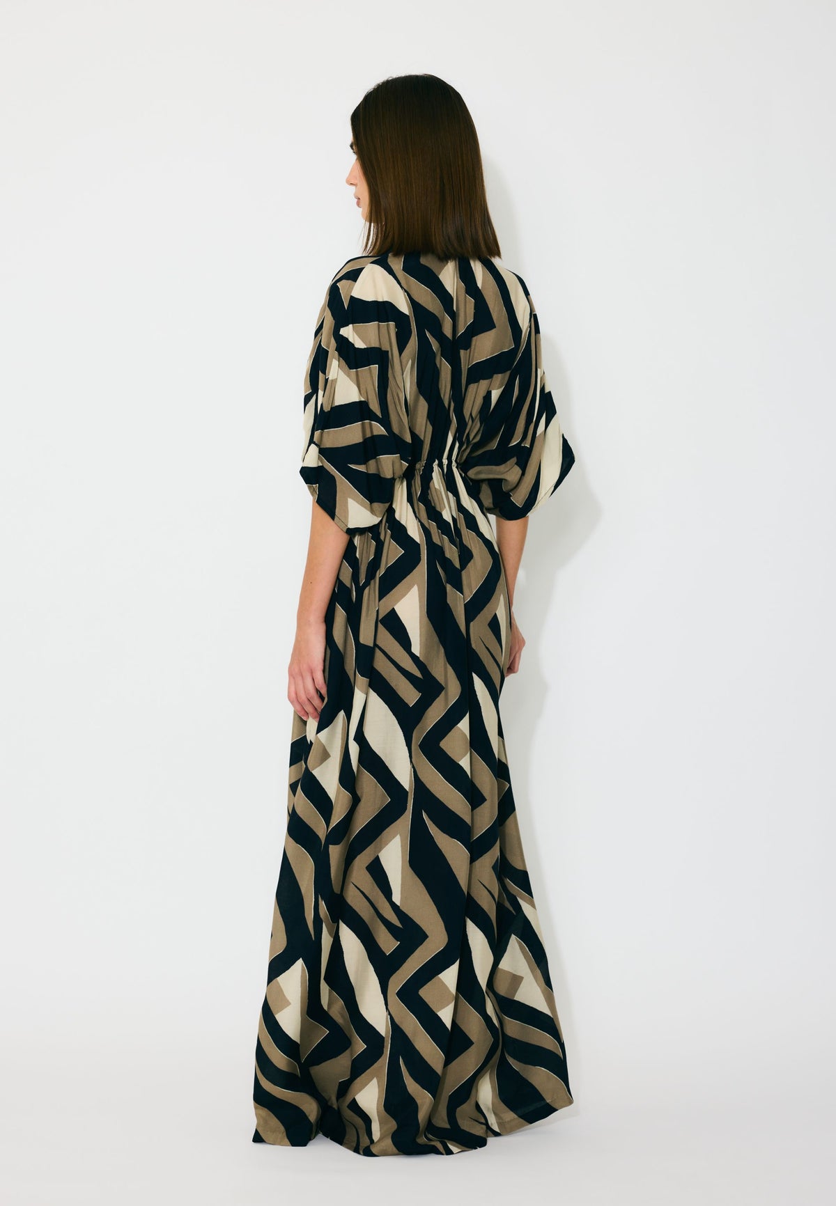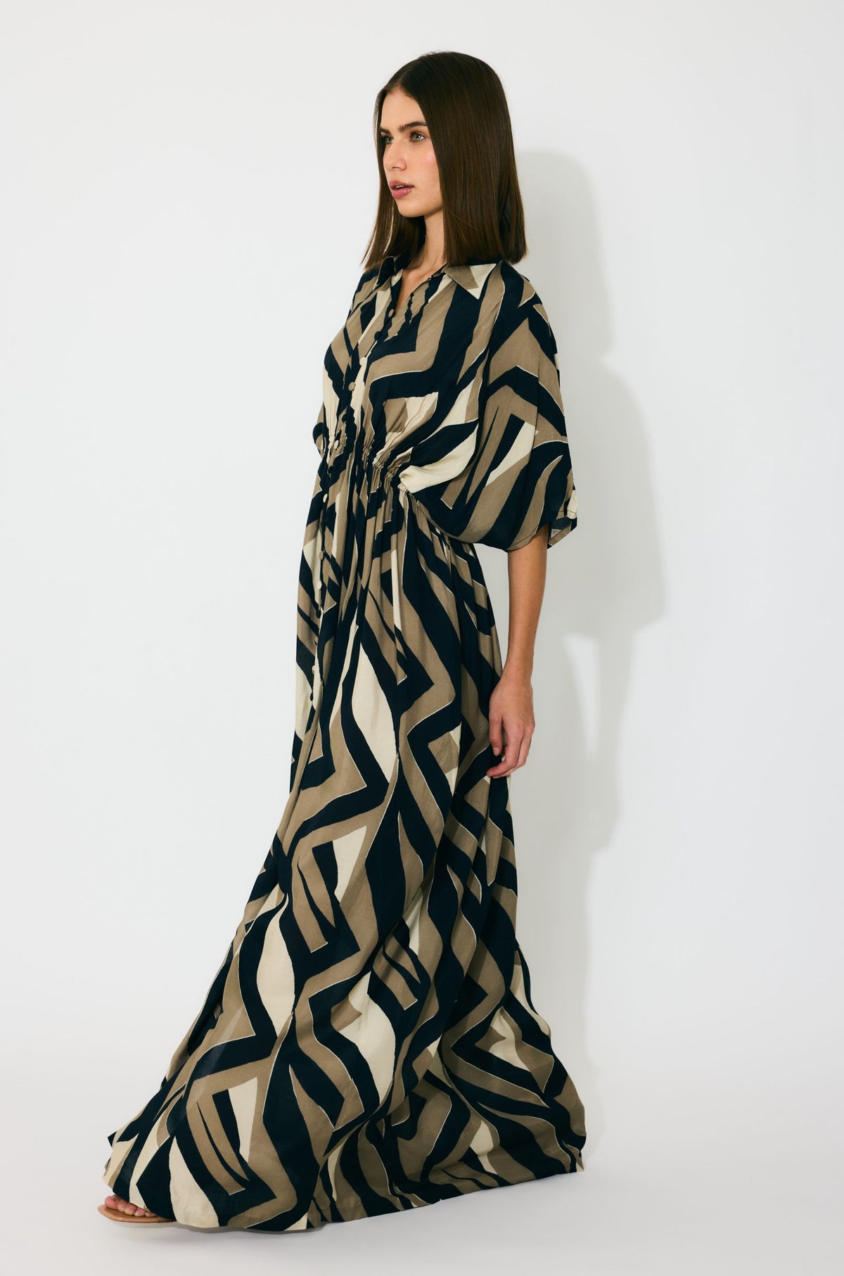 GOLD, BLACK AND WHITE PATTERN KAFTAN DRESS