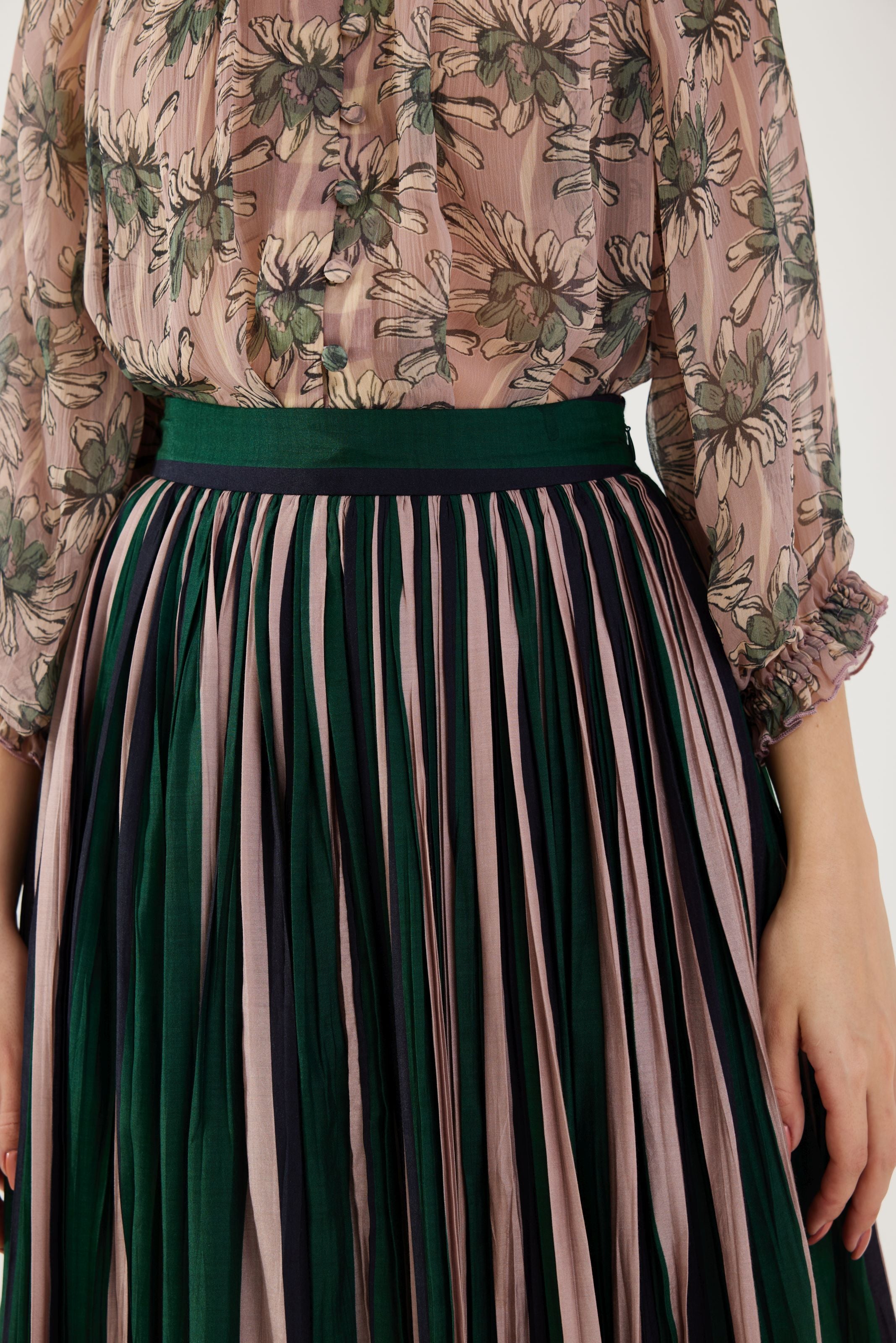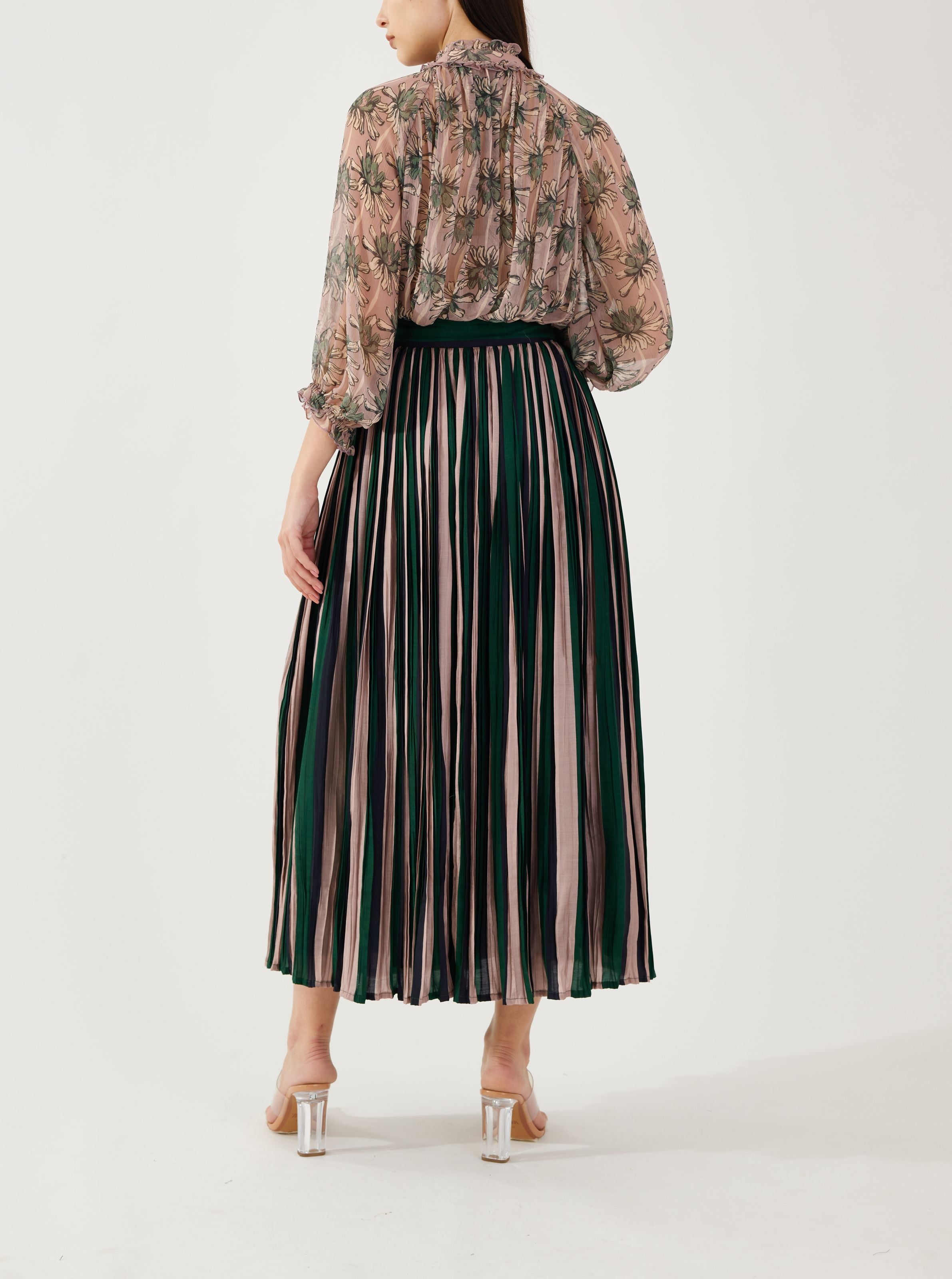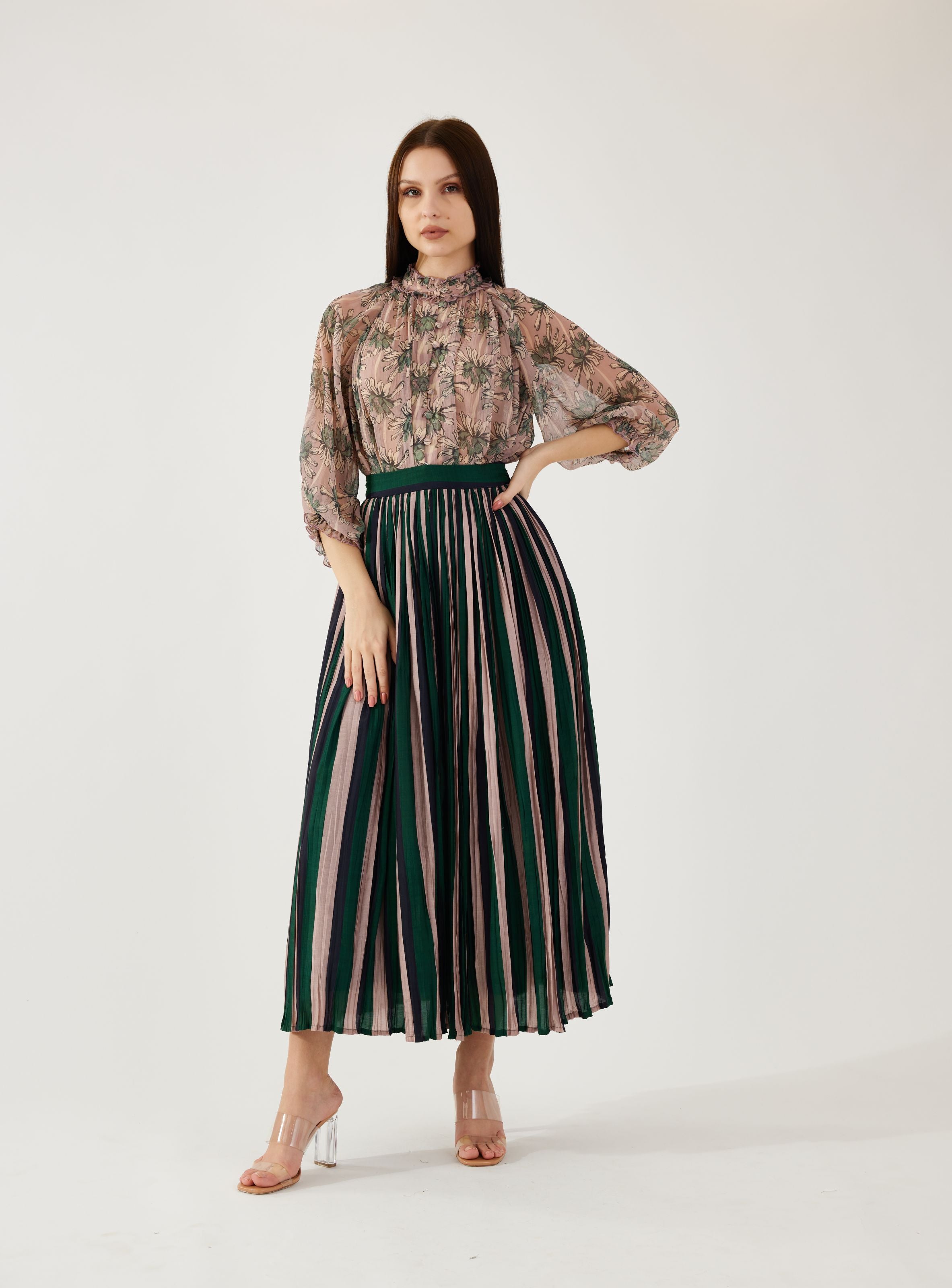 GREEN, PEACH AND BLACK STRIPE CRINKLED SKIRT