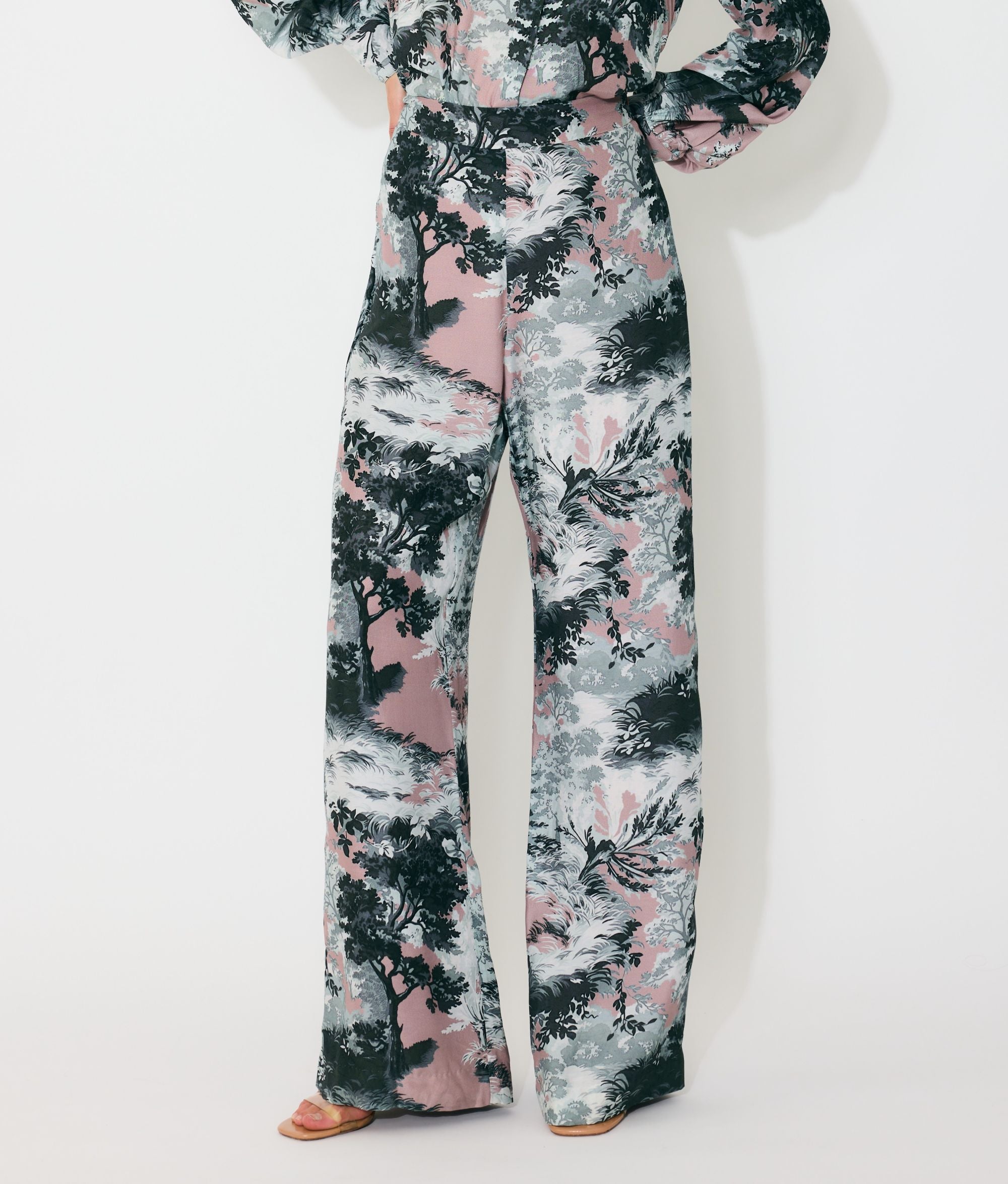 PINK, GREY AND WHITE TOILE PRINT PANTS